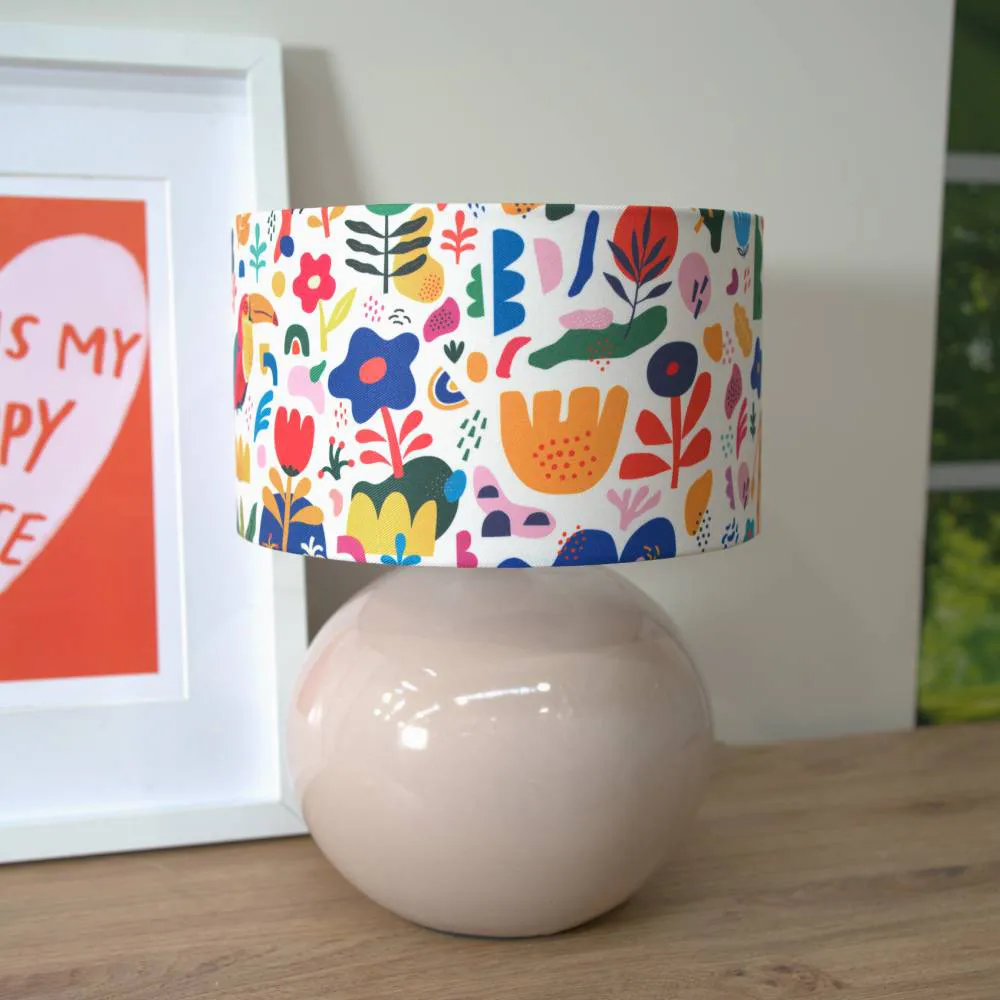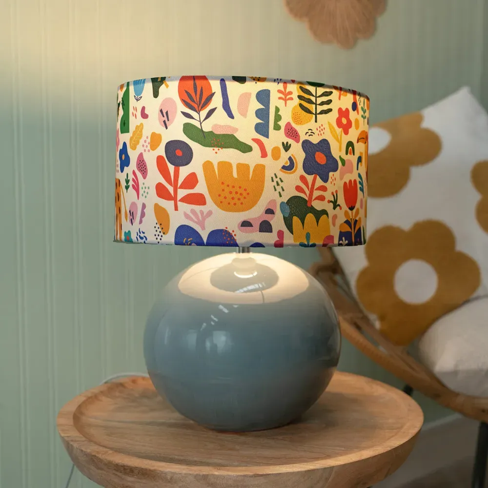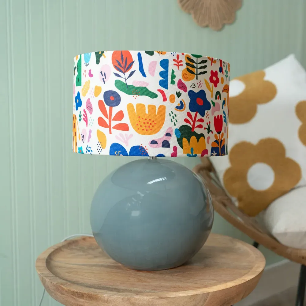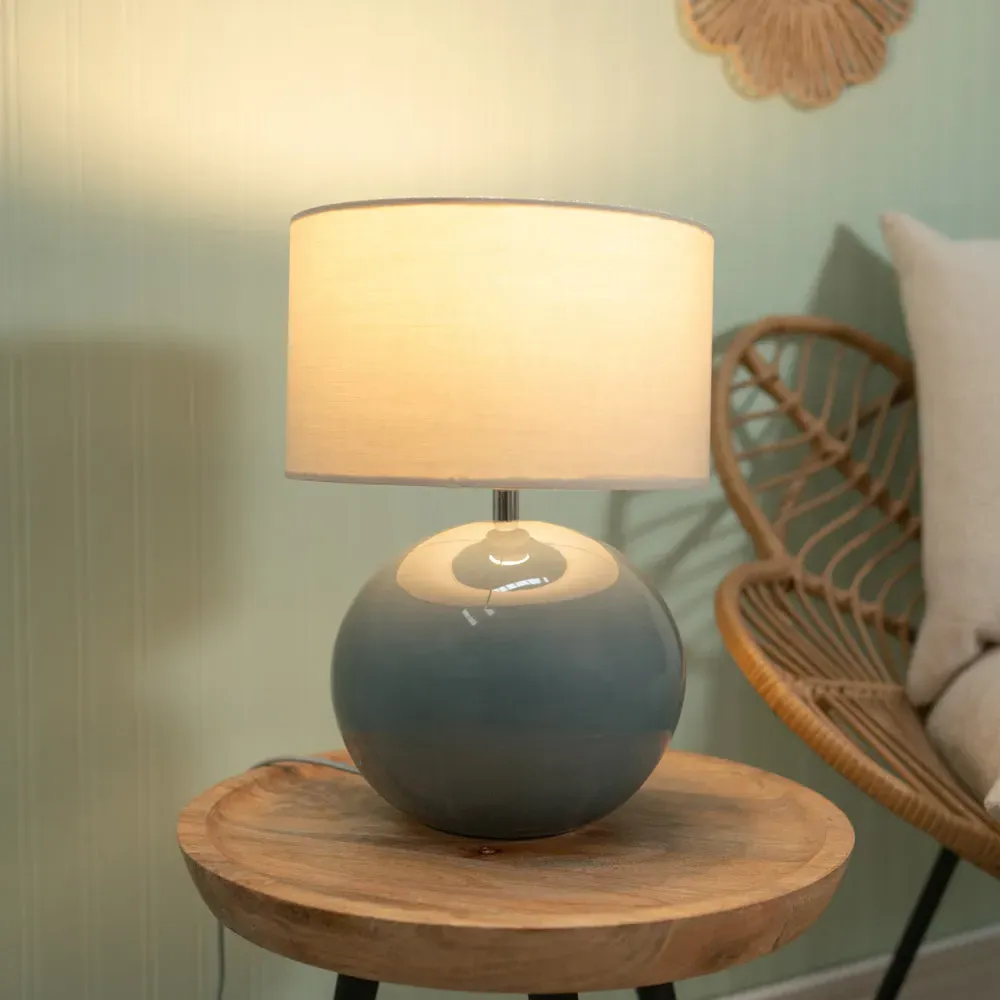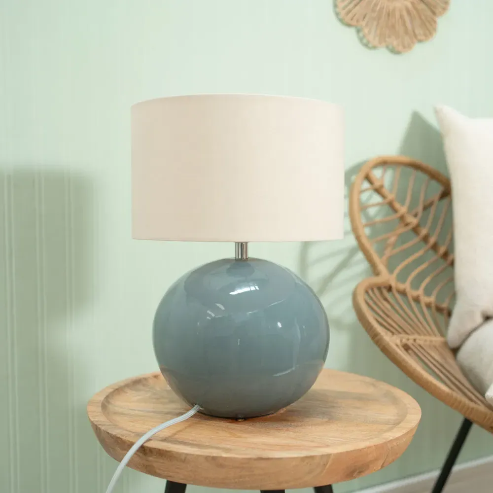 The Bosco ceramic table lamp in stone is an elegant and understated ceramic globe base. Perfectly matched with the abstract shapes shade.