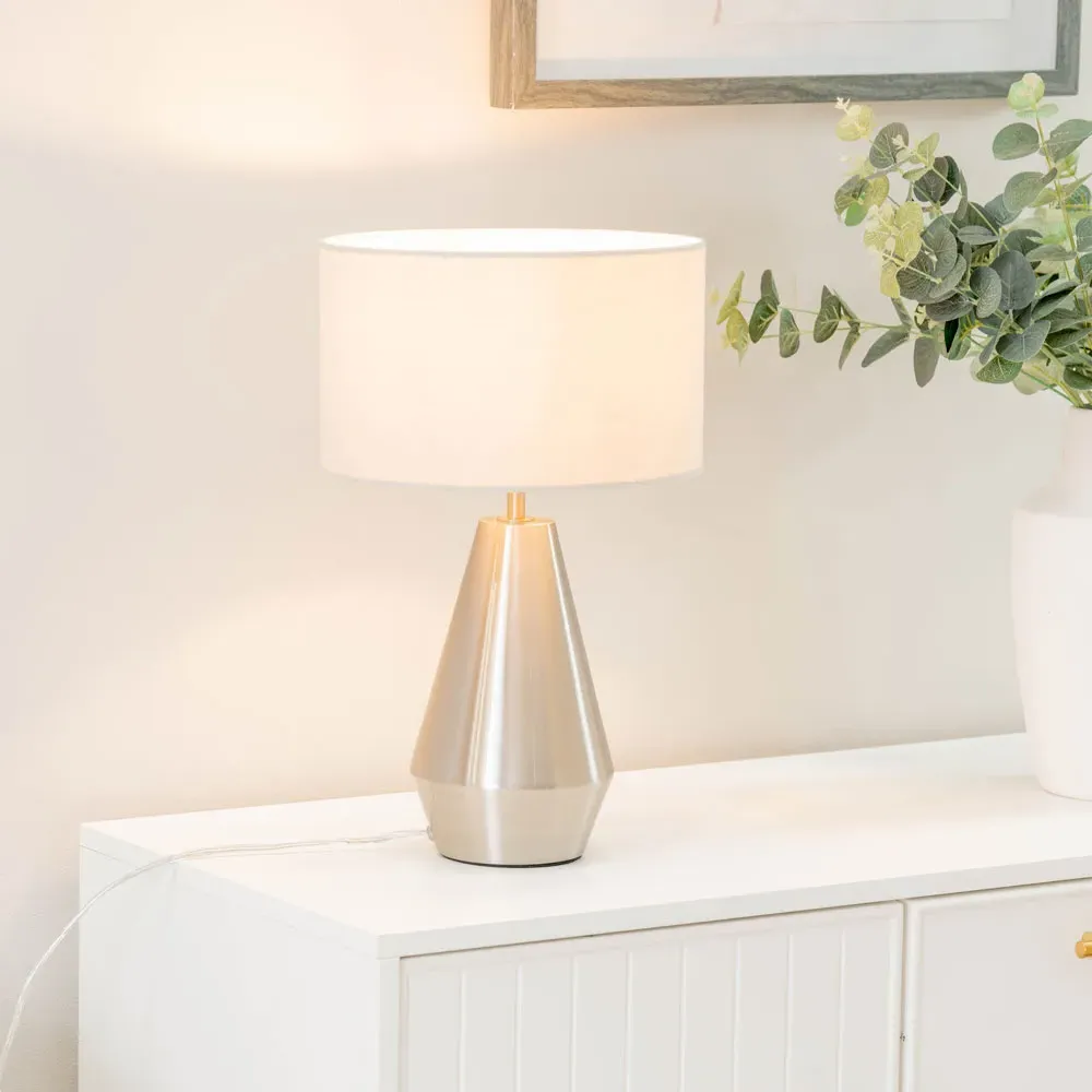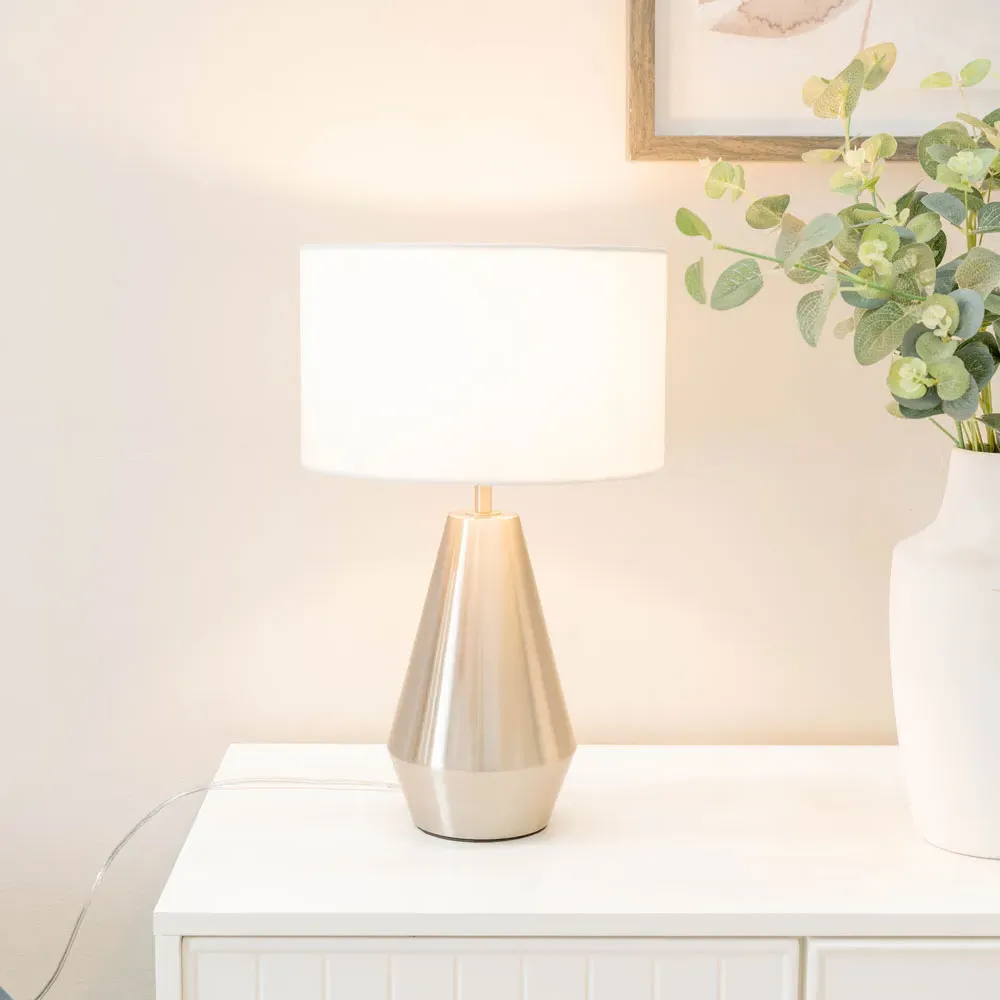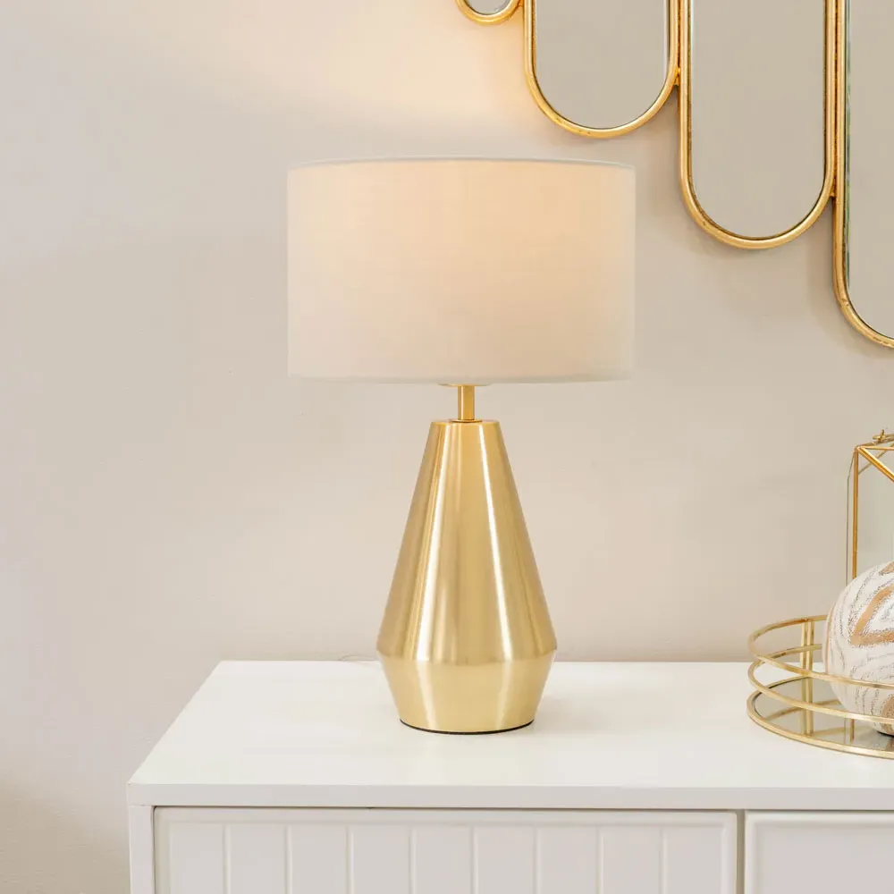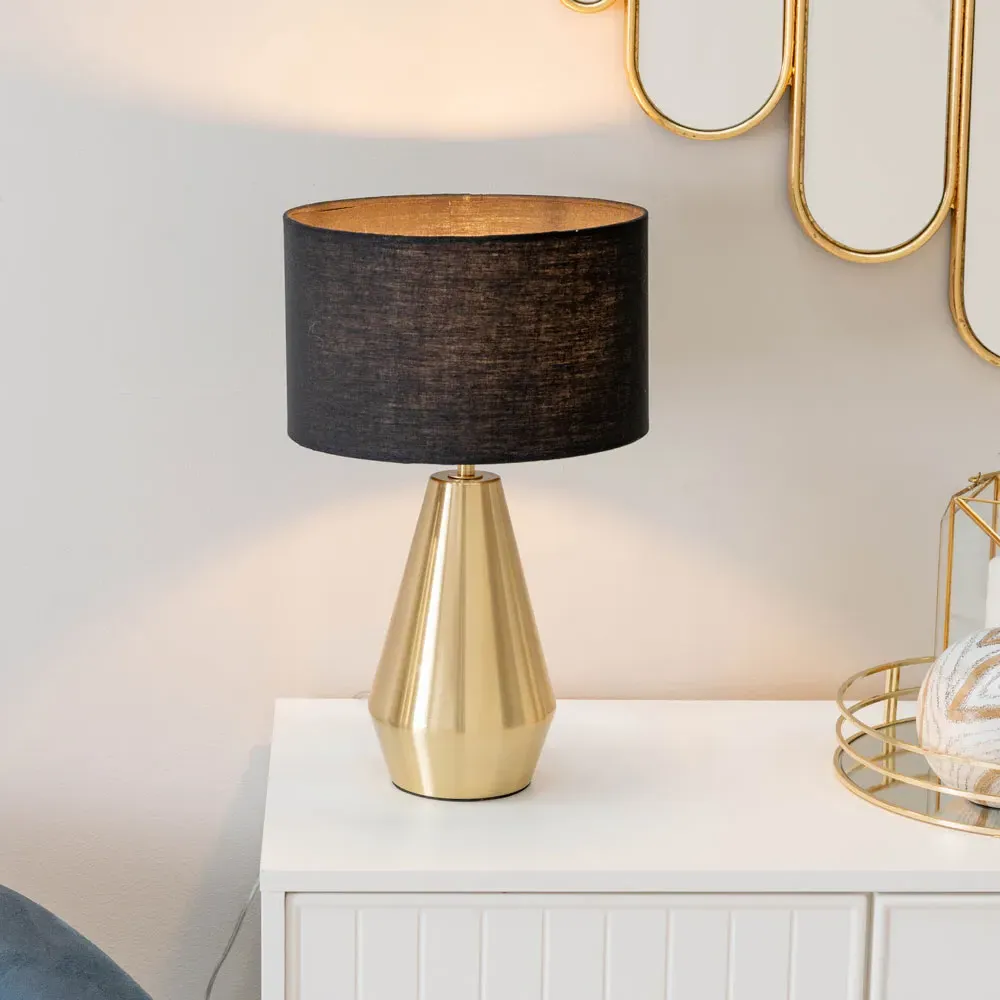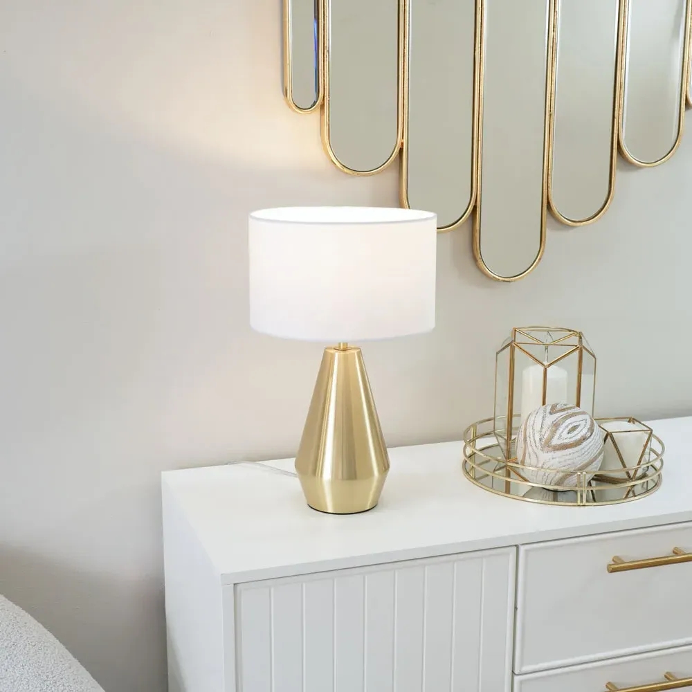 Update your decor with the ValueLights Jax Antique Brass Touch LED Table Lamp with Green Shade. Its elegant tapered base and touch on/off technology make it a practical choice for side tables or bedsides, complemented by a green shade. Wipe with a clean dry cloth. Includes a 12-month warranty.