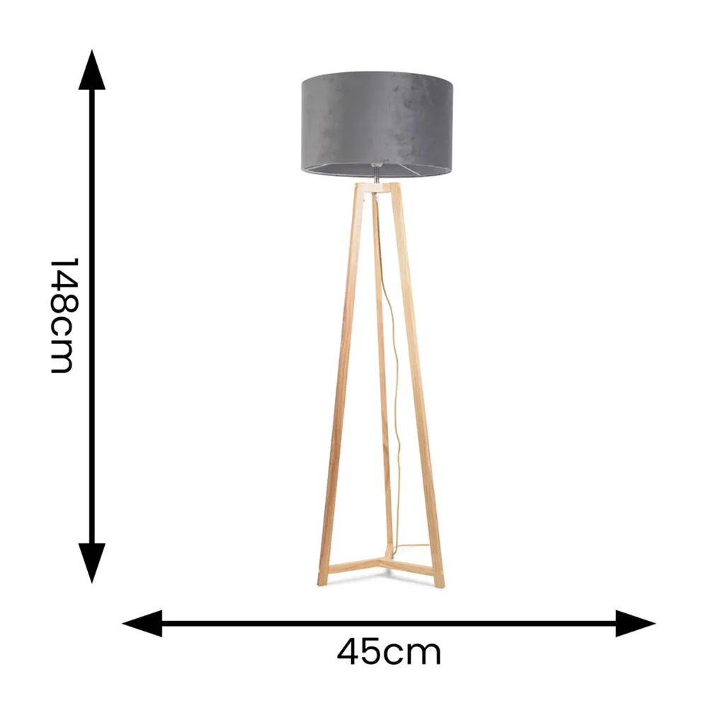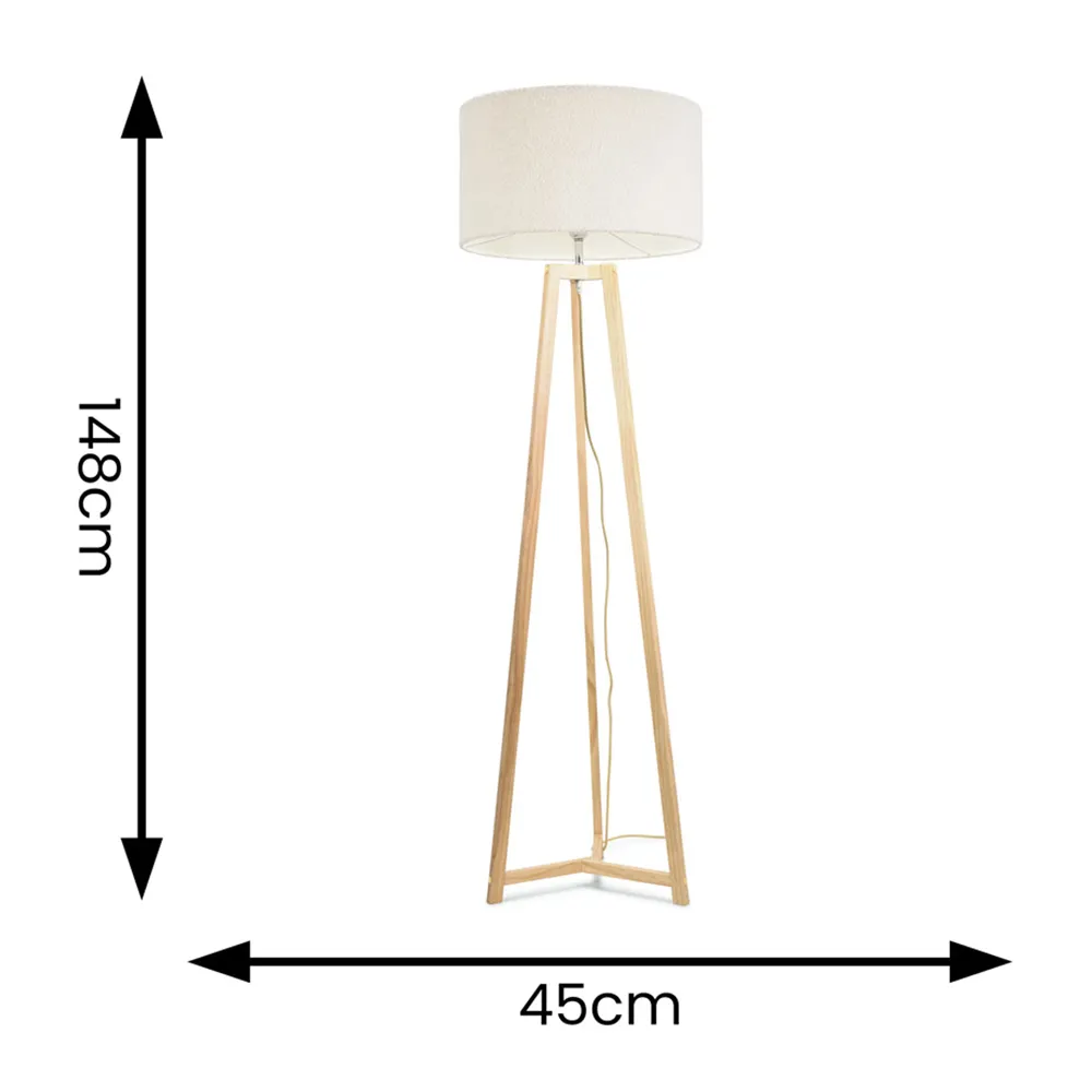 The Lottie tripod floor lamp in natural wood is the perfect neutral base for this beige fabric tapered shade. The natural wood base adds a chic and modern feel to any home.