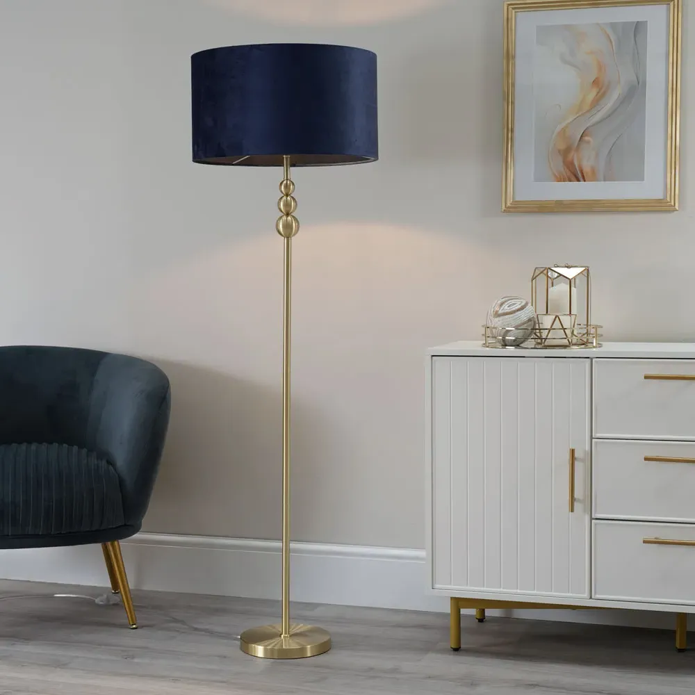 Get ready to add a modern touch to your living space with this stunning ValueLights Marissa Reni Navy Blue Shade and Chrome Ball LED Floor Lamp. Its slim stem effortlessly fits into any corner, providing a warm and stylish glow. The stacked ball design in chrome adds a subtle yet captivating twist, while the stylish shade perfectly complements the lamp's simple and elegant design. Ideal for your living room, bedroom, or home office, this freestanding floor lamp is easy to clean with just a wipe of a dry cloth and comes with a 12-month warranty. Equipped with an LED bulb.