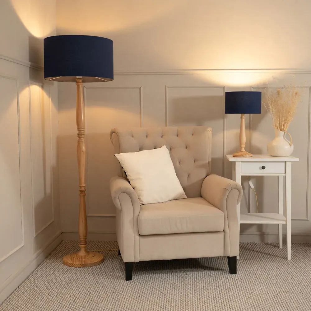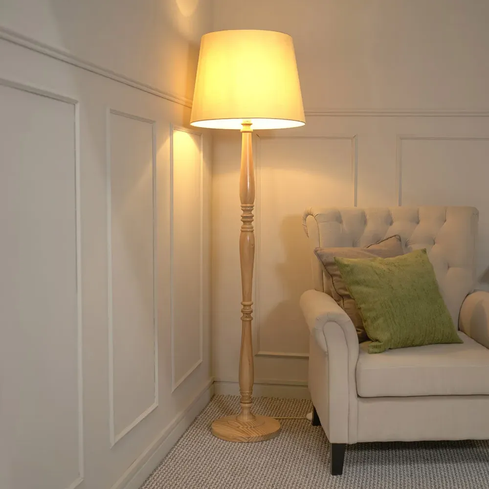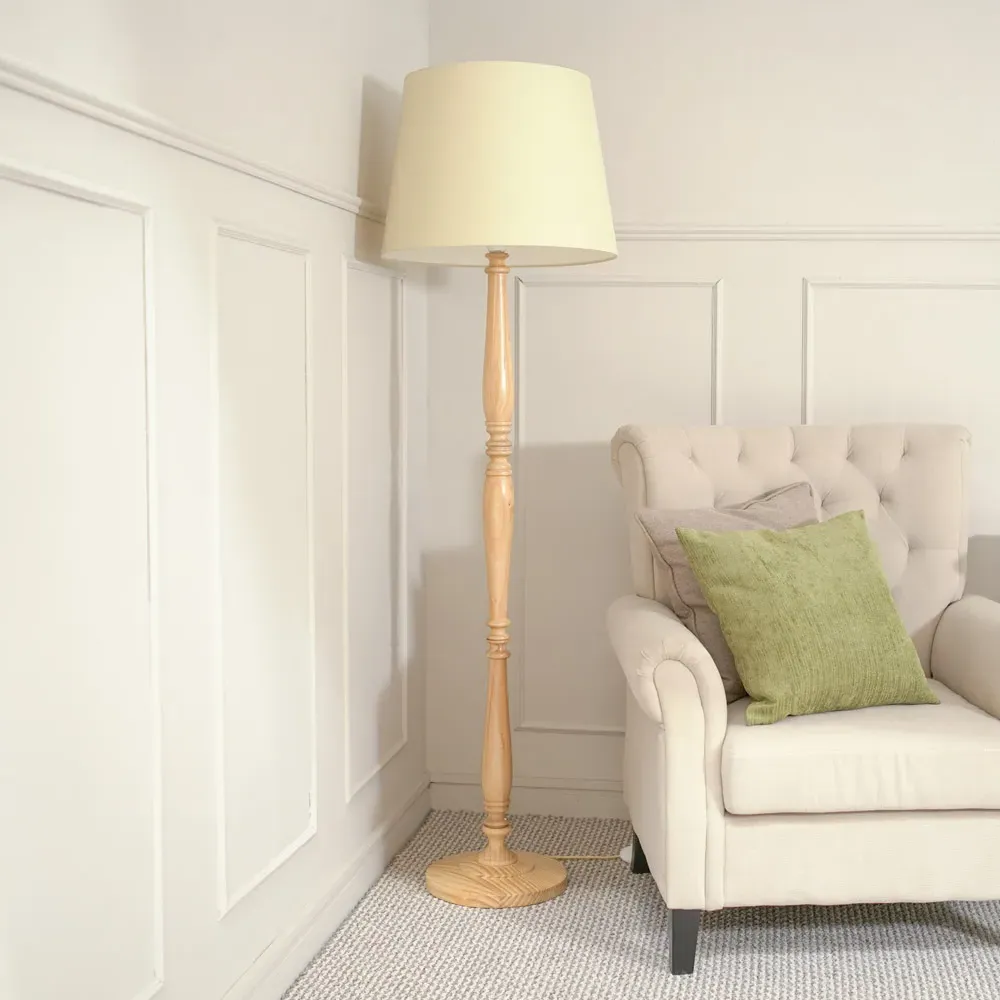 The Victoria candle stick table lamp in light wood is the perfect choice for any home with a traditional interior. Perfect to pair with a beige tapered shade for your perfect piece.