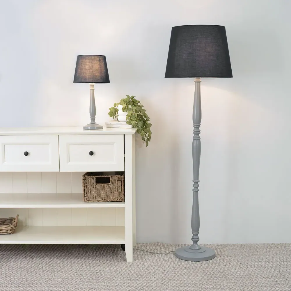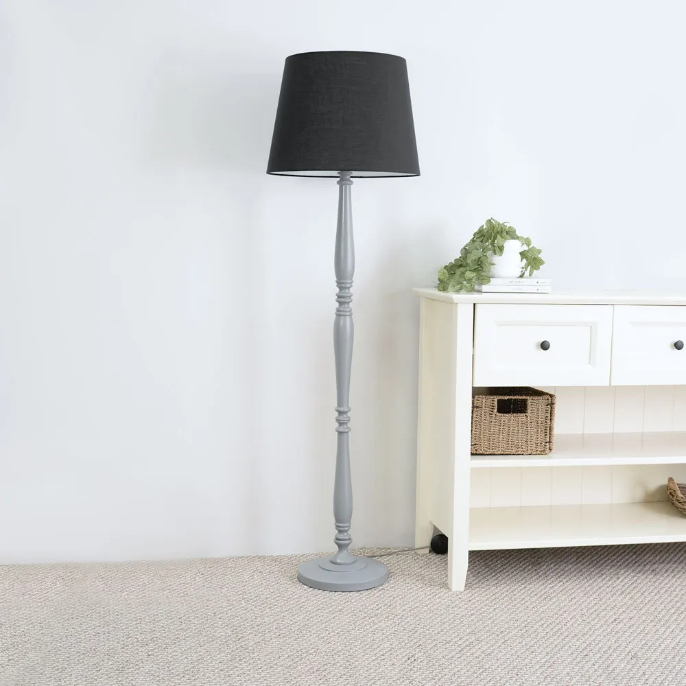 The Victoria candle stick table lamp in grey wood is the perfect choice for any home with a traditional interior. Perfect to pair with a black drum shade for your perfect piece.