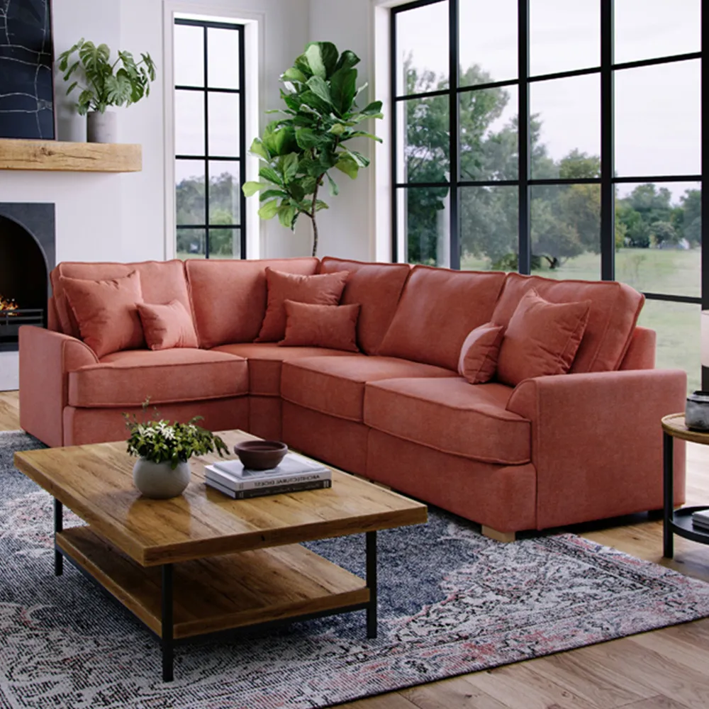 The City Corner Sofa offers inviting comfort with its soft touch chenille fabric and deep seat cushions. Its smooth lines provide a timeless appeal, while the sturdy wooden feet ensure lasting stability. The removable covers allow for easy maintenance, and the compact design suits smaller living spaces without compromising on seating capacity.