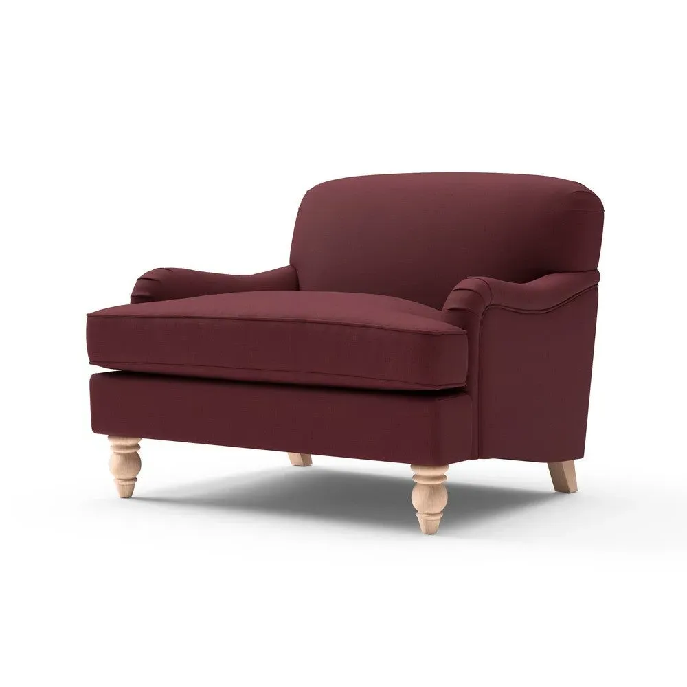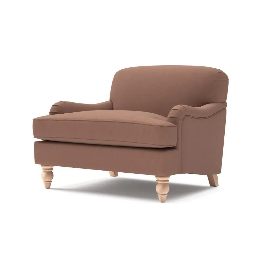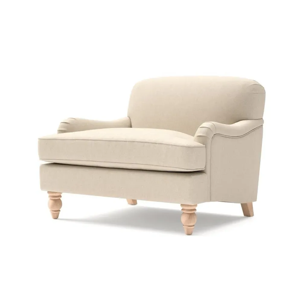 The Love Seat offers comfort with its neatly tailored sprung back, featuring gentle curves from the arm detail to hand-turned feet. Its sophisticated shape provides excellent support, while the house linen mix fabric adds durability and style. The sprung back construction ensures lasting comfort, and the hand-turned feet deliver stability with character.
