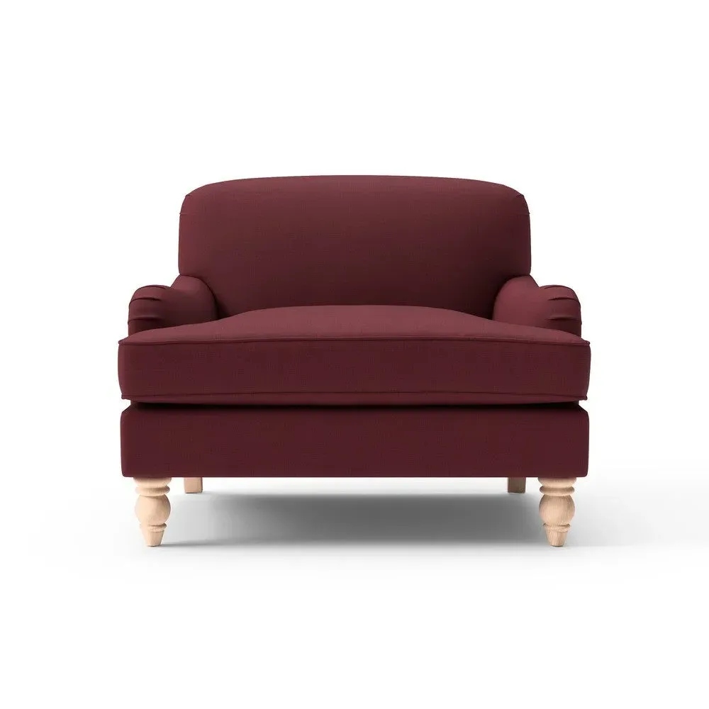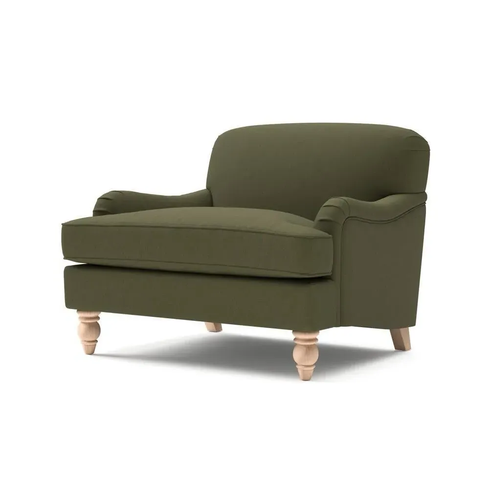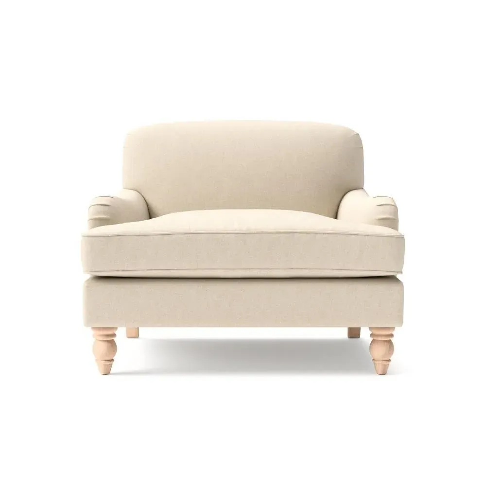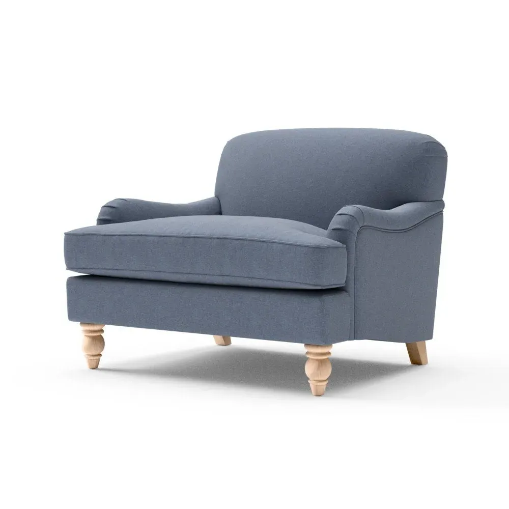 The Love Seat offers comfort with its neatly tailored sprung back, featuring gentle curves from the arm detail to hand-turned feet. Its sophisticated shape provides excellent support, while the house linen mix fabric adds durability and style. The sprung back construction ensures lasting comfort, and the hand-turned feet deliver stability with character.