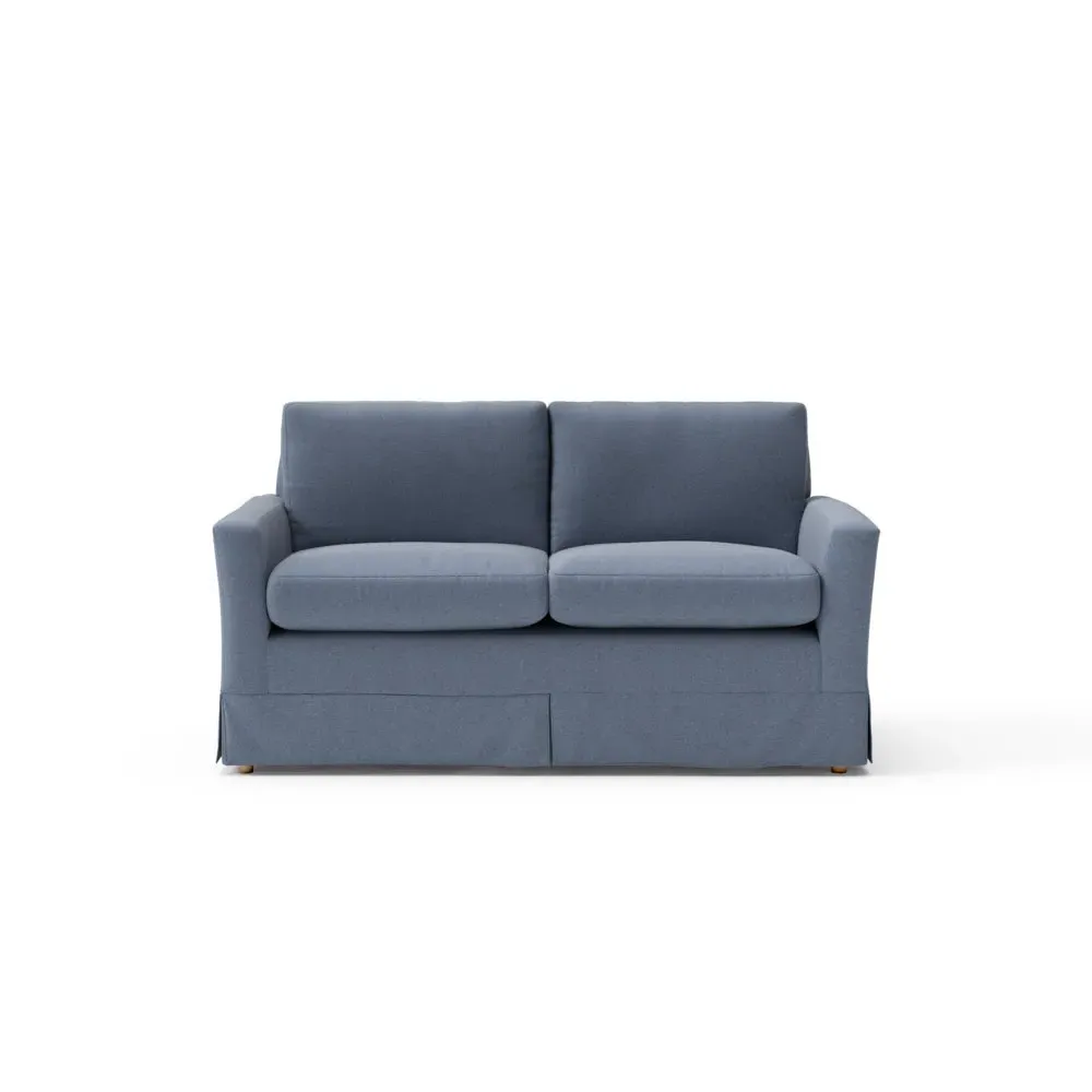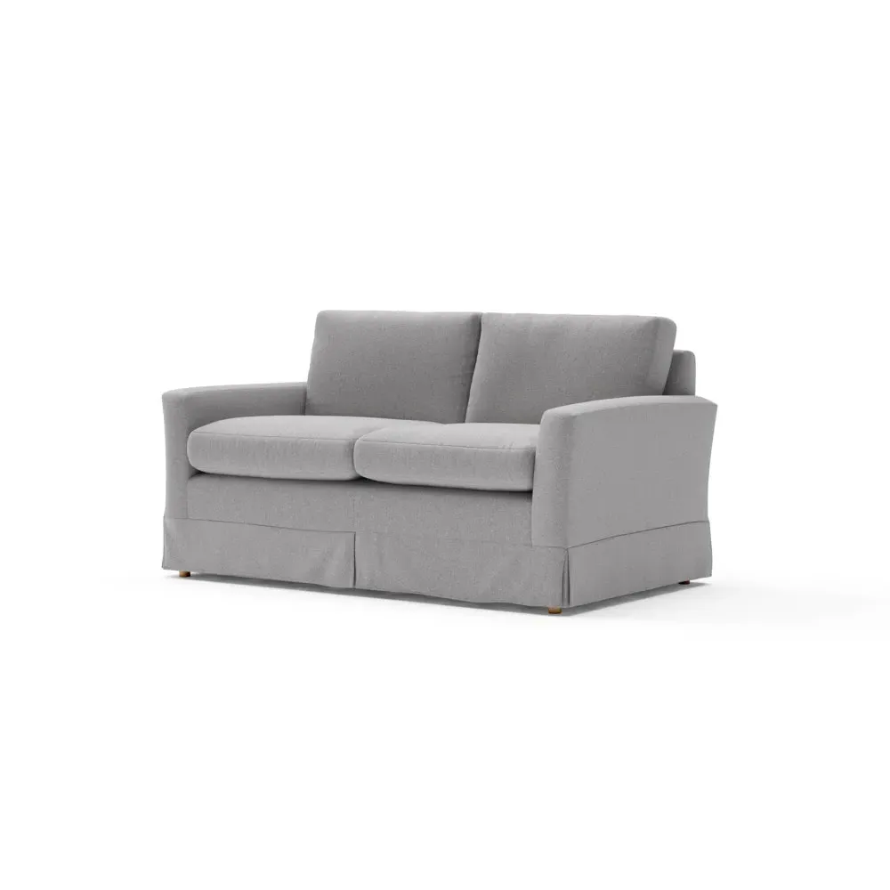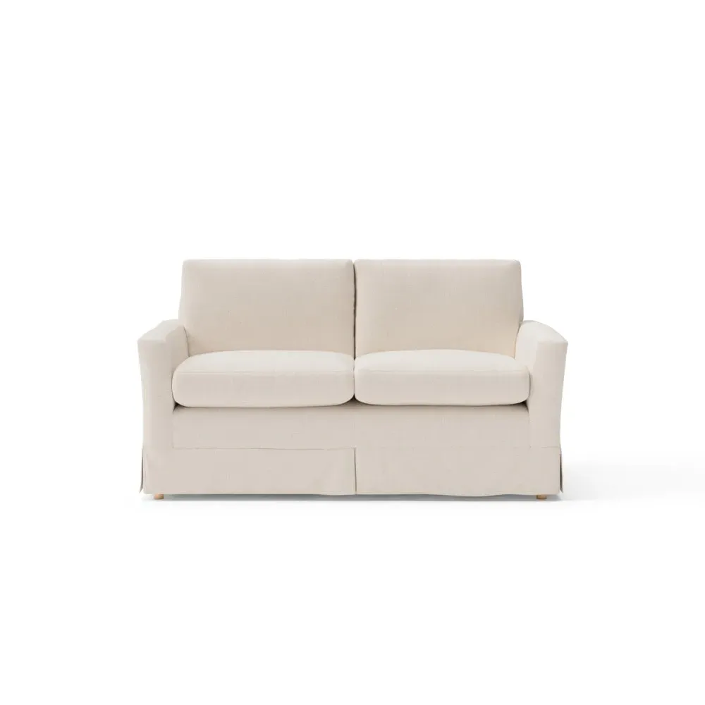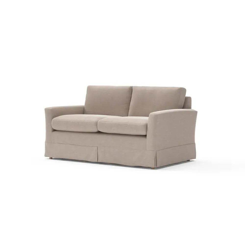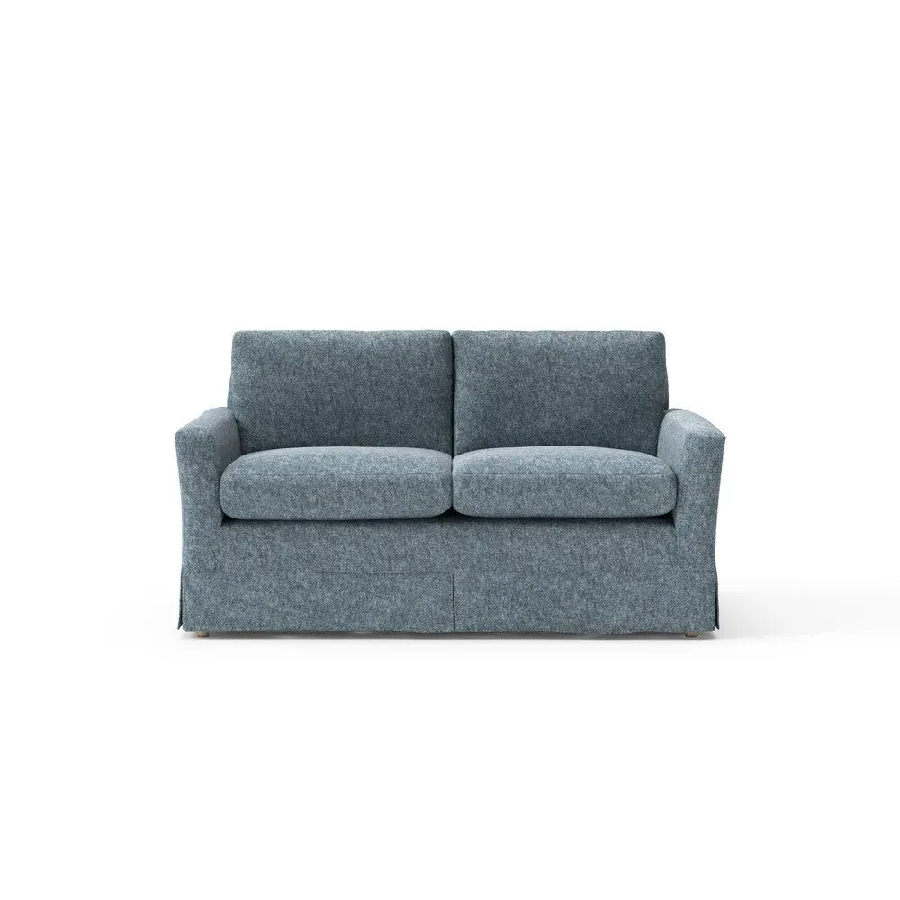 The sofa offers comfort with its slim arms and clean-lined silhouette. Its straight back provides support for additional cushions, while the House Weave fabric adds durability. The frame accommodates both feather and low maintenance interior options, and loose covers are available separately for easy maintenance.