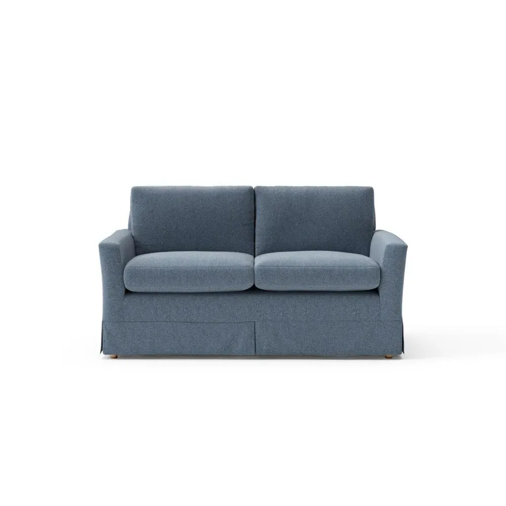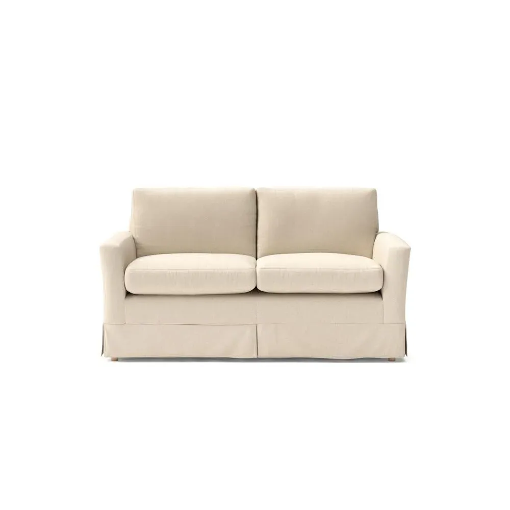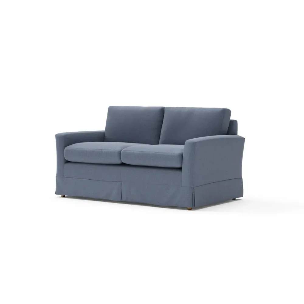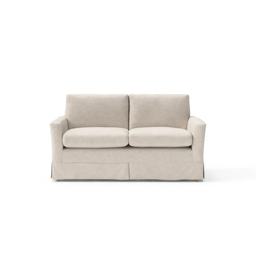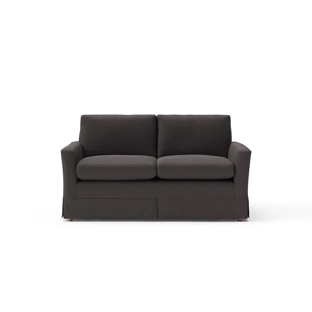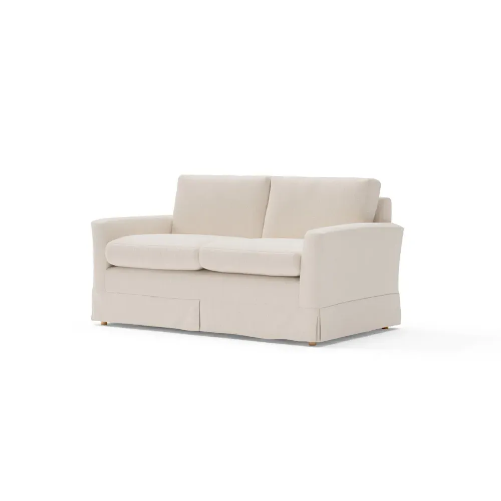 The sofa offers comfort with its slim arms and clean-lined silhouette. Its straight back provides support for additional cushions, while the House Weave fabric adds durability. The frame accommodates both feather and low maintenance interior options, and loose covers are available separately for easy maintenance.