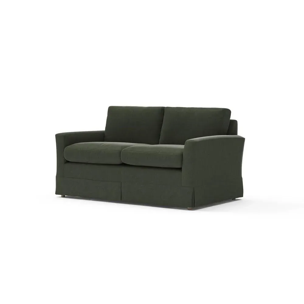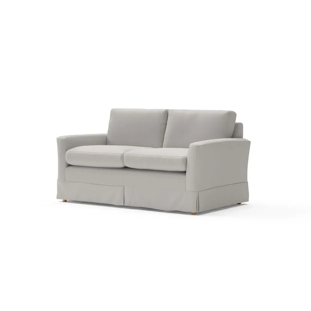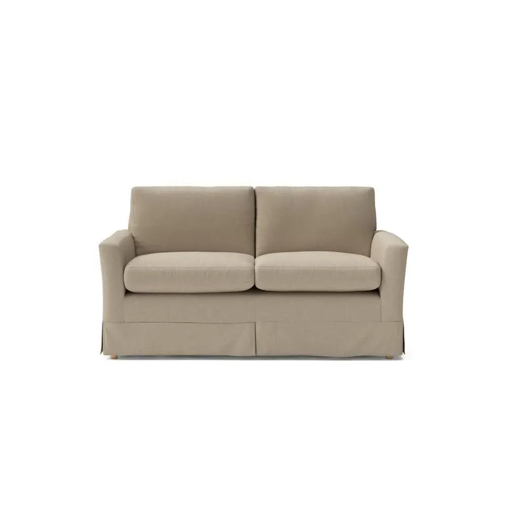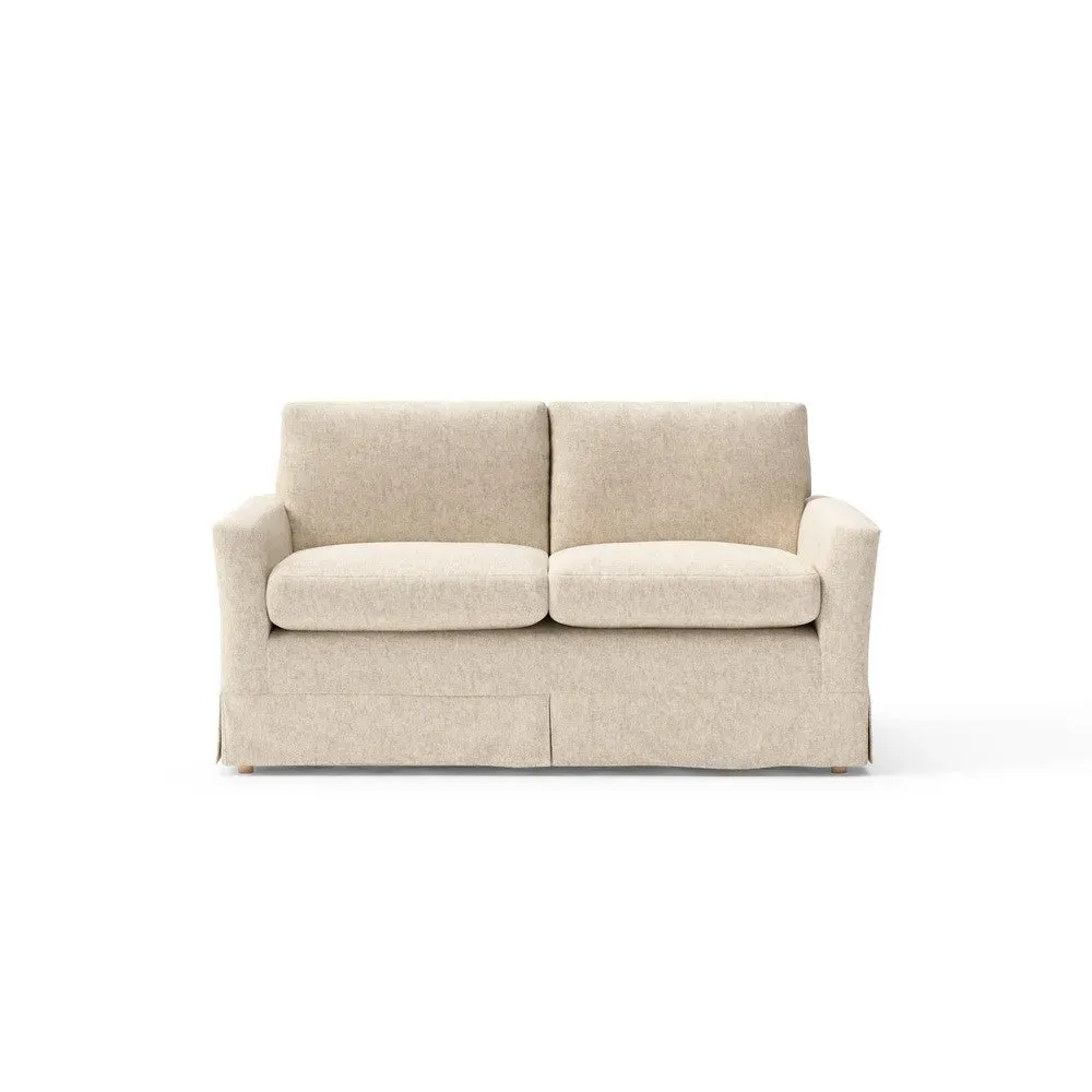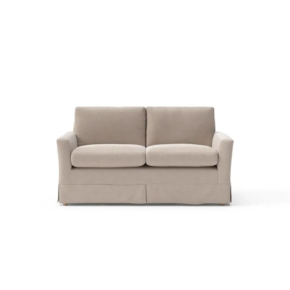 The sofa offers comfort with its slim arms and clean-lined silhouette. Its straight back provides support for additional cushions, while the House Weave fabric adds durability. The frame accommodates both feather and low maintenance interior options, and loose covers are available separately for easy maintenance.