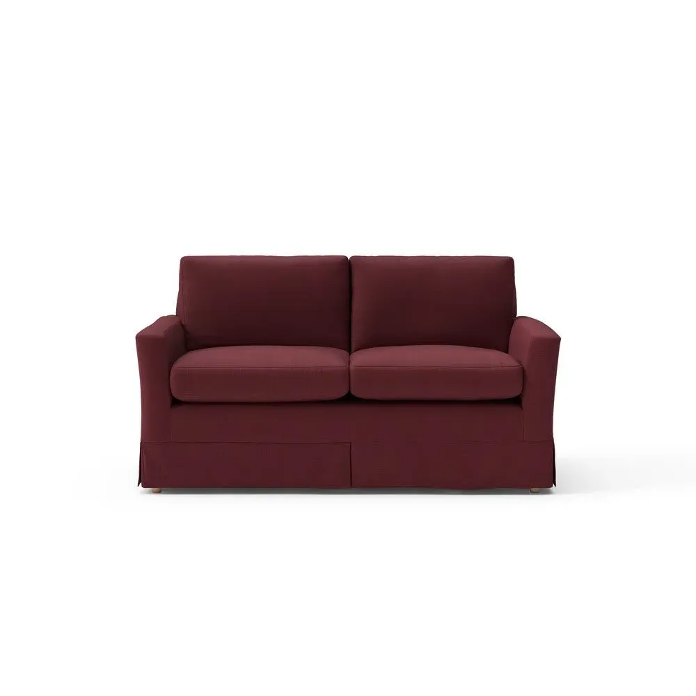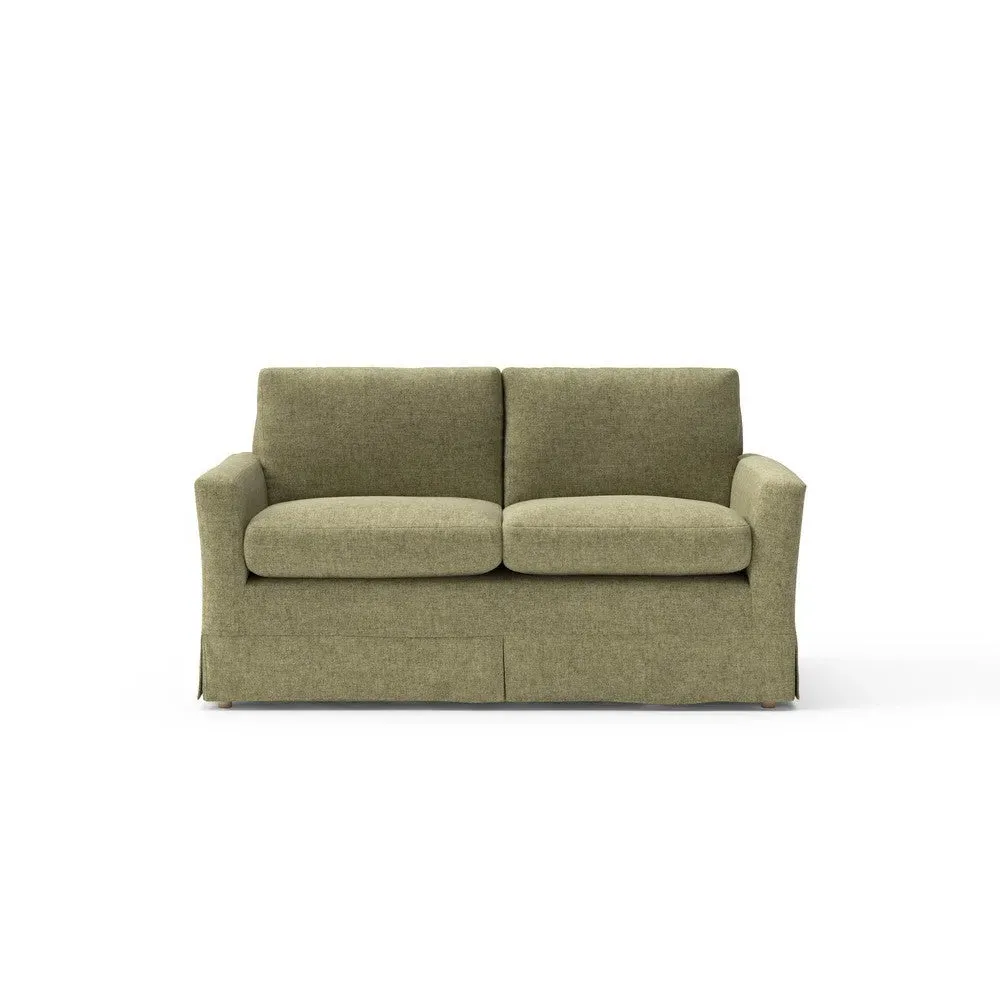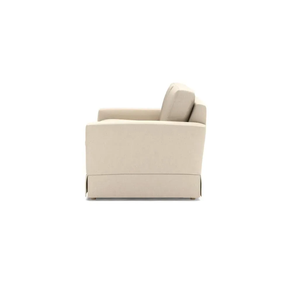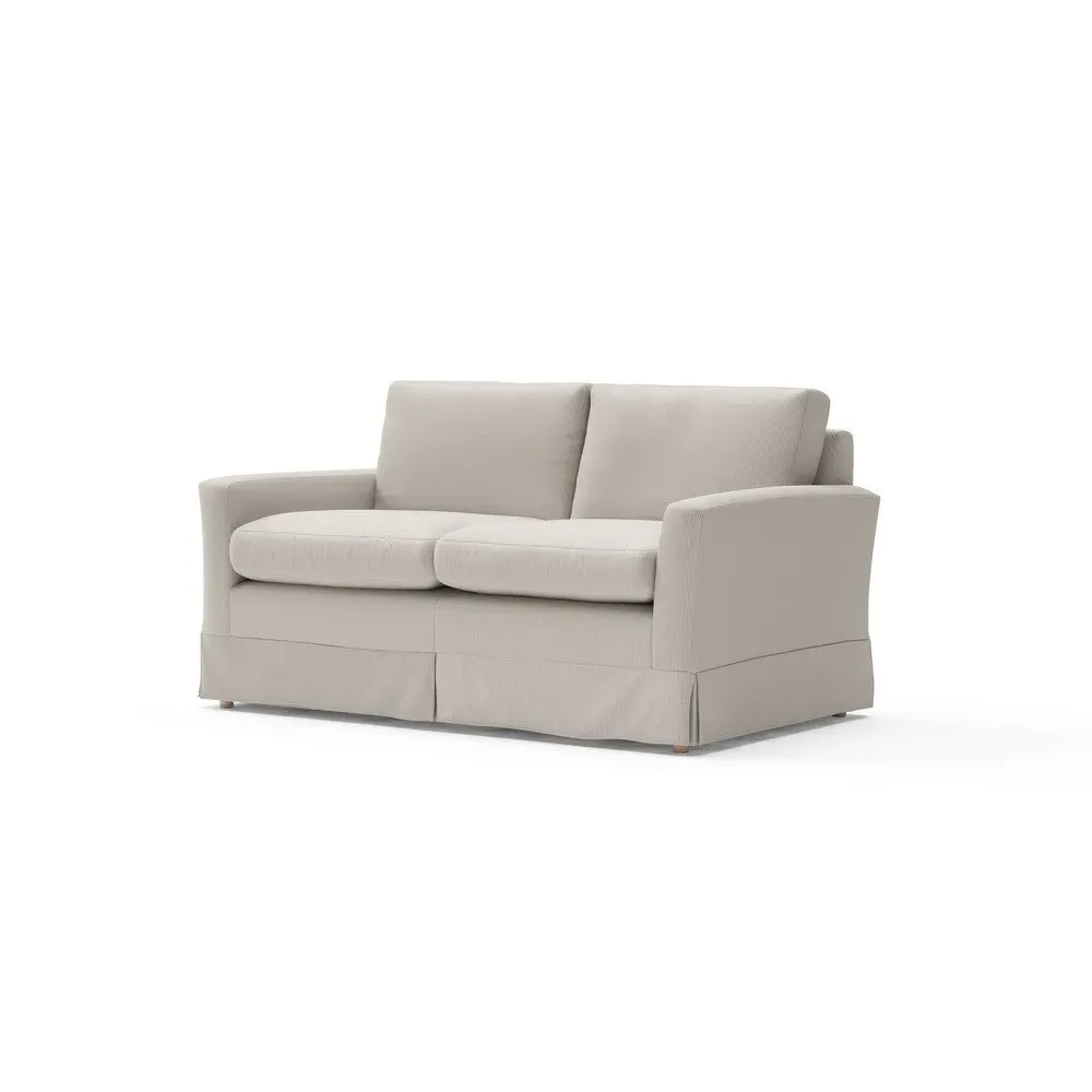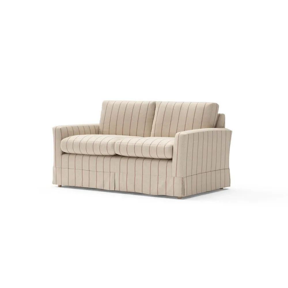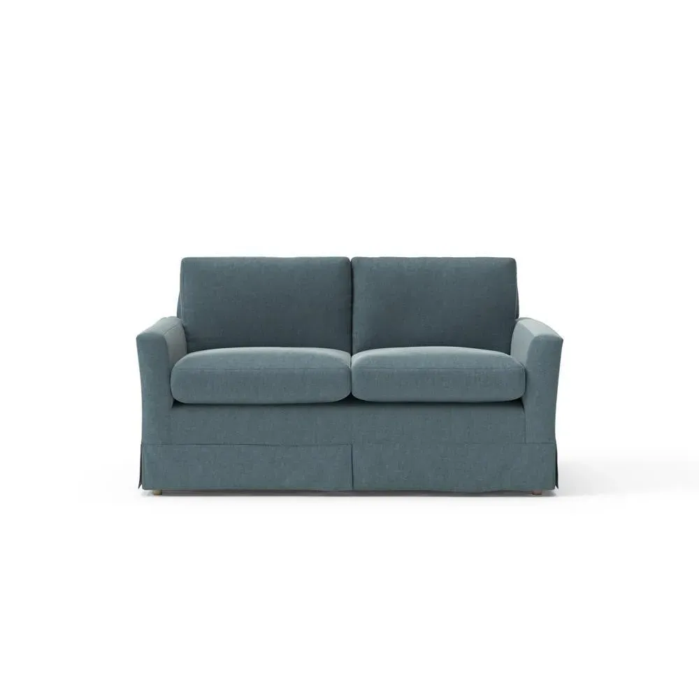 The sofa offers comfort with its slim arms and clean-lined silhouette. Its straight back provides support for additional cushions, while the House Weave fabric adds durability. The frame accommodates both feather and low maintenance interior options, and loose covers are available separately for easy maintenance.