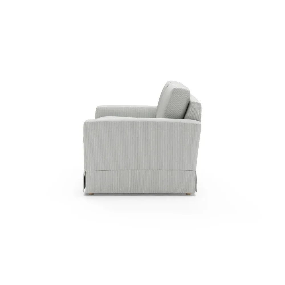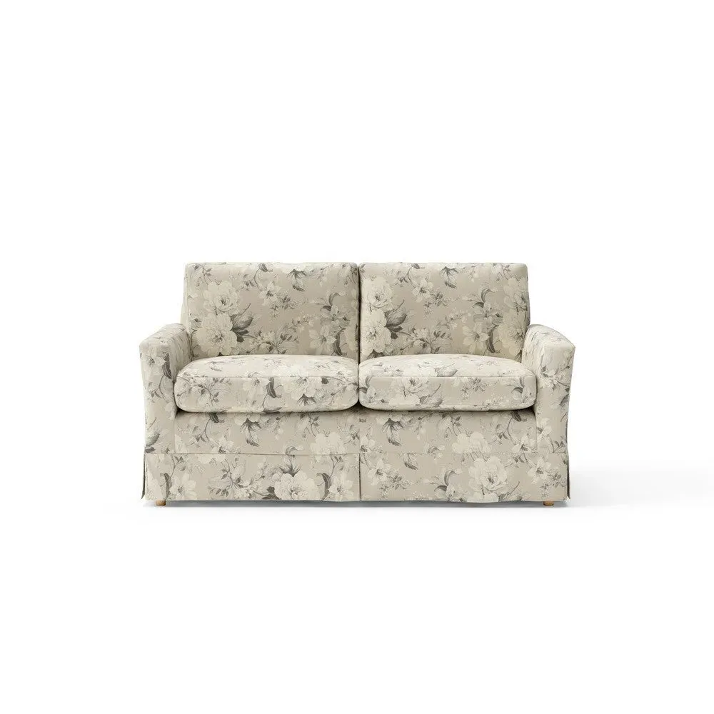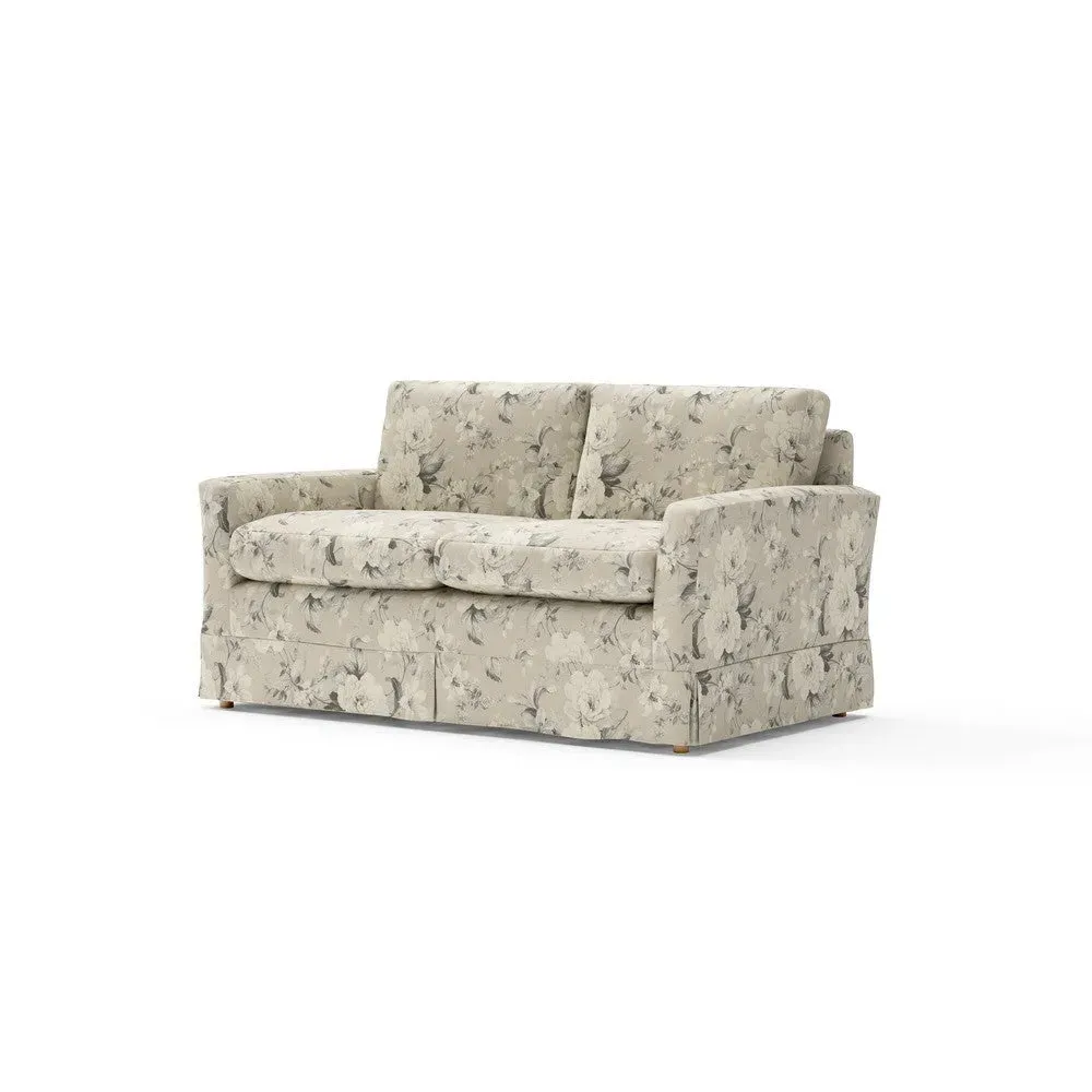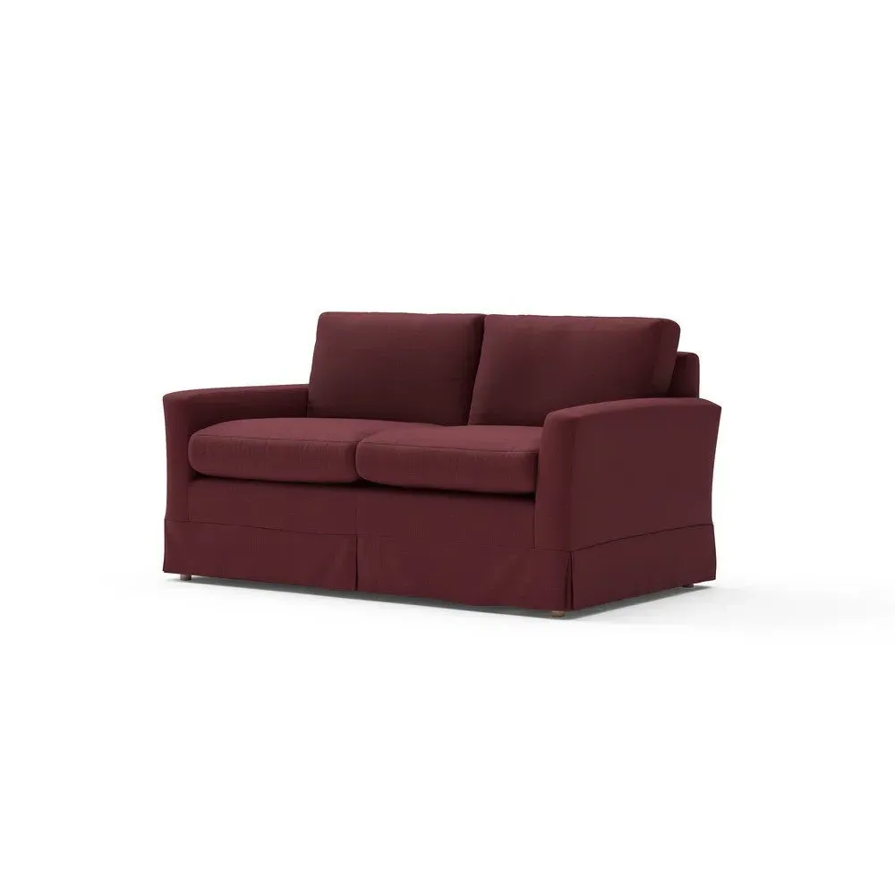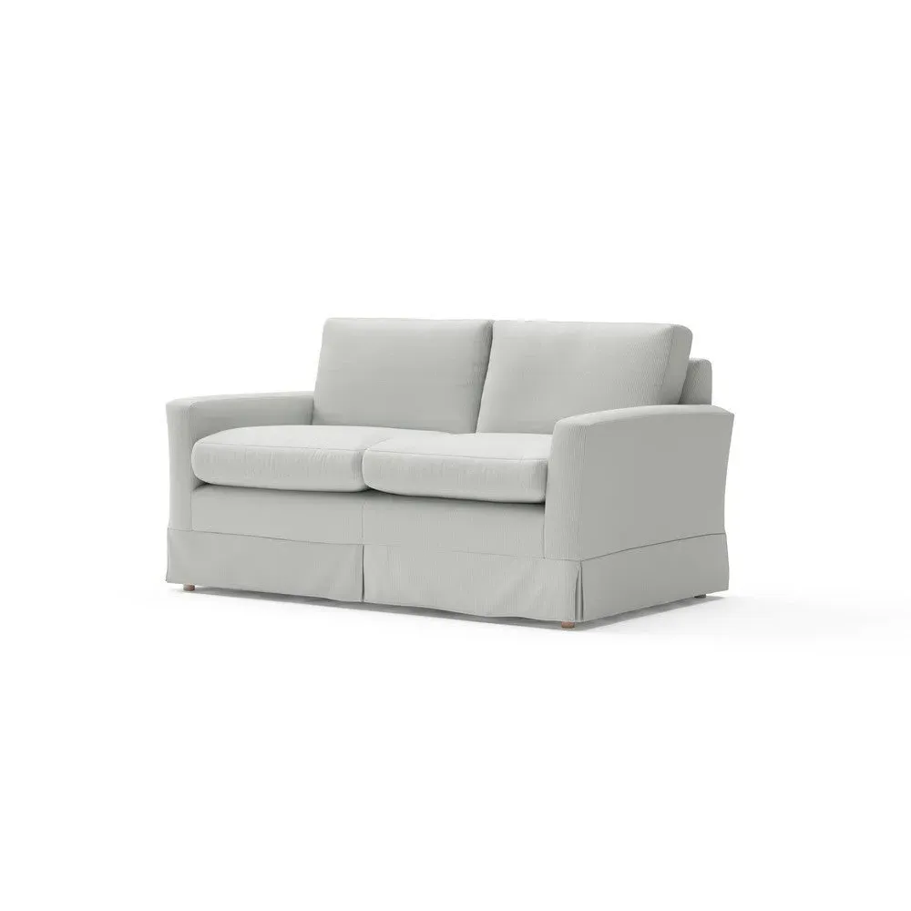 The sofa offers comfort with its slim arms and clean-lined silhouette. Its straight back provides support for additional cushions, while the House Weave fabric adds durability. The frame accommodates both feather and low maintenance interior options, and loose covers are available separately for easy maintenance.