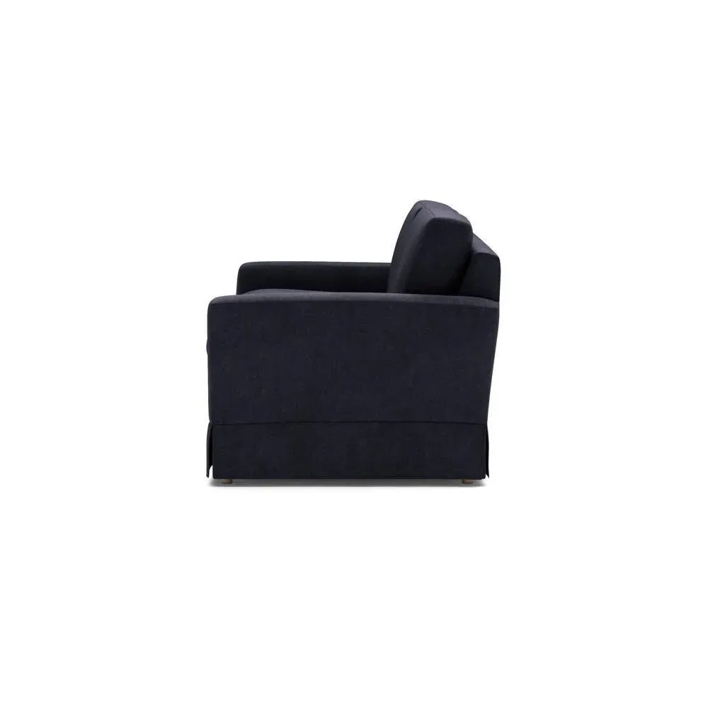 The sofa offers comfort with its slim arms and clean-lined silhouette. Its ...