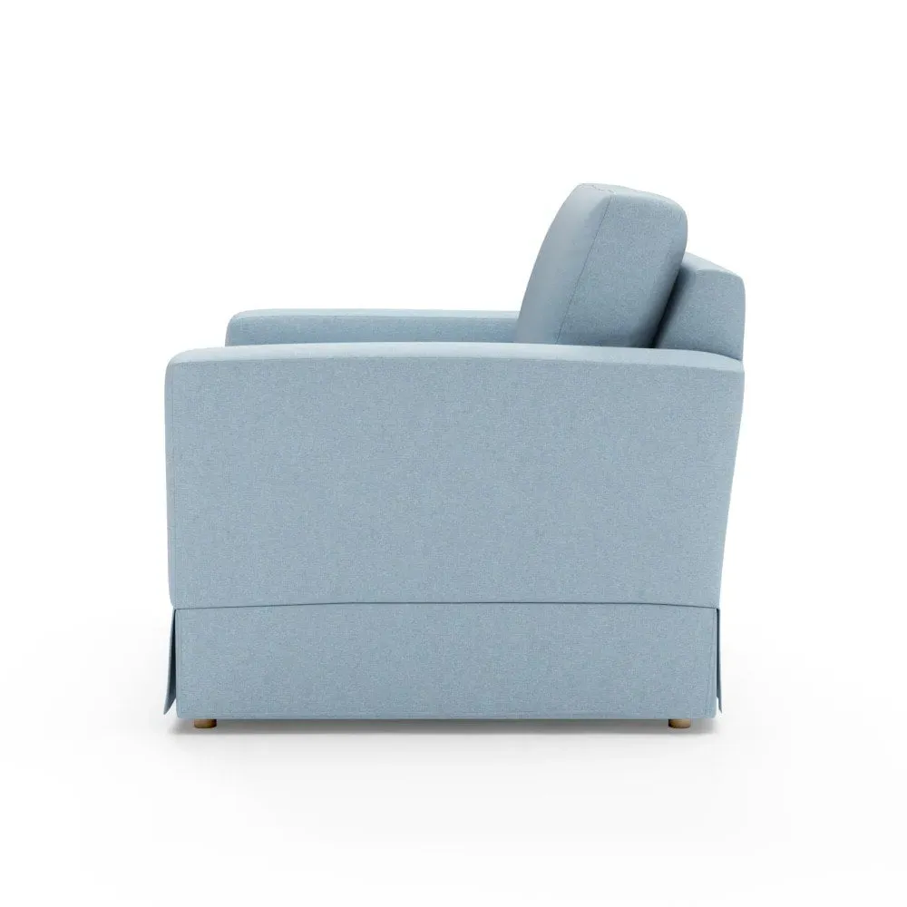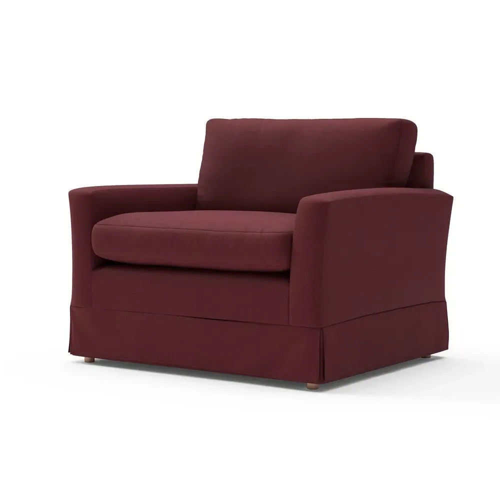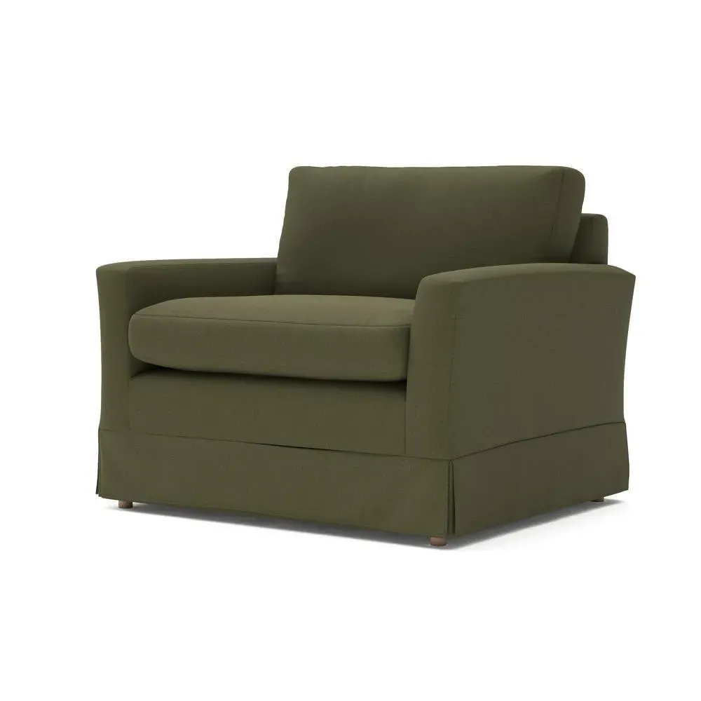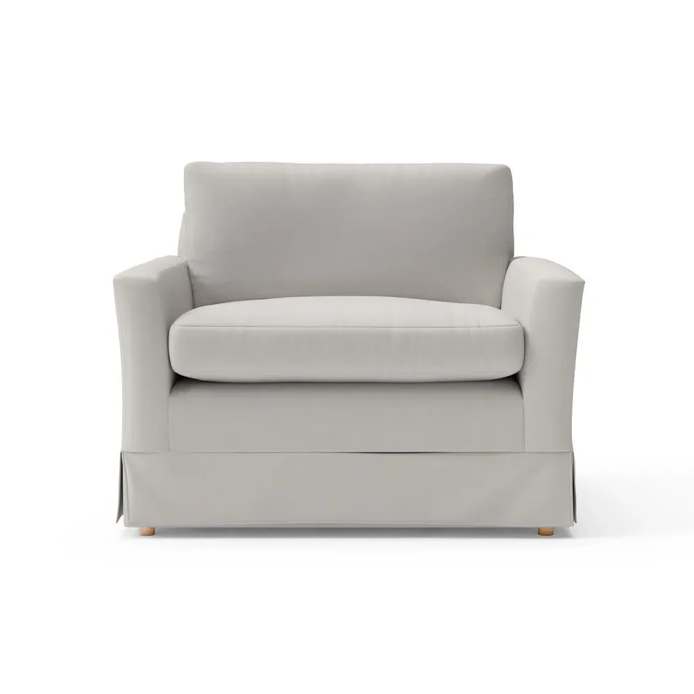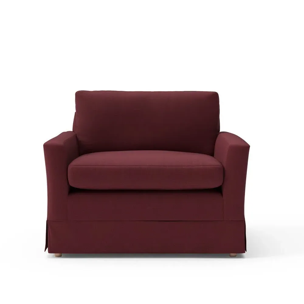 The Love Seat offers comfort with its slim arms and clean-lined silhouette, accented by house linen mix upholstery. Its straight back provides support for additional cushions, while the streamlined design adds versatility to any space. The construction allows for both feather and low maintenance interior options, and the frame ensures lasting durability with removable loose covers available separately.