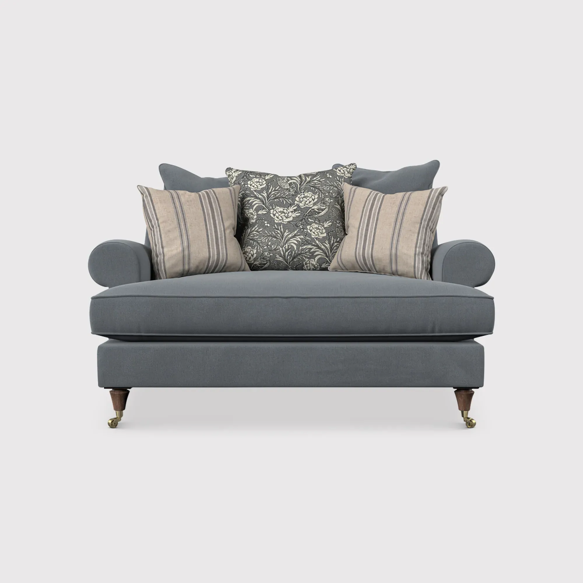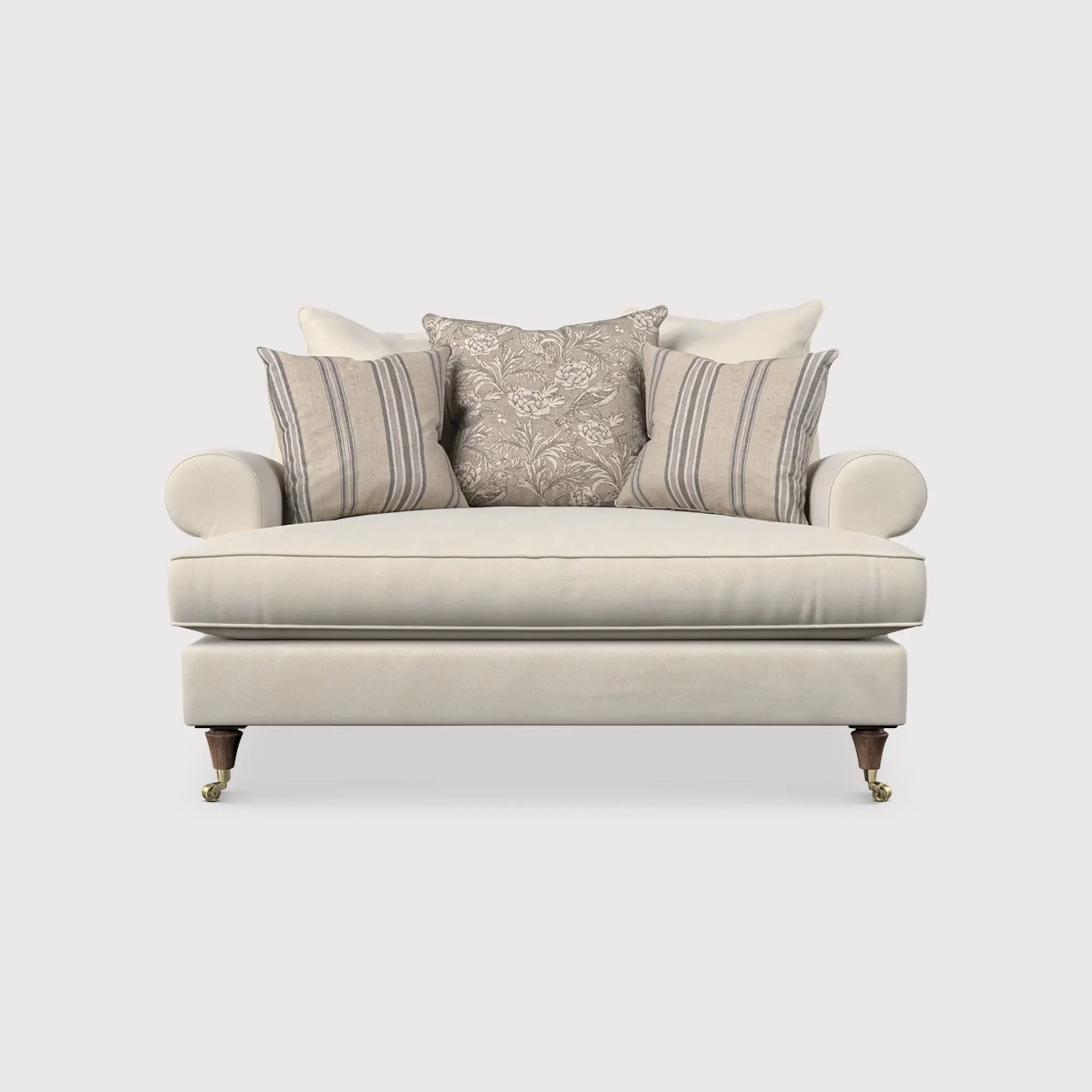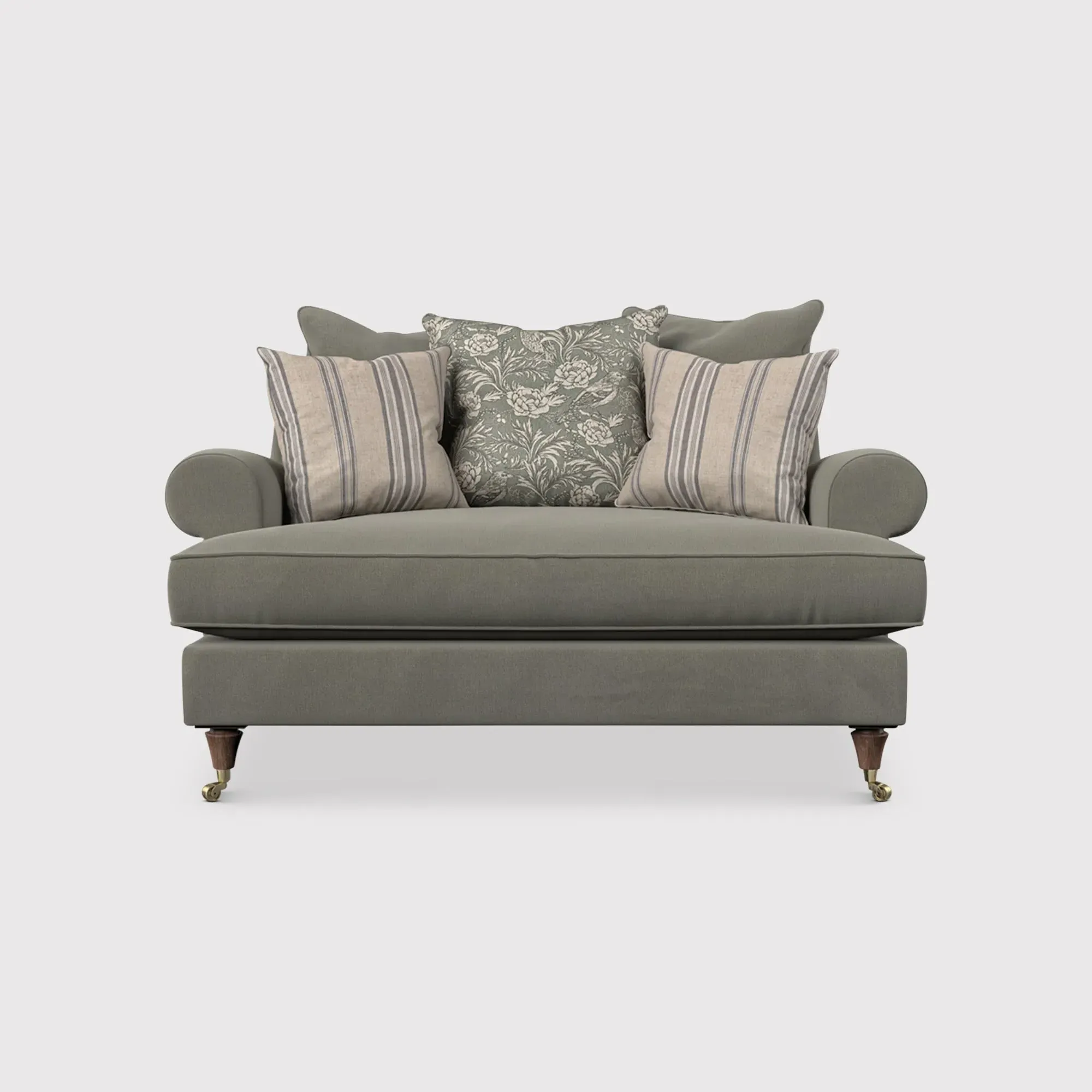 The English Heritage Finch Cuddler Chair offers exceptional comfort with its generously padded pillow back design. The cuddler style provides a spacious seating area that accommodates relaxed lounging positions, while the supportive cushioning ensures lasting comfort. Its sturdy frame construction delivers reliable durability for everyday use.