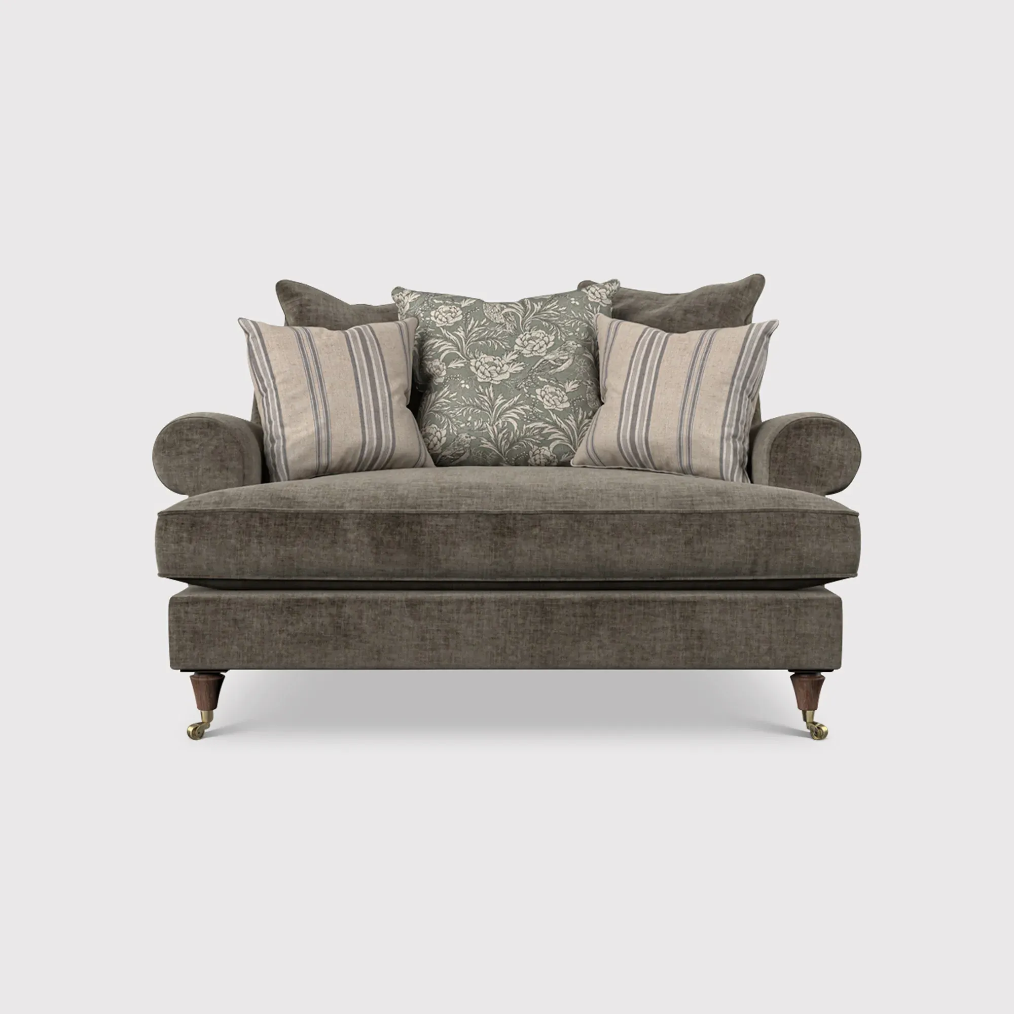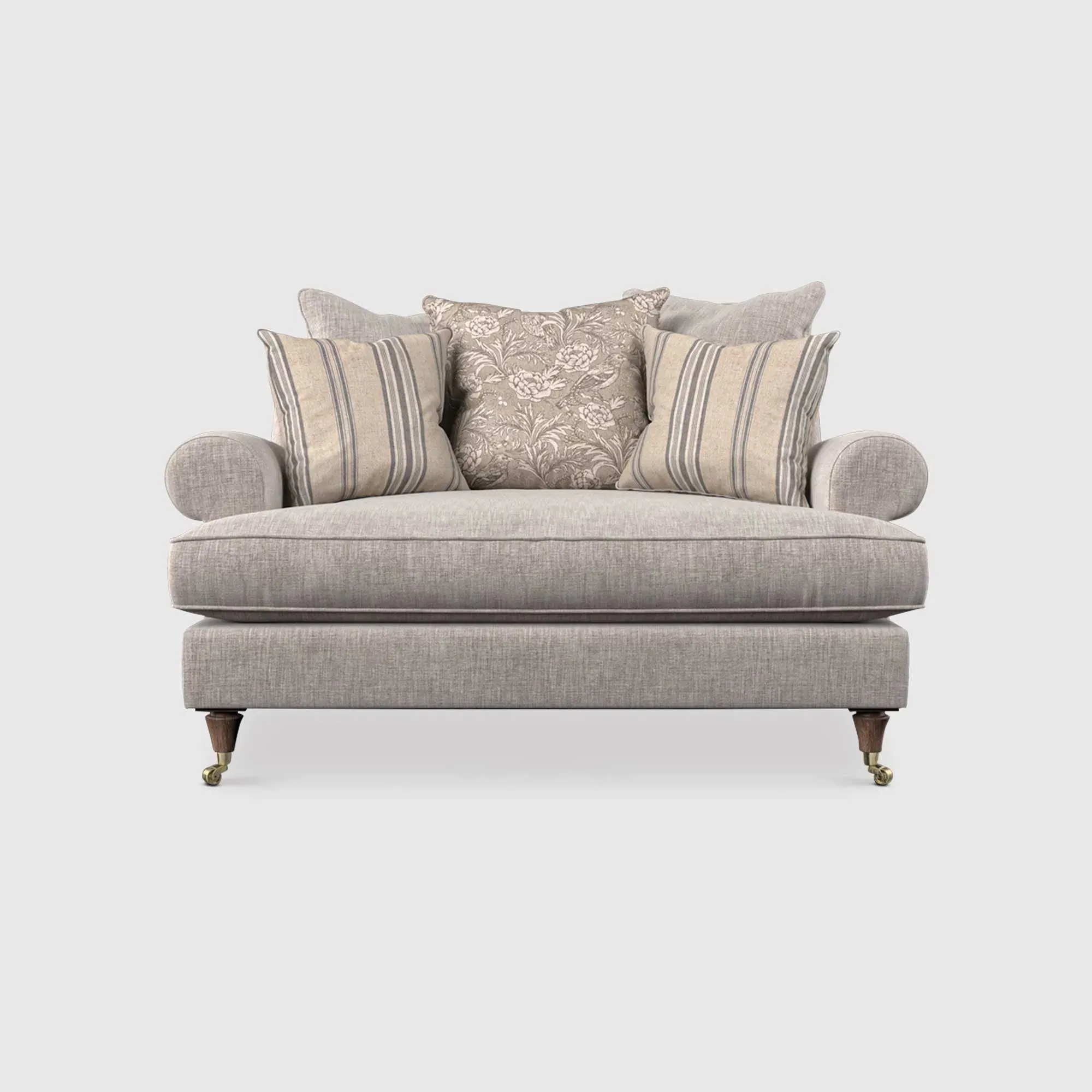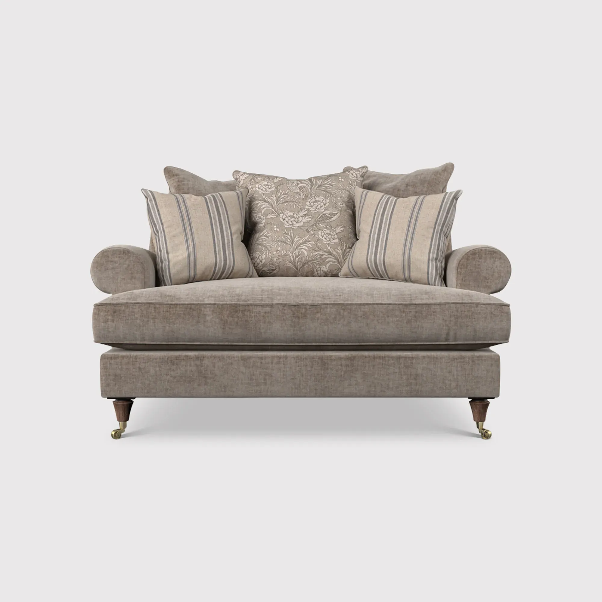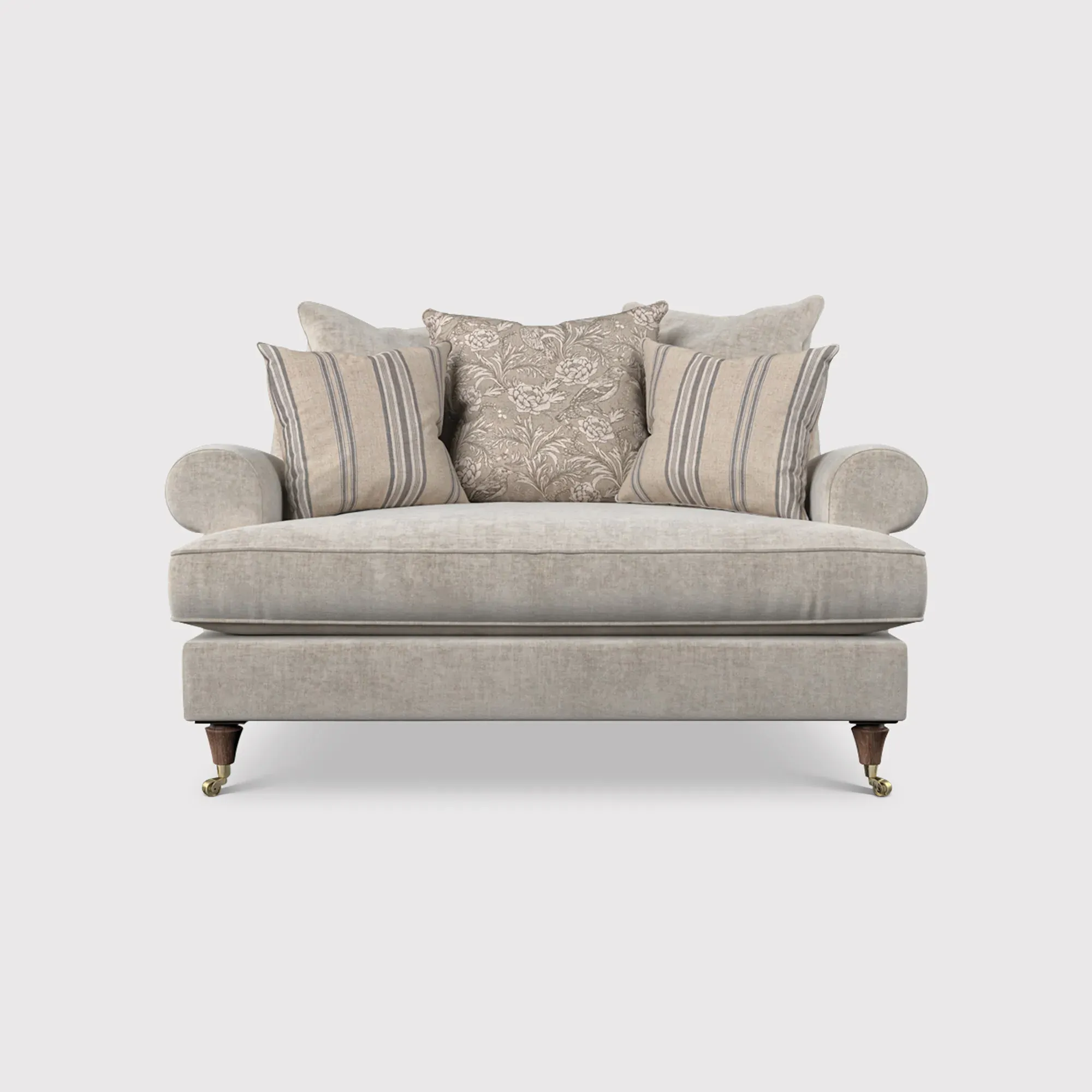 The English Heritage Finch Cuddler Chair offers exceptional comfort with its generously padded pillow back design. The cuddler style provides a spacious seating area that accommodates relaxed lounging positions, while the supportive cushioning ensures lasting comfort. Its sturdy frame construction delivers reliable durability for everyday use.