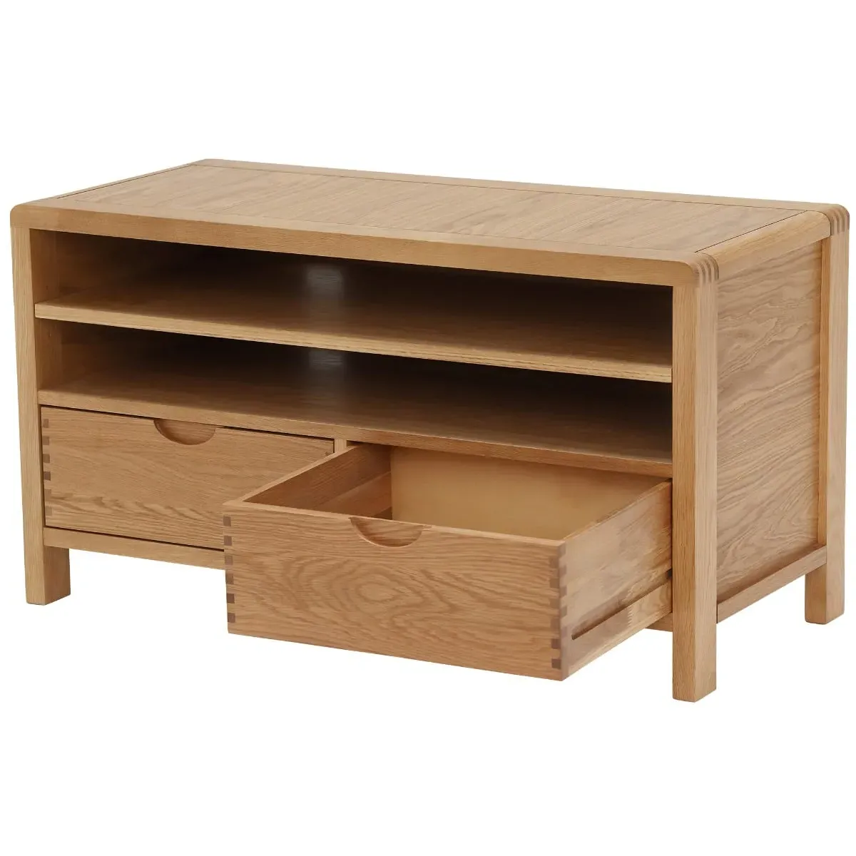 The Ercol Bosco Compact Side Table provides convenient surface space with its solid oak construction and oak veneer finish. Its compact design fits easily beside seating or beds, while the brown oak finish adds warmth to any space. The durable construction ensures reliable daily use.