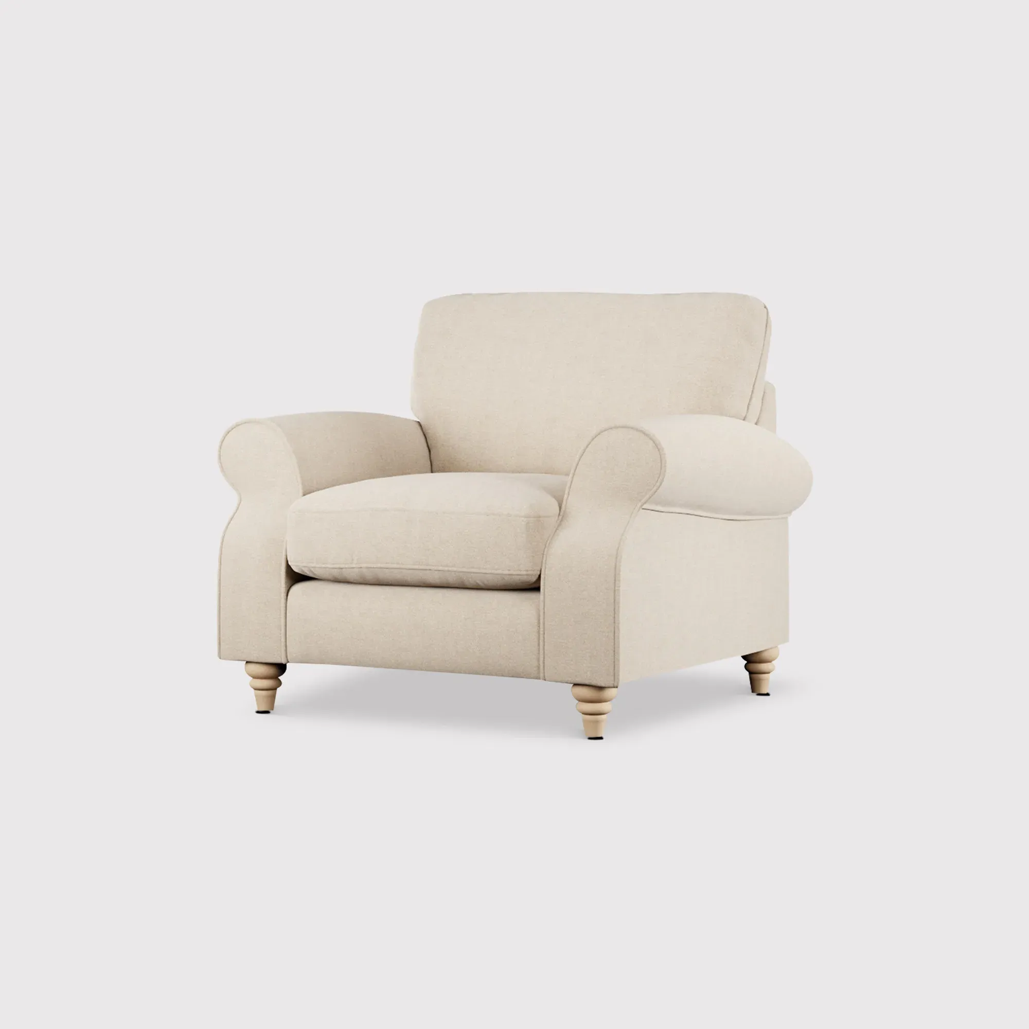 The Hattie Armchair offers enduring comfort with its hardwood frame construction. Its solid build provides unwavering stability, while the fabric upholstery adds softness and warmth. The robust frame ensures long-lasting durability for daily use.