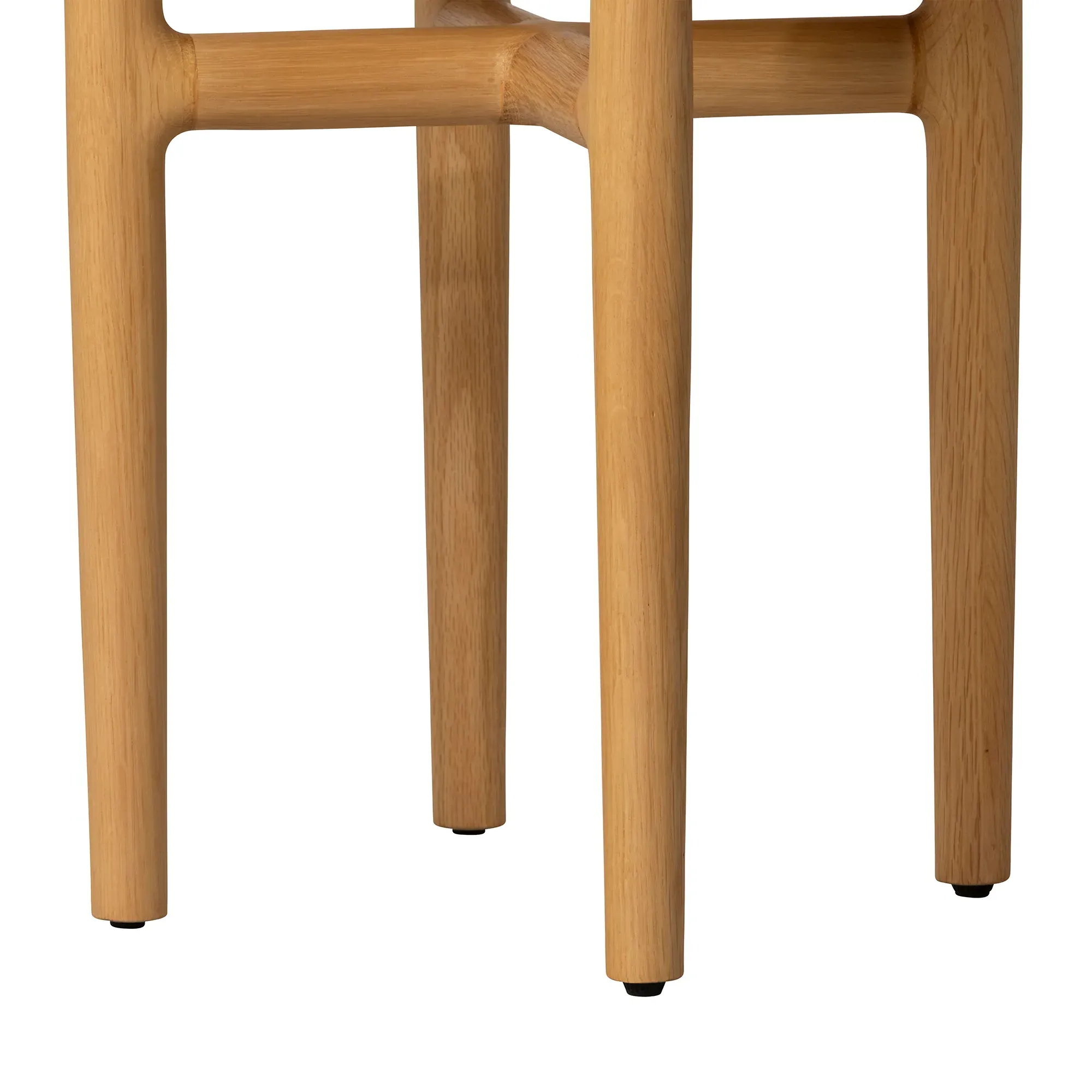The Medici Lamp Table combines glass, wood, and mild steel construction for balanced durability and natural charm. Its round glass top provides a smooth surface, while the warm-toned wood and steel base add structural support. W30 x D30 x H52 cm.