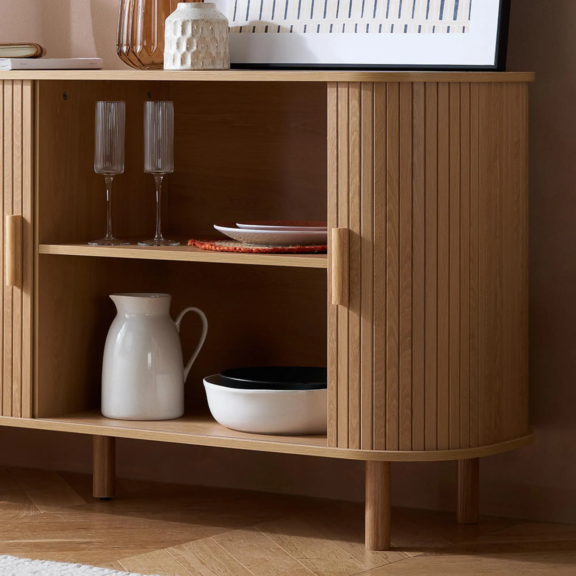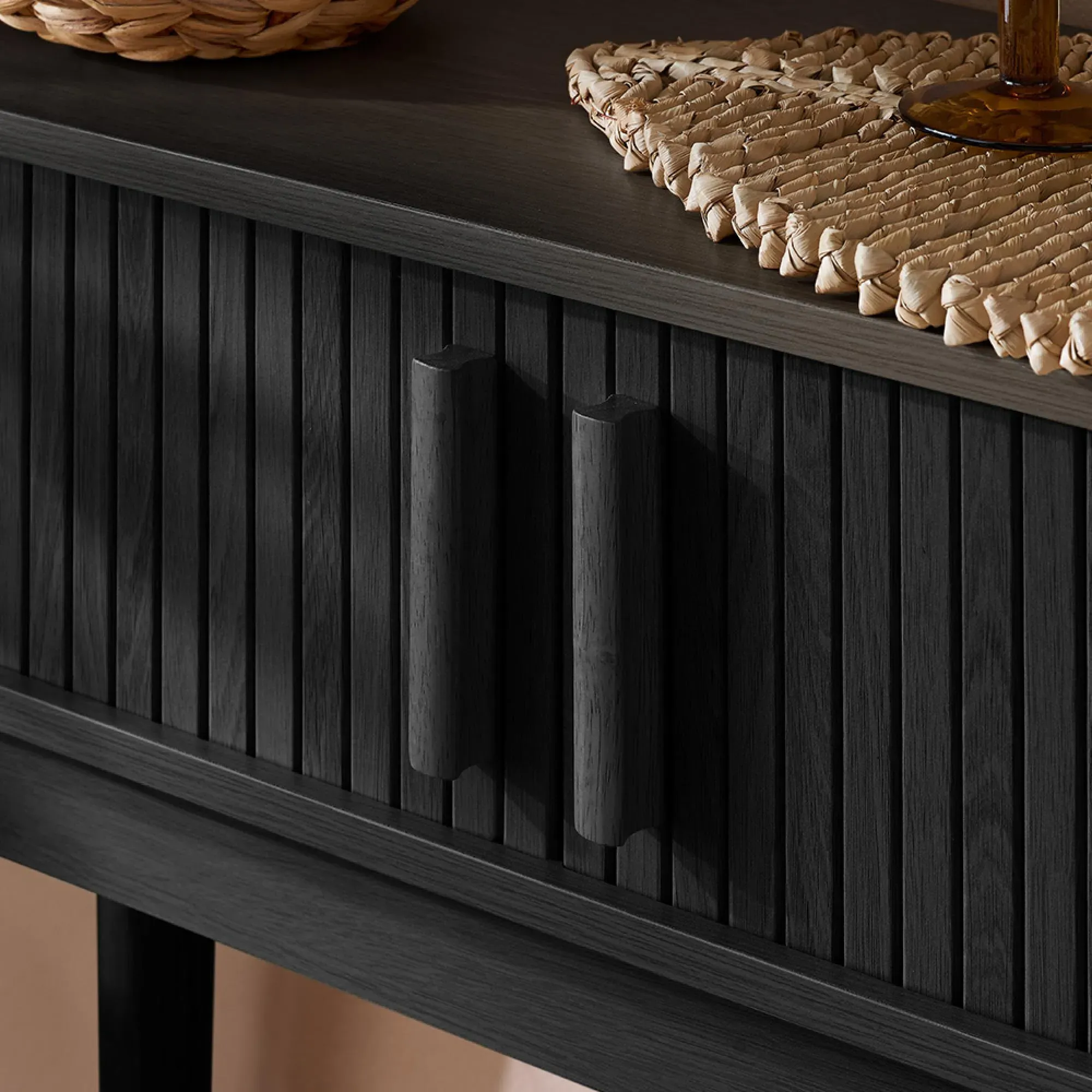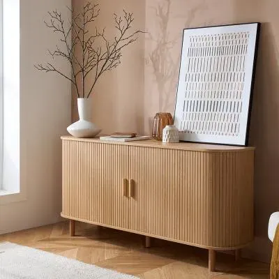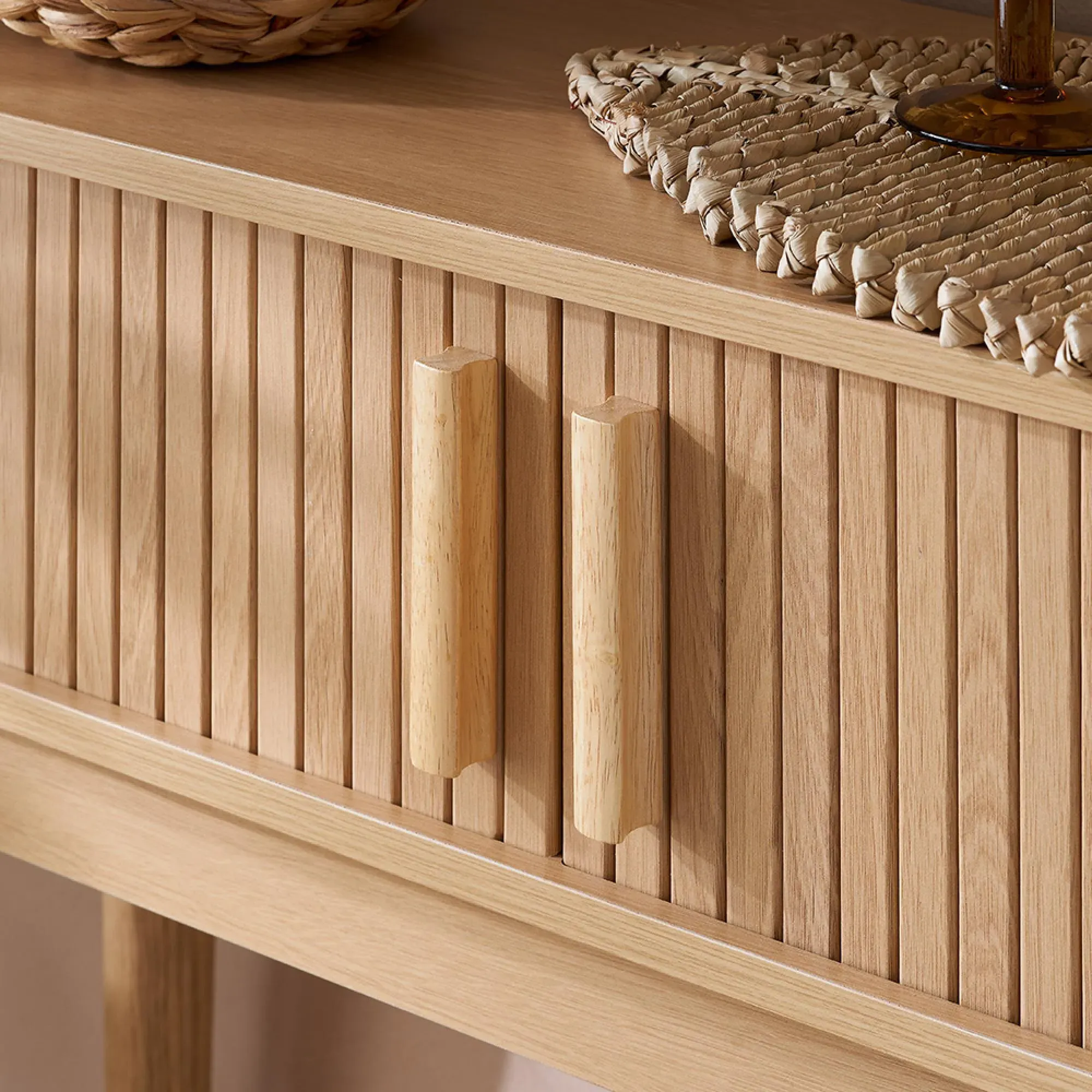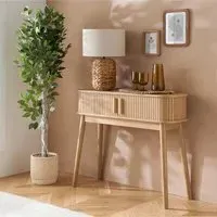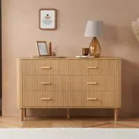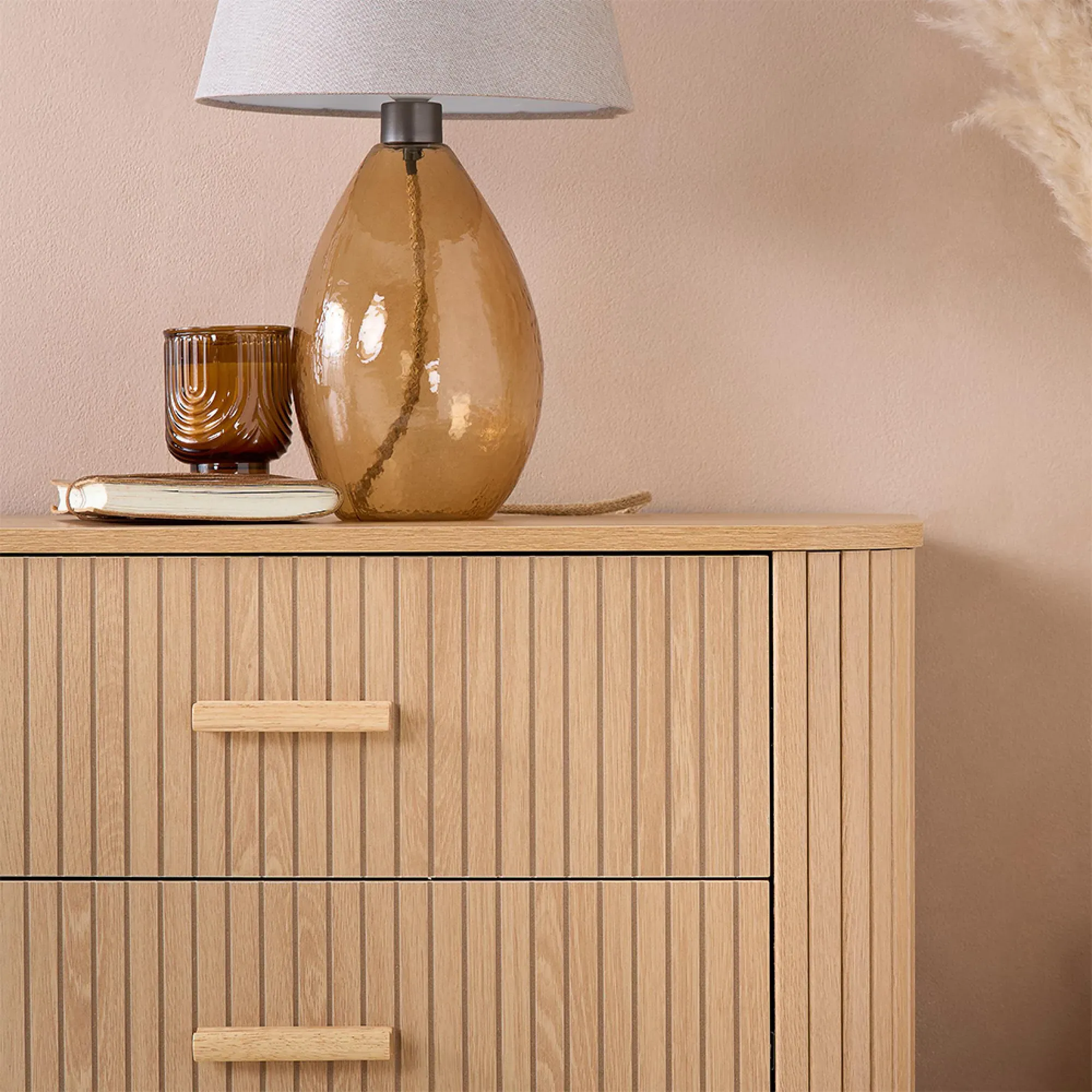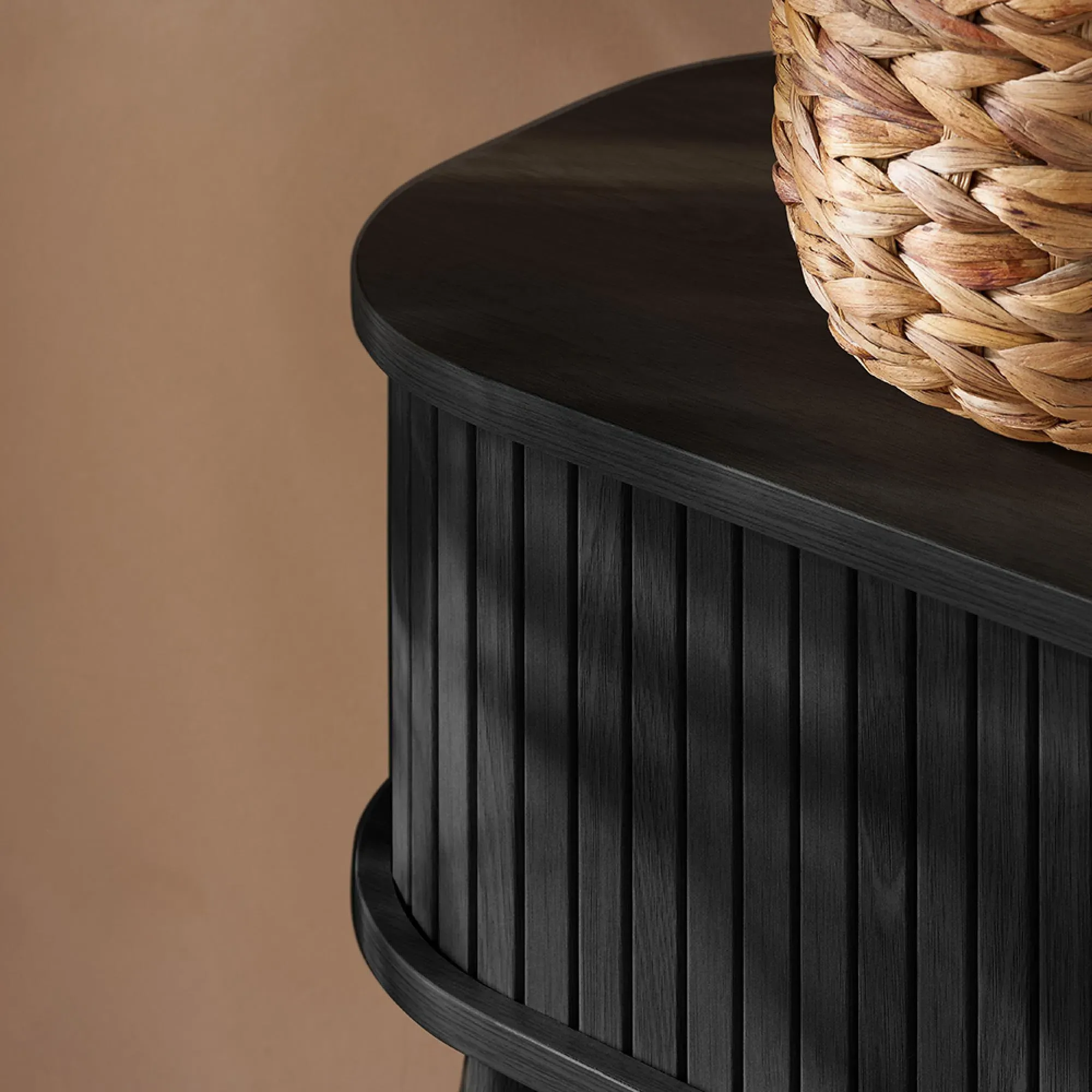 The Axel bedside cabinet combines curved design with fluted detailing for a distinctive look. Its single drawer provides convenient storage for bedside essentials, while the oak finish adds natural warmth to any space. The curved profile softens the overall appearance, and the sturdy construction ensures lasting durability.