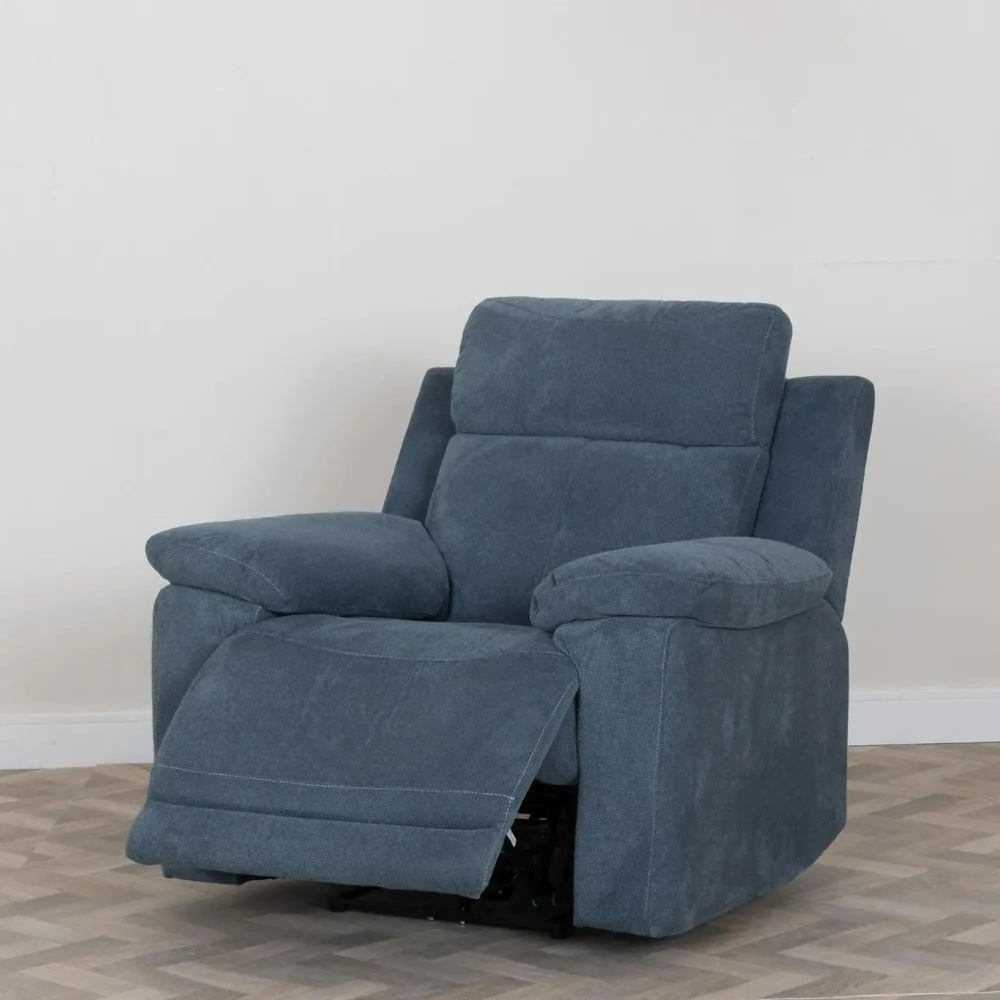 The Augusta Ancona Electric Recliner Armchair features luxurious blue fabric upholstery with cutting-edge electric reclining technology. The electric mechanism allows for effortless adjustment to find your ideal position with the touch of a button, while the plush fabric ensures durability and easy maintenance. Its sophisticated design fits seamlessly into any living space while providing ample room for relaxation. W108 x D94 x H89 cm with 50cm seat height.