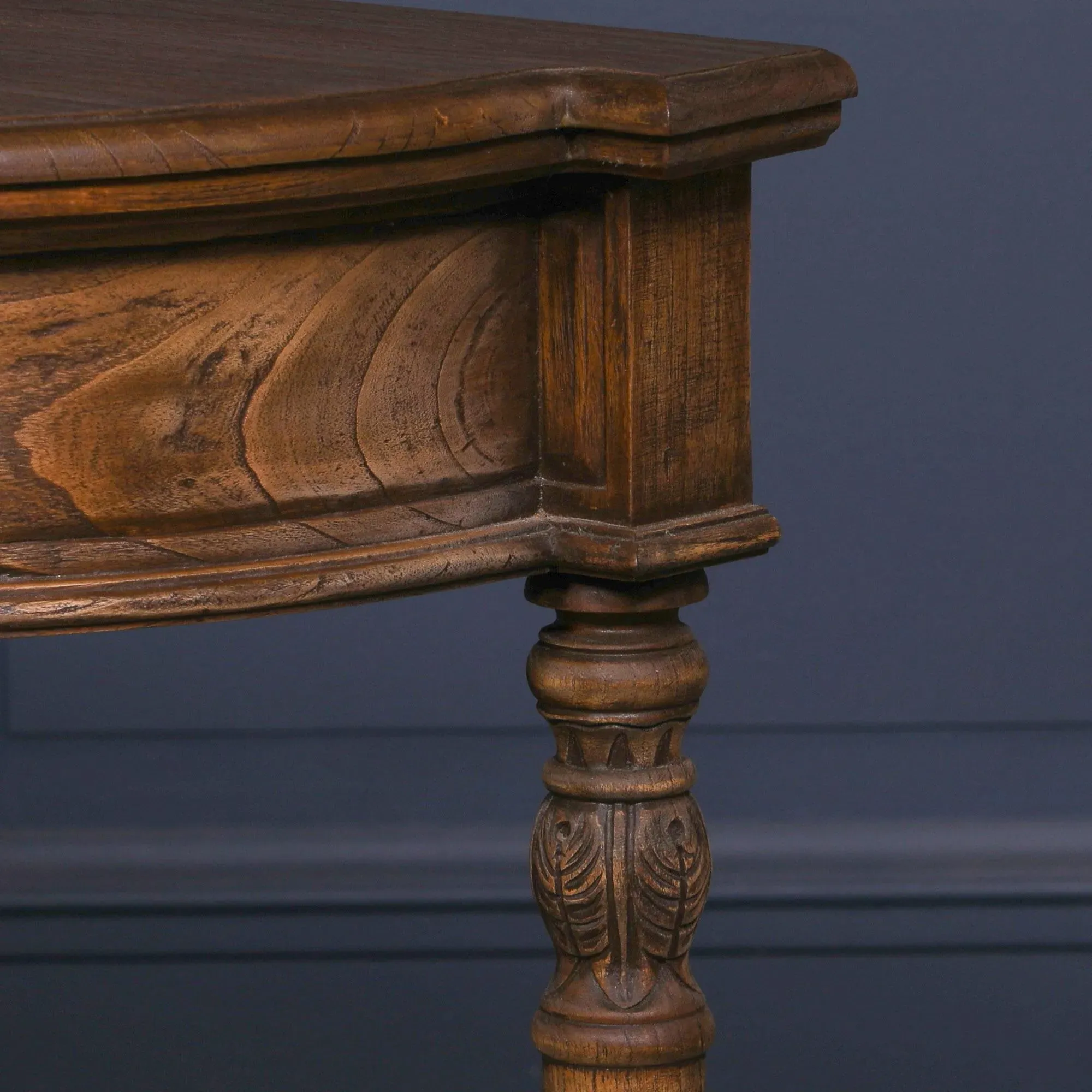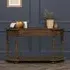 The console table combines black mahogany wood with white cedar turned legs for distinctive styling. Its single drawer provides convenient storage for small items, while the tabletop offers ample display space. The turned leg design adds character and the compact build suits smaller spaces effectively.