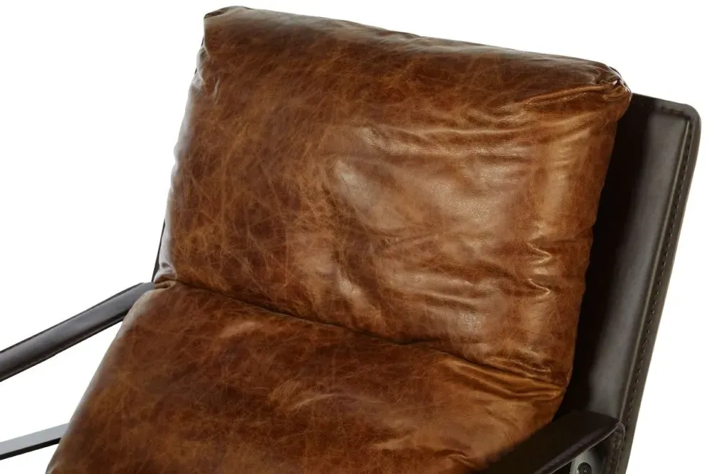 The Hoxton Lounge Chair features distinctive distressed leather upholstery in a rich ebony finish. The weathered leather construction provides character and durability, while the supportive frame ensures lasting comfort. Its textured surface adds visual interest, and the deep ebony tone brings sophistication to any space.