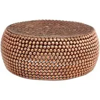 The Templar stool provides seating with decorative beaded accents that create visual interest. Its copper finish delivers rich metallic warmth, while the round shape offers comfortable perching space. The solid construction ensures durability, and the compact design fits easily into various room layouts.