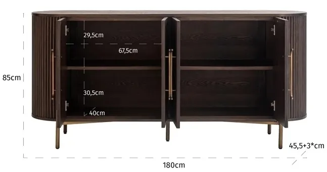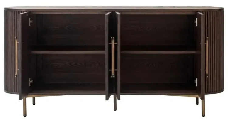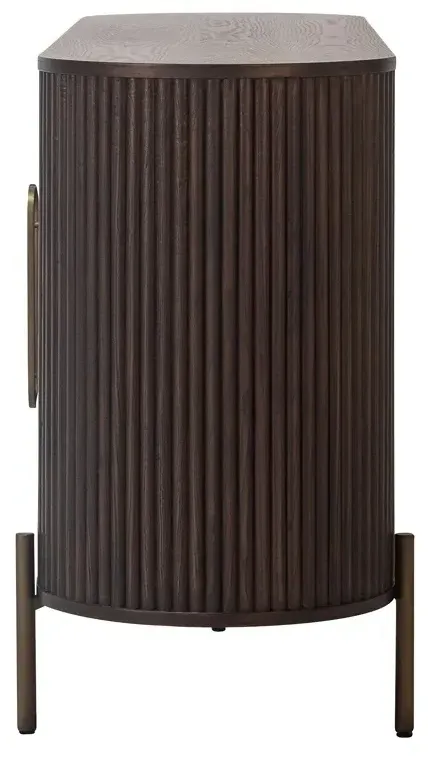 The Luxor Console Table combines curved design with ribbed detailing, featuring brushed brass accents throughout. Its single drawer provides convenient storage, while the curved silhouette adds visual interest to any space. The ribbed texture creates depth and dimension, and the brass finish ensures lasting appeal.