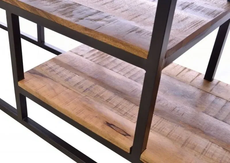 The Old Empire side tables offer practical surface space with their solid mango wood construction. Each table features natural wood grain patterns that add character to the design, while the sturdy build ensures reliable daily use. The set of two provides flexible placement options throughout your space.