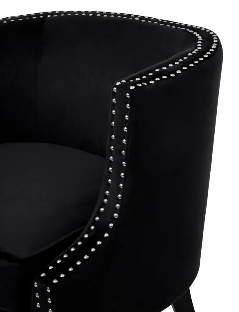 The Larissa accent chair features sleek metal legs that provide stable support and contemporary appeal. Its grey velvet upholstery offers comfort and sophistication, while the metal base adds durability and visual contrast. The combination creates a versatile seating solution with lasting quality.
