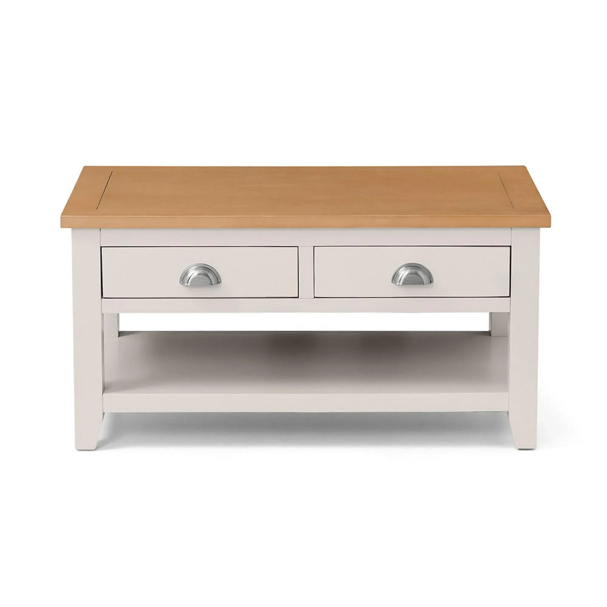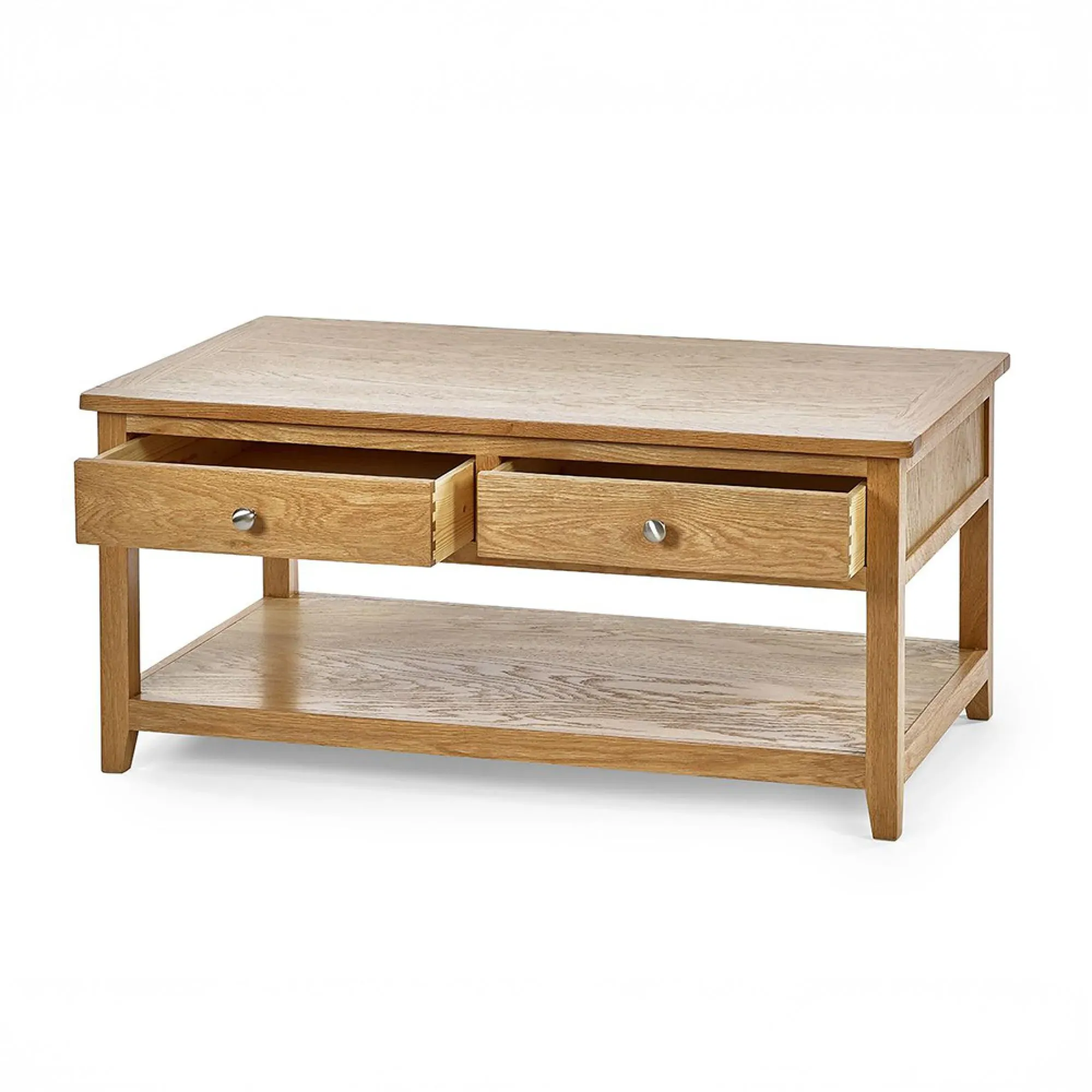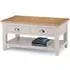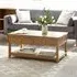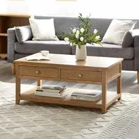 The Sydney Coffee Table features contemporary design with two functional drawers for convenient storage. Its faux rattan detailing provides textural interest, while the oak finish brings natural warmth to the piece. The sturdy construction ensures lasting durability, and the smooth-gliding drawers offer easy organization of living room accessories.