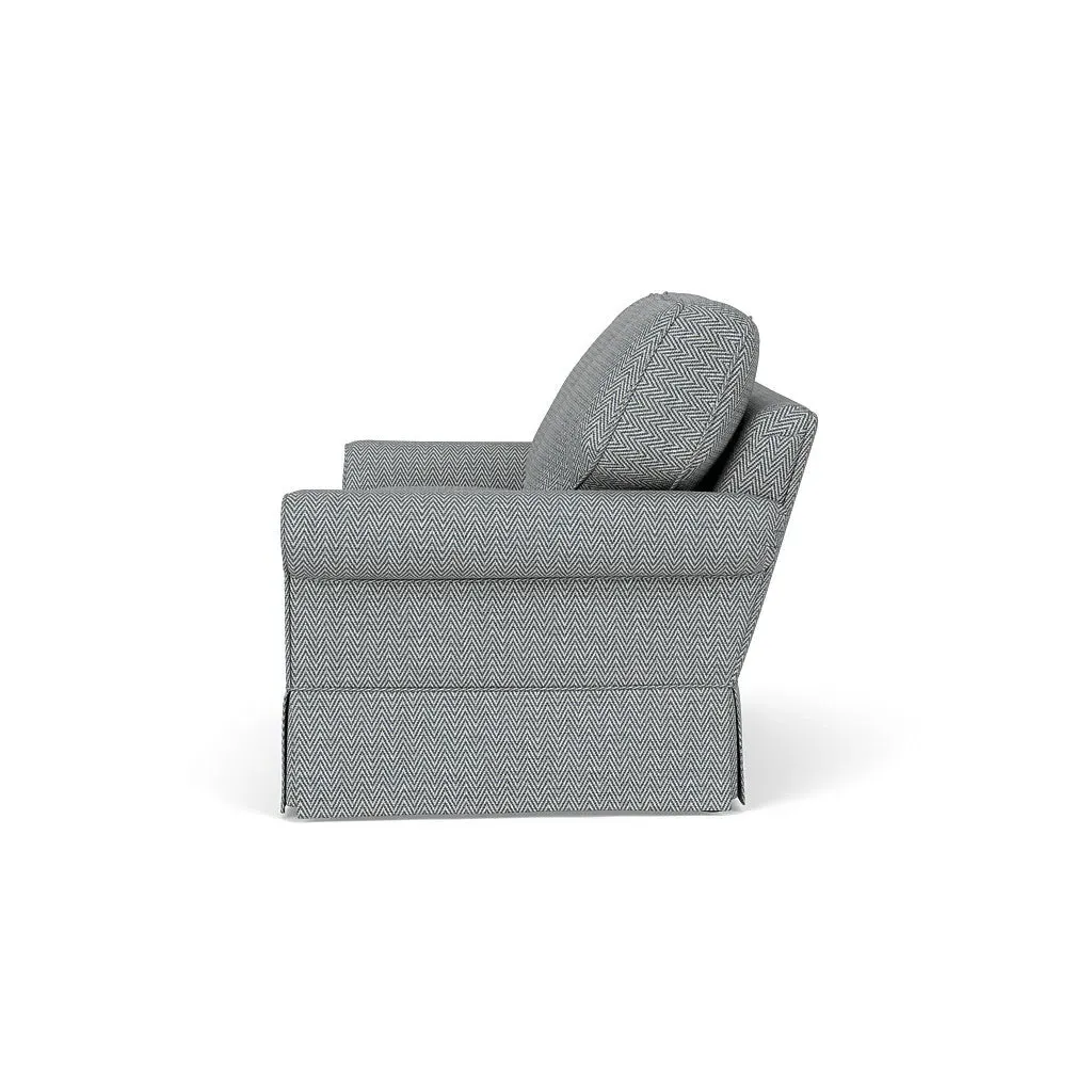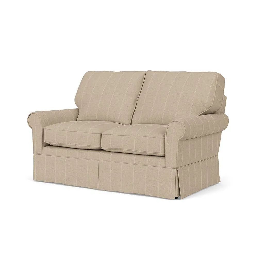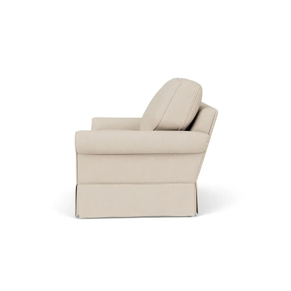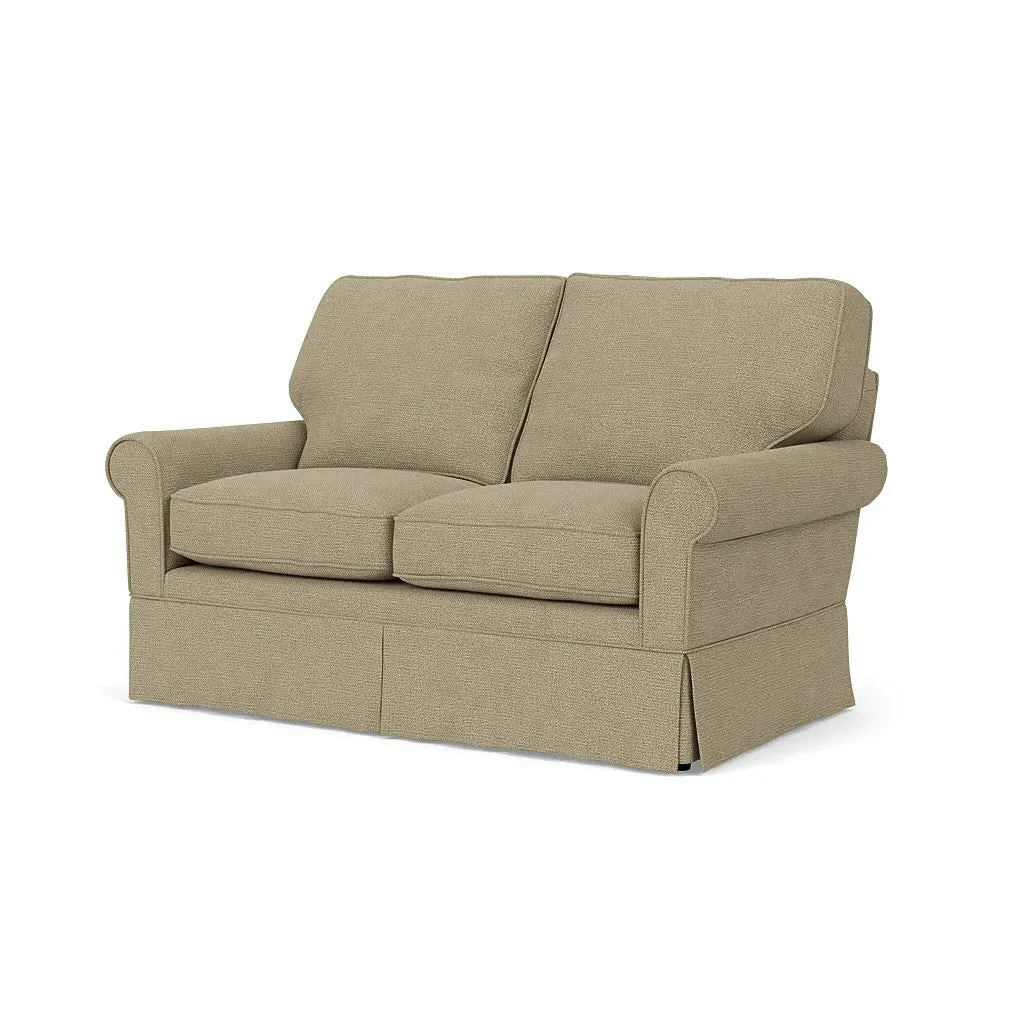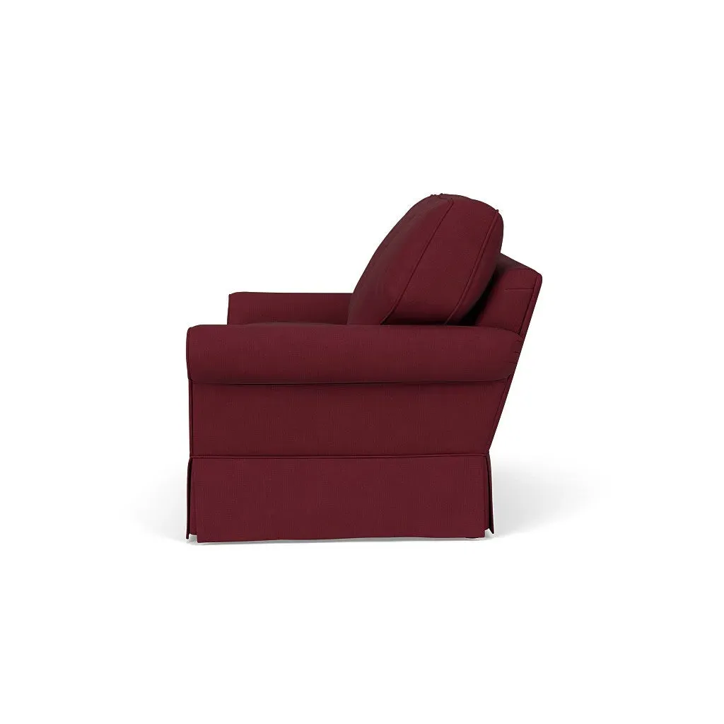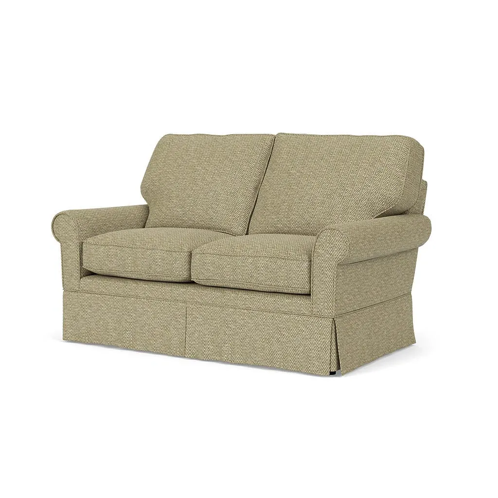 The Dawson sofa combines comfort with its high back and arms that provide enhanced support. Its tailored skirt covers the base while small plastic glides protect your floors. The house weave fabric offers durability, and the structured design ensures lasting appeal in your living space.