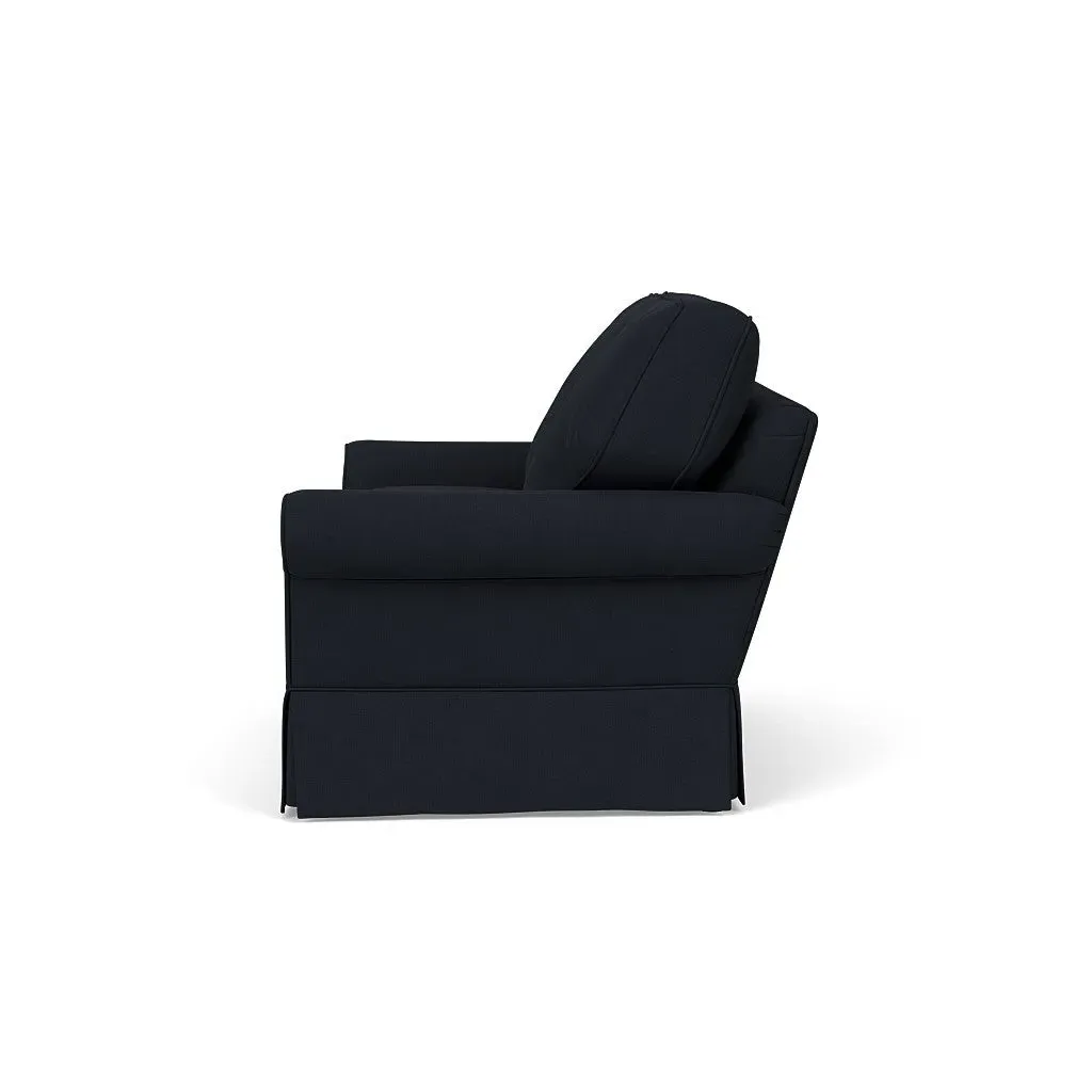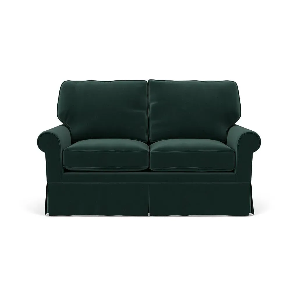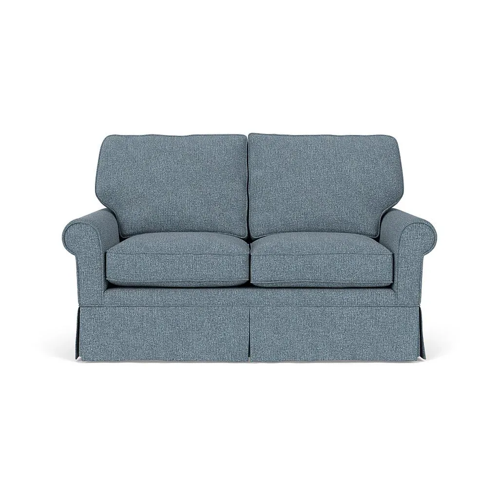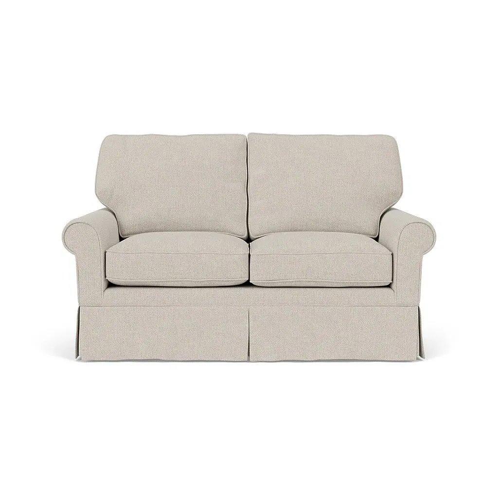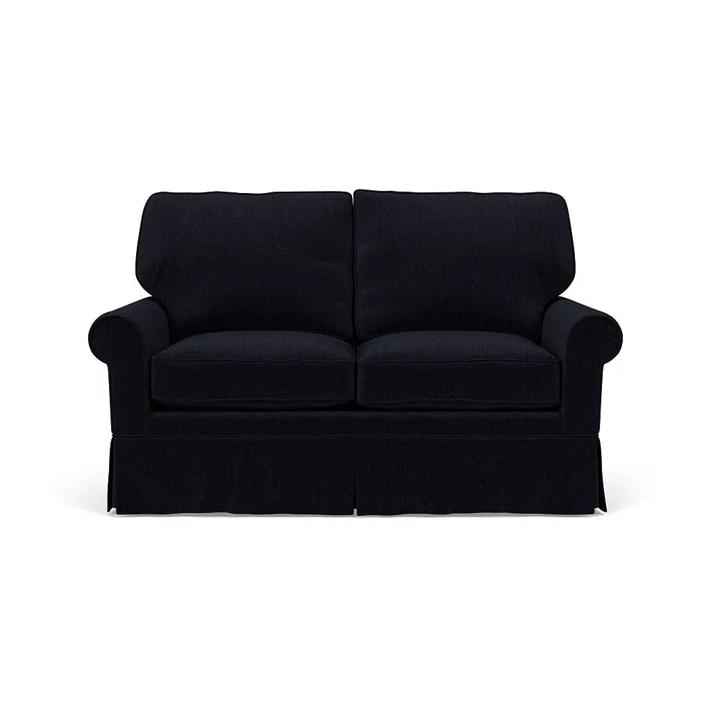 Inspired by timeless design, the Dawson sofa features a high back and arms, perfect for those who seek a little more support. Its tailored skirt covers the base and small plastic glides, enhancing its classic silhouette. Thoughtfully designed, this piece will effortlessly complement your home for years to come.