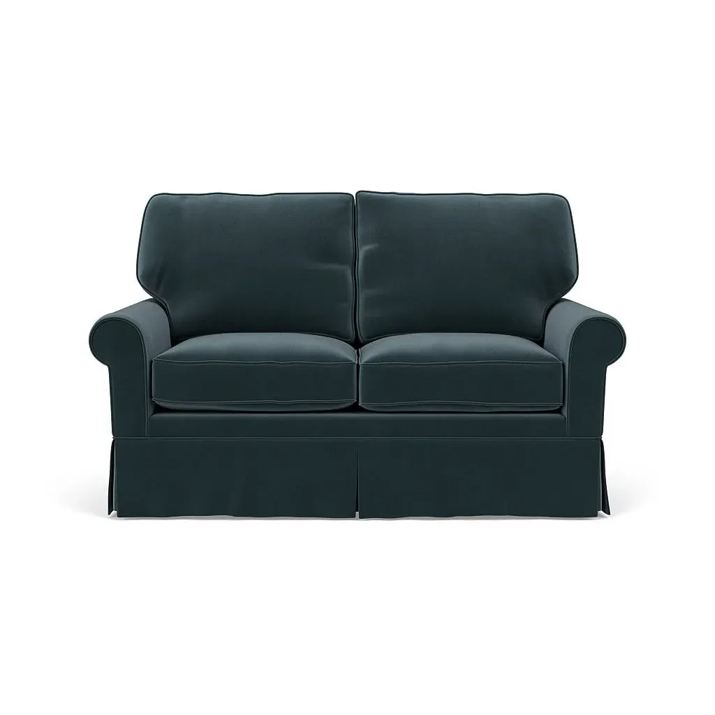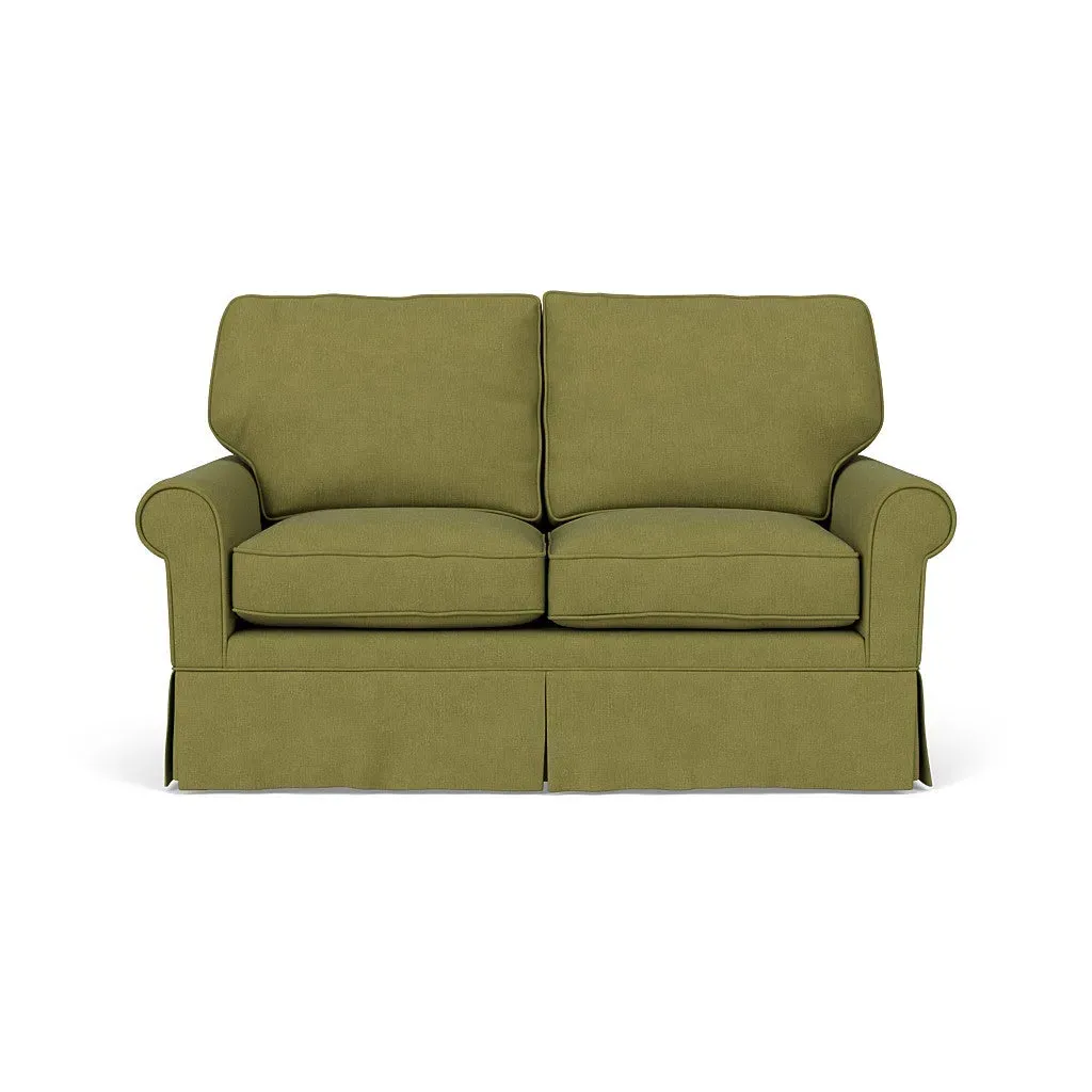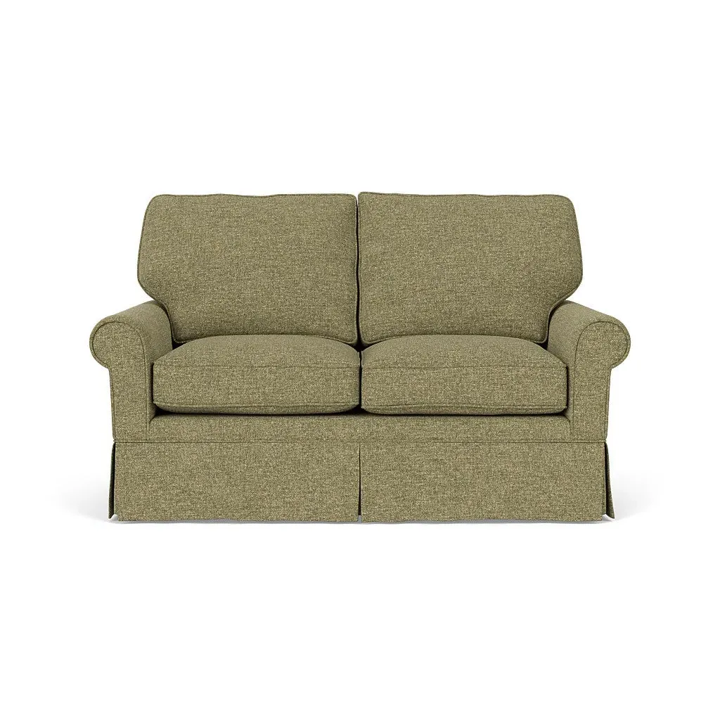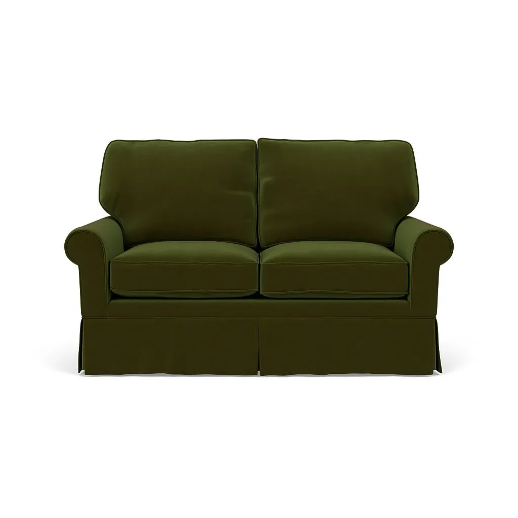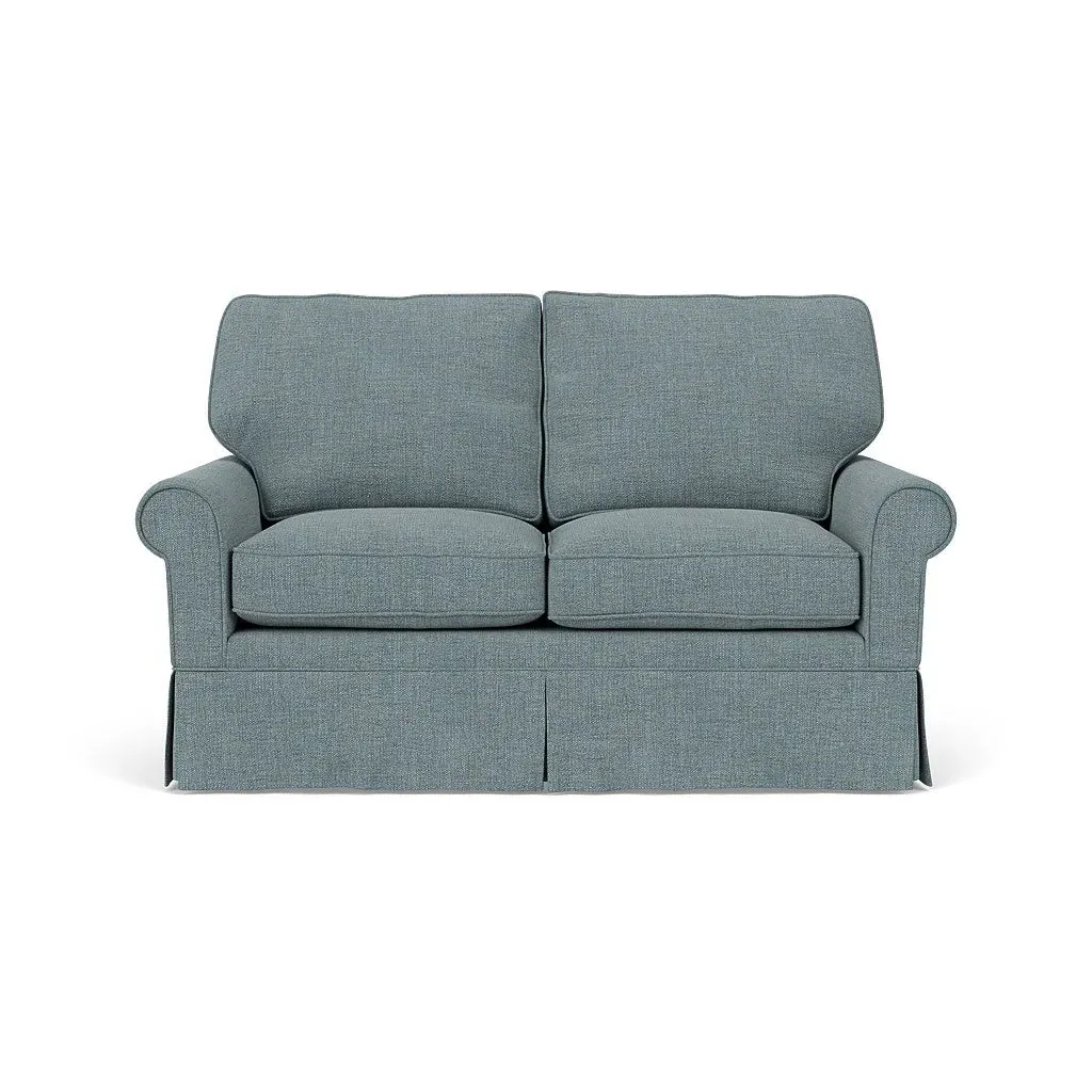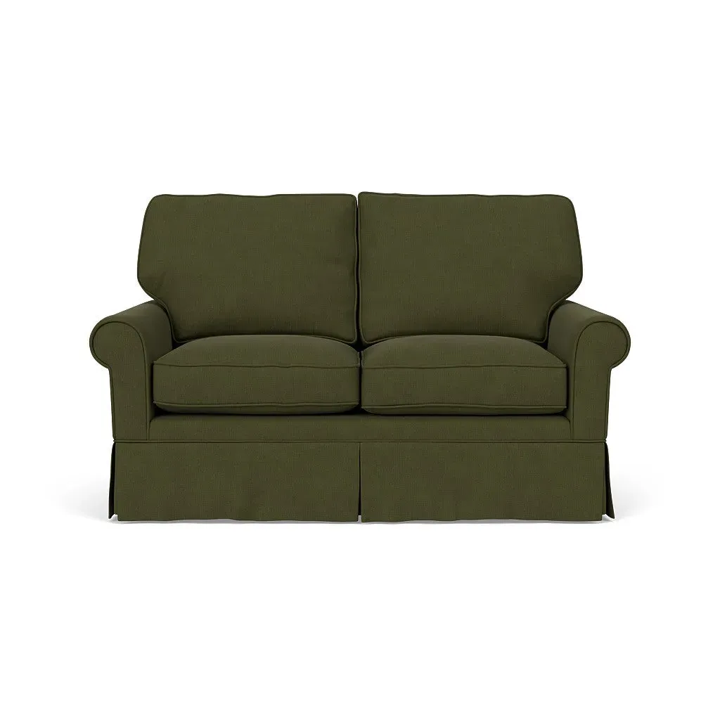 Inspired by timeless design, the Dawson sofa features a high back and arms, perfect for those who seek a little more support. Its tailored skirt covers the base and small plastic glides, enhancing its classic silhouette. Thoughtfully designed, this piece will effortlessly complement your home for years to come.
