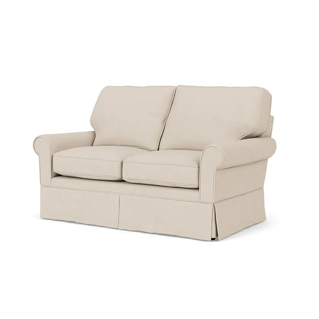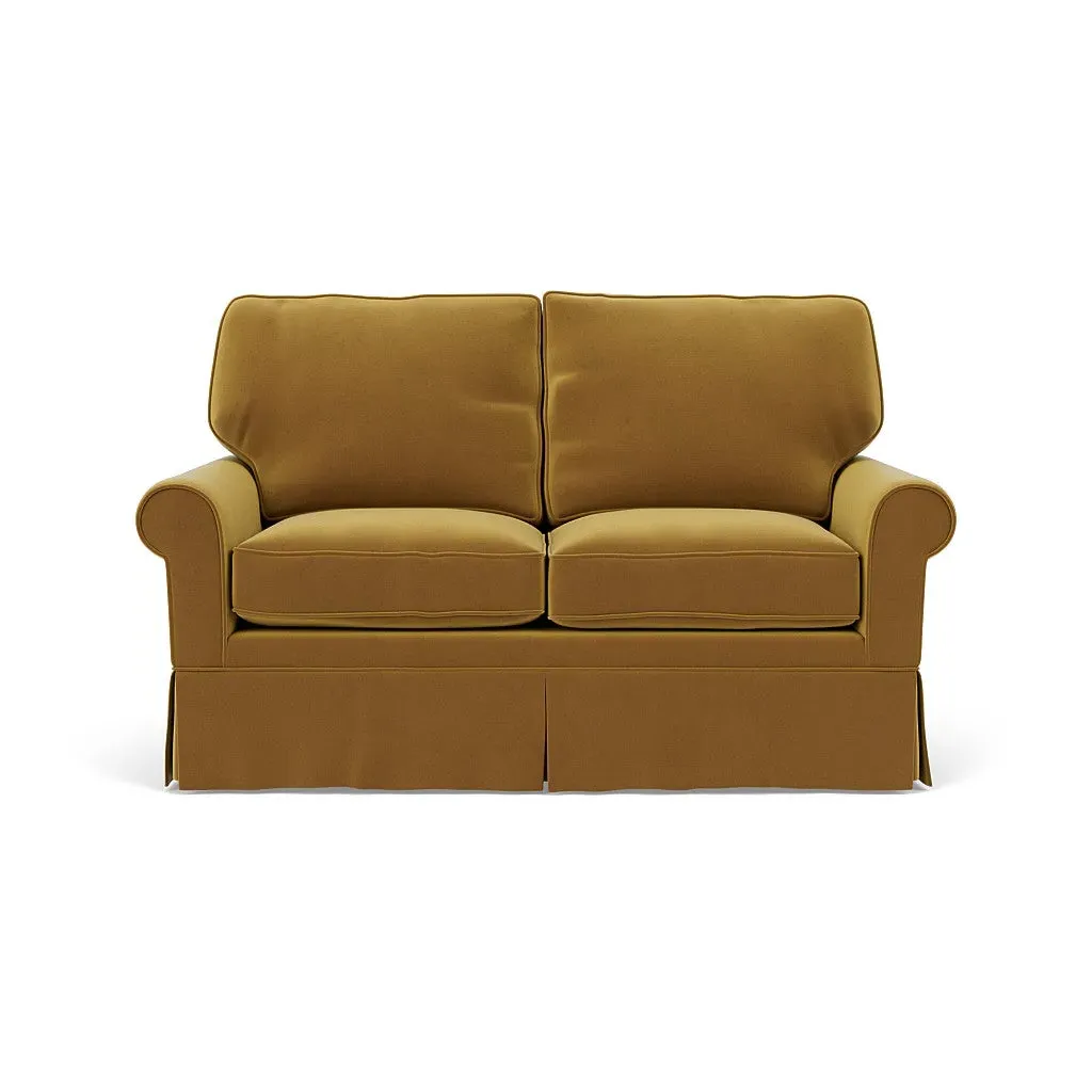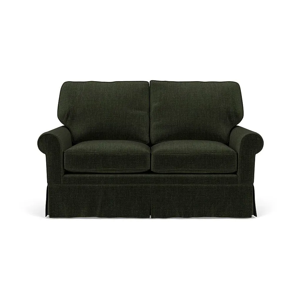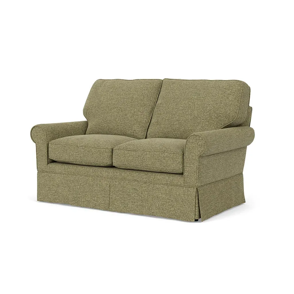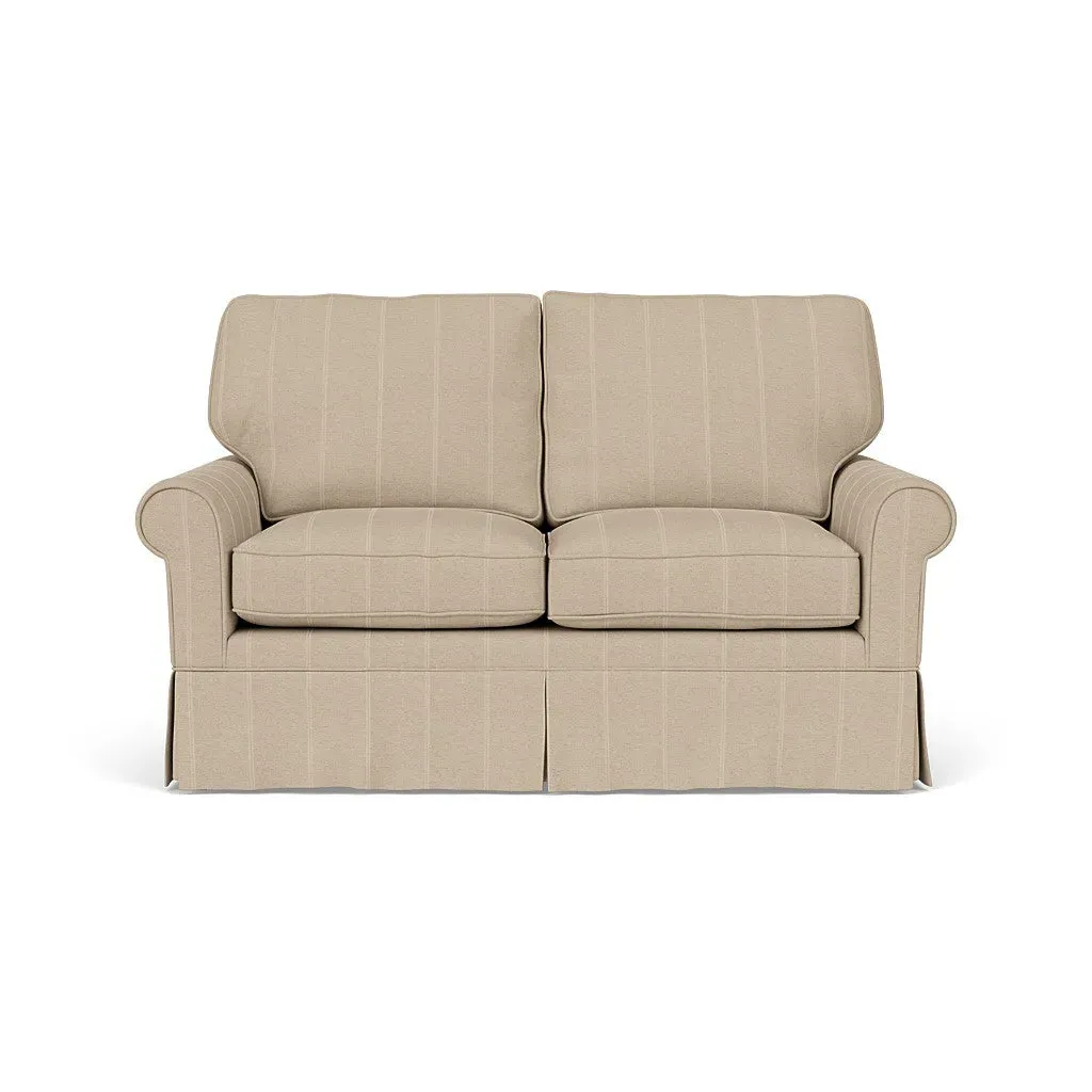 Inspired by timeless design, the Dawson sofa features a high back and arms, perfect for those who seek a little more support. Its tailored skirt covers the base and small plastic glides, enhancing its classic silhouette. Thoughtfully designed, this piece will effortlessly complement your home for years to come.