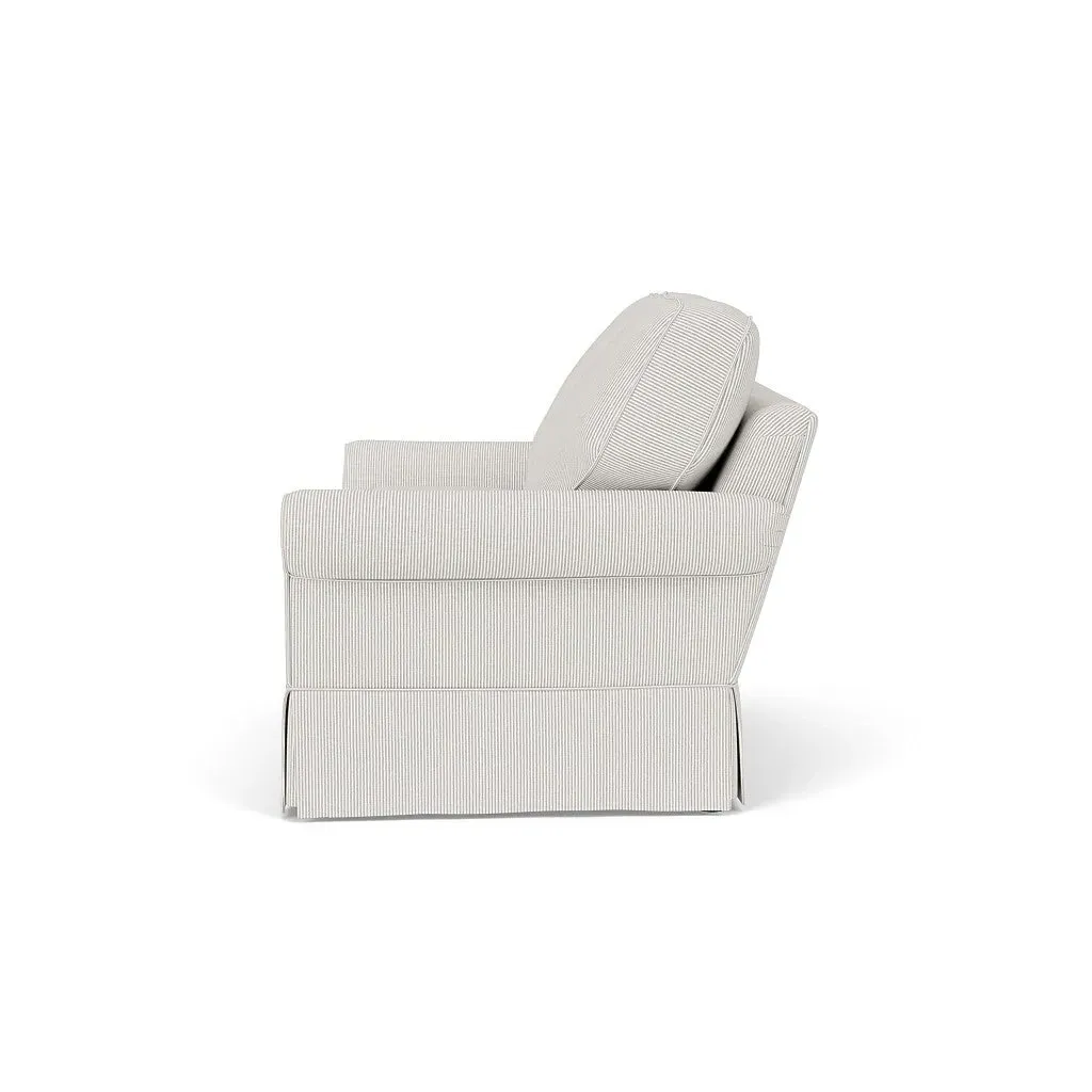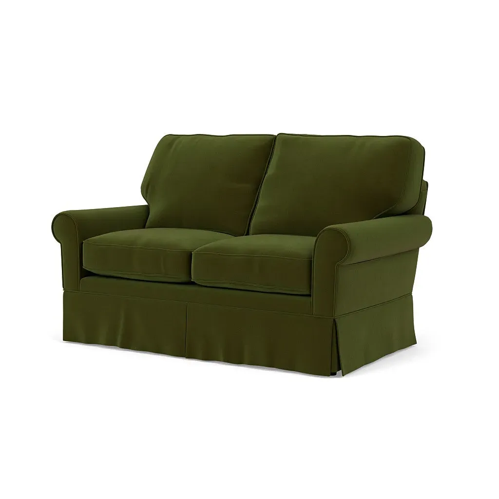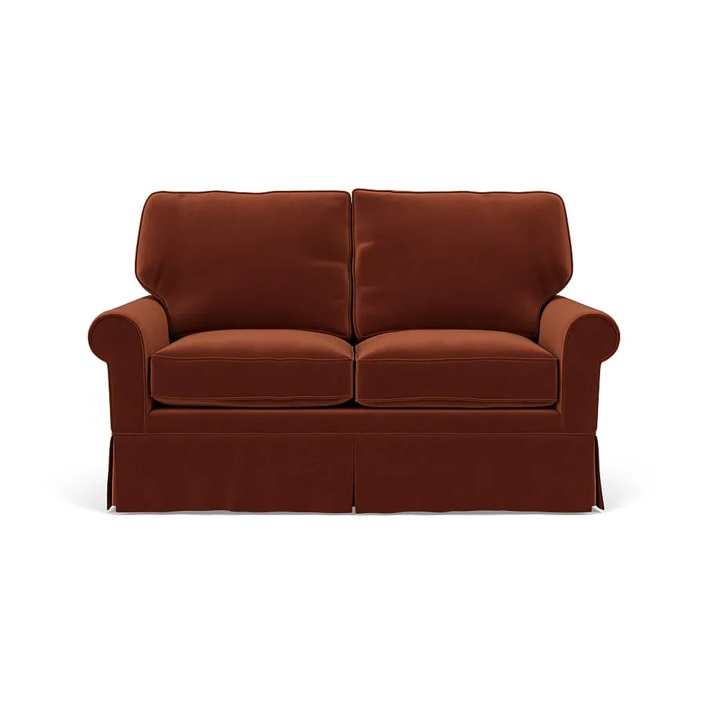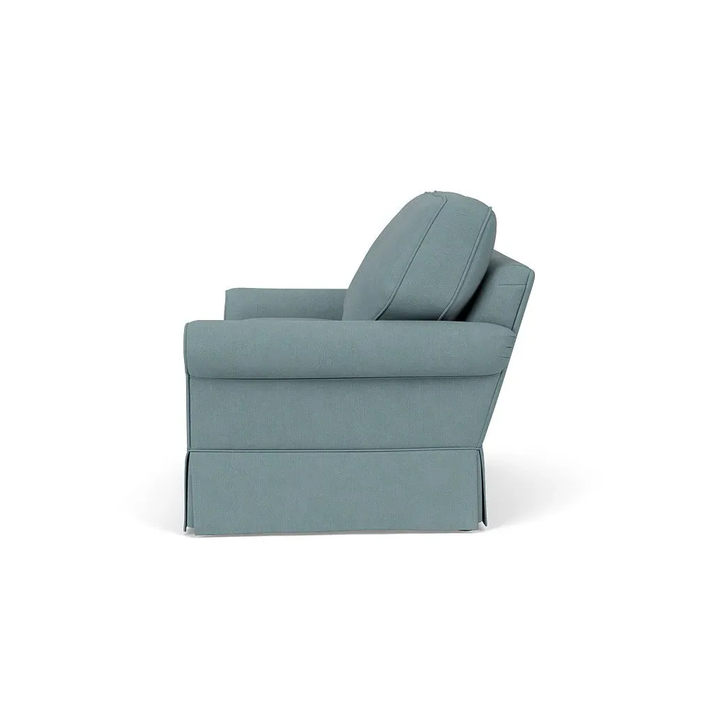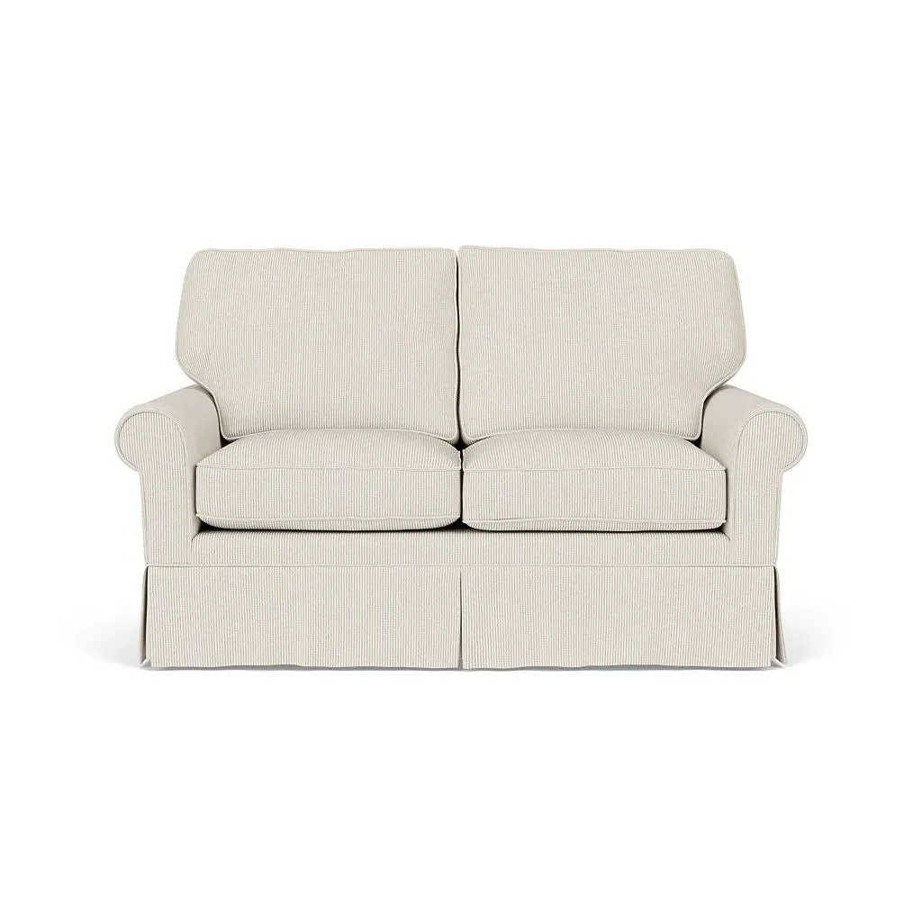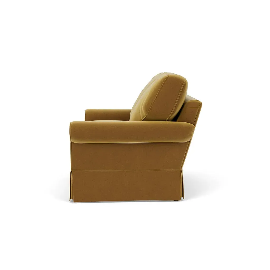 Inspired by timeless design, the Dawson sofa features a high back and arms, perfect for those who seek a little more support. Its tailored skirt covers the base and small plastic glides, enhancing its classic silhouette. Thoughtfully designed, this piece will effortlessly complement your home for years to come.