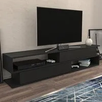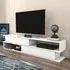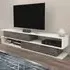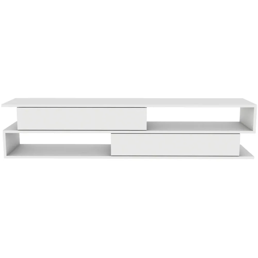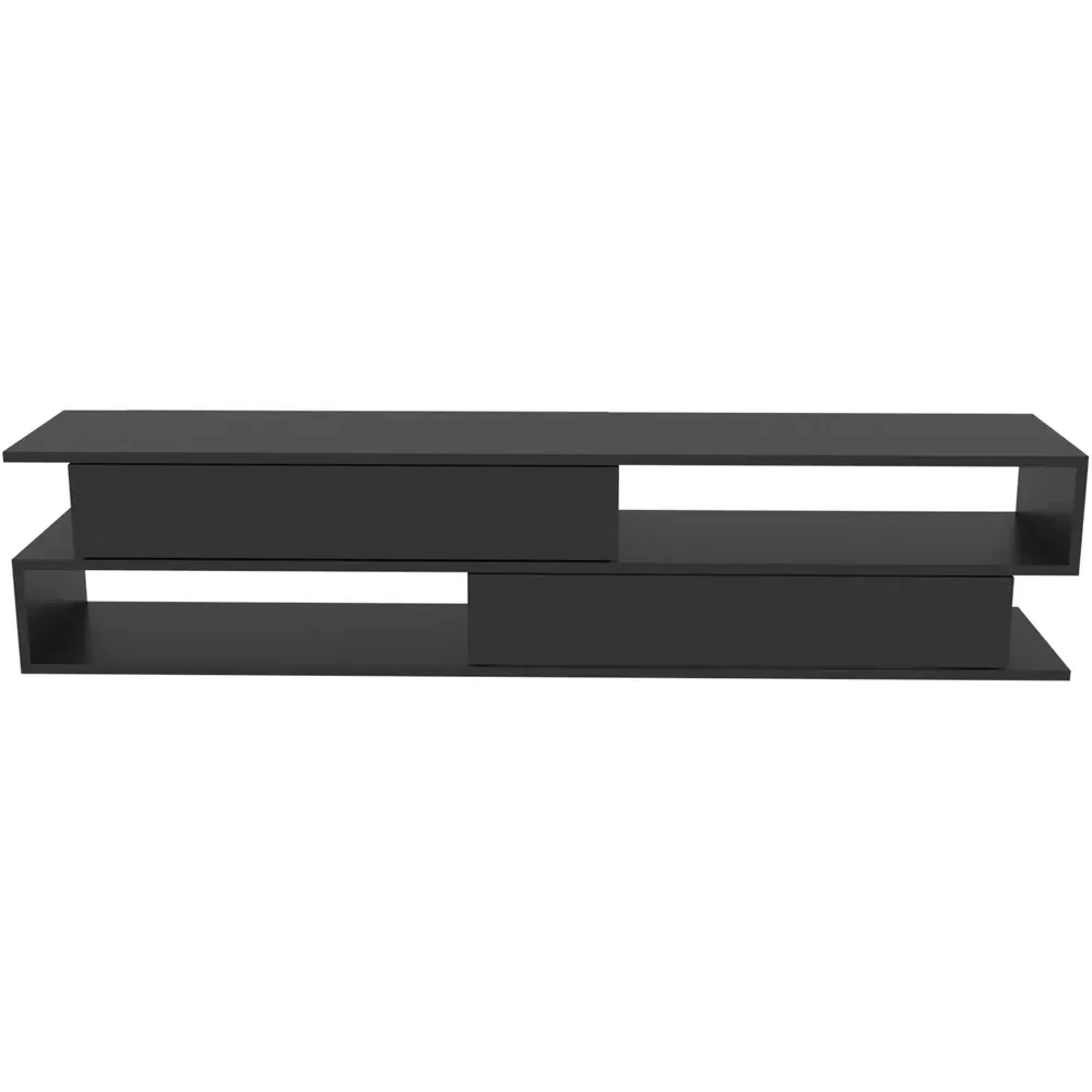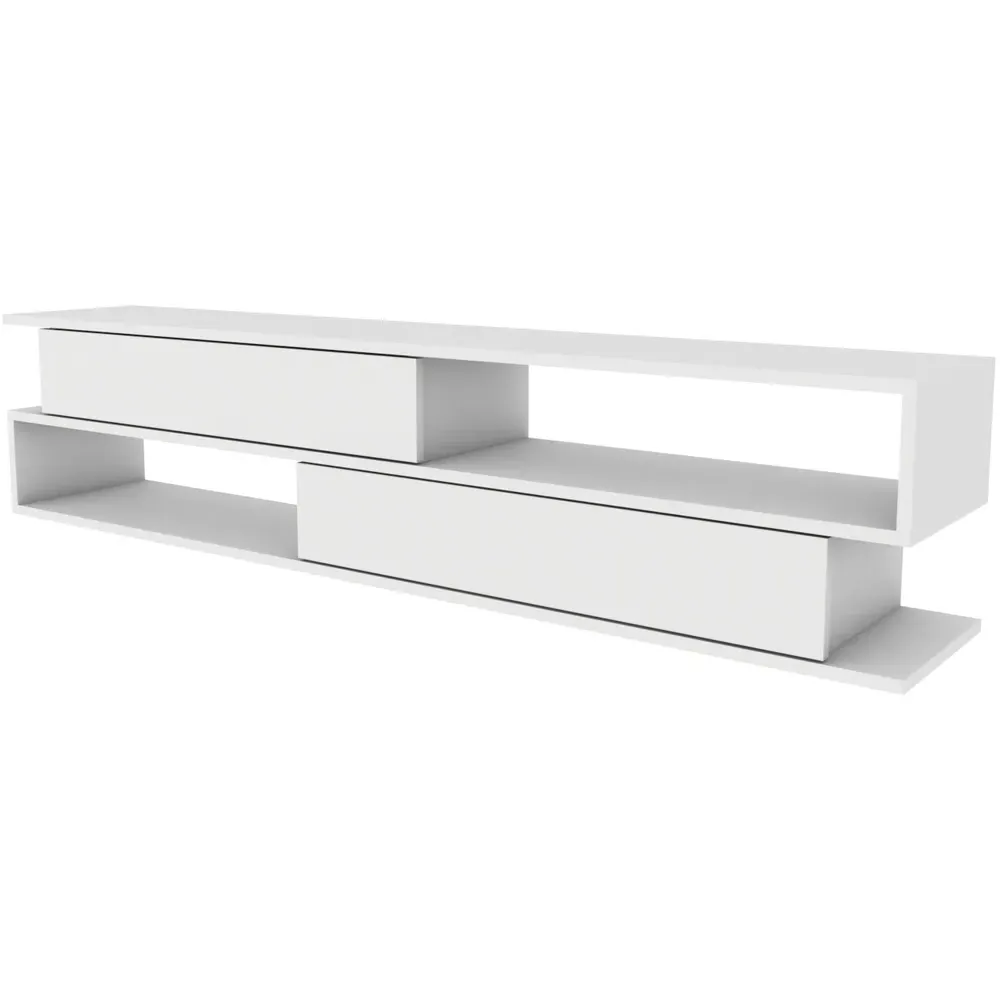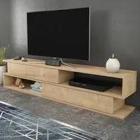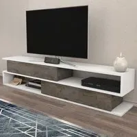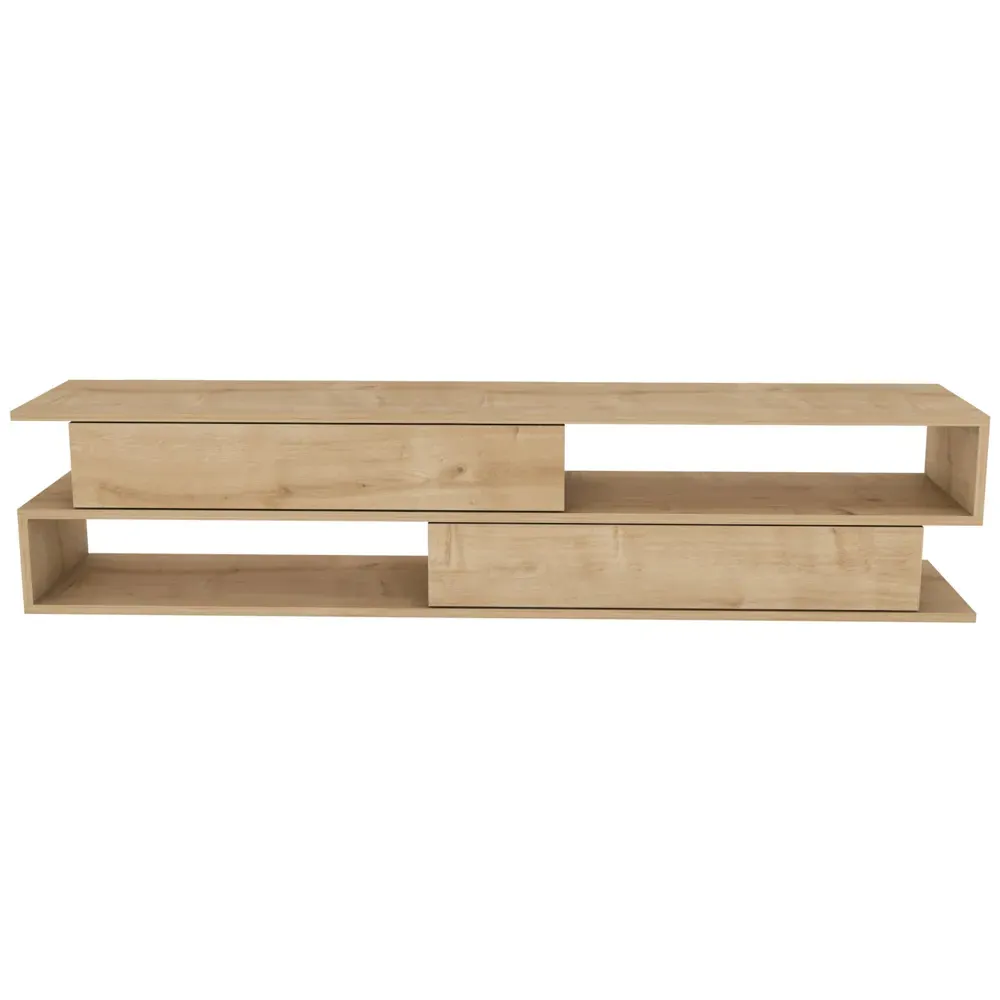The Cortez TV Unit features geometric design with practical storage solutions in its 160cm width. Its two open shelves and two closed compartments organize media equipment and accessories, while the melamine-coated particleboard construction with PVC edge banding provides reliable durability. The unit supports TVs up to 72 inches and comes with numbered parts for simple assembly.
