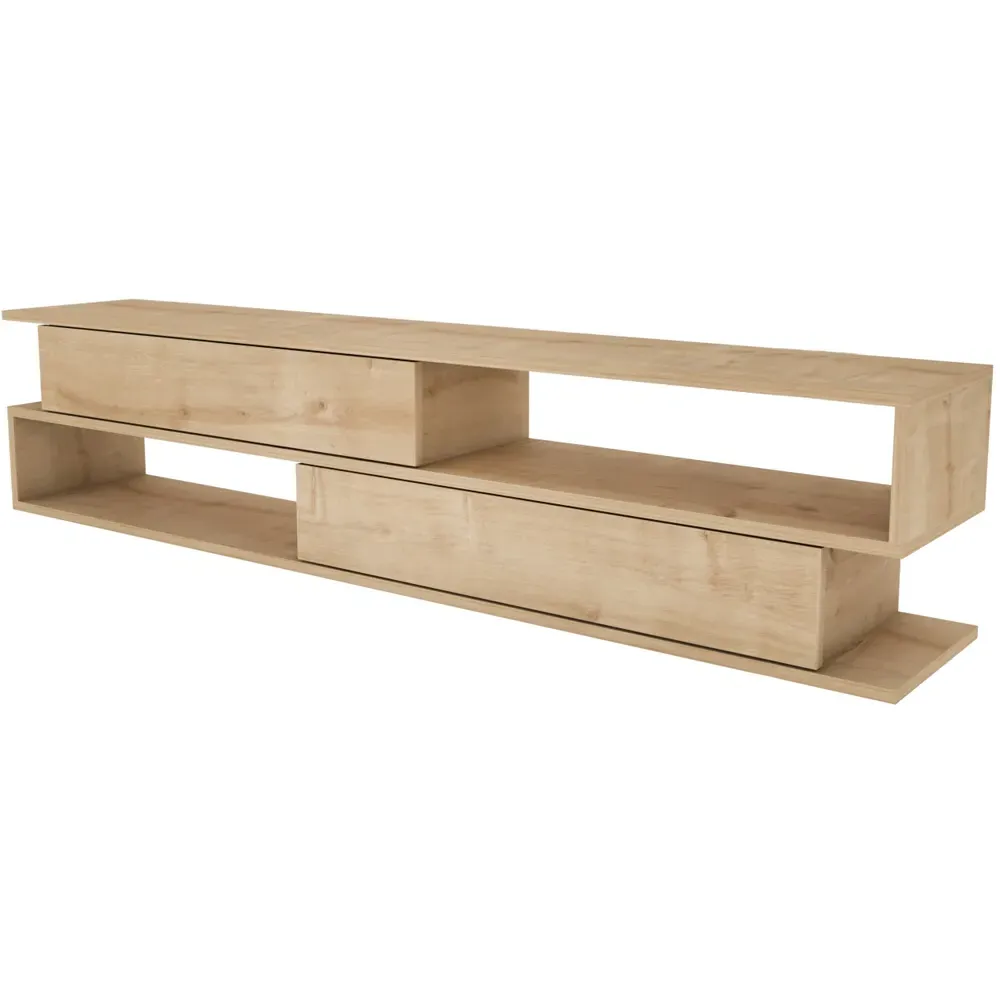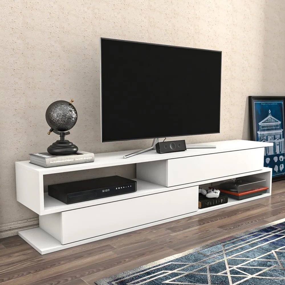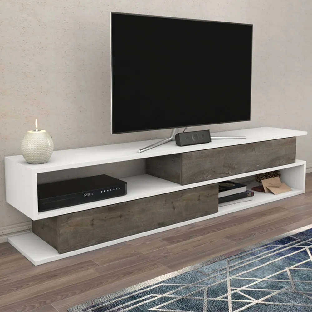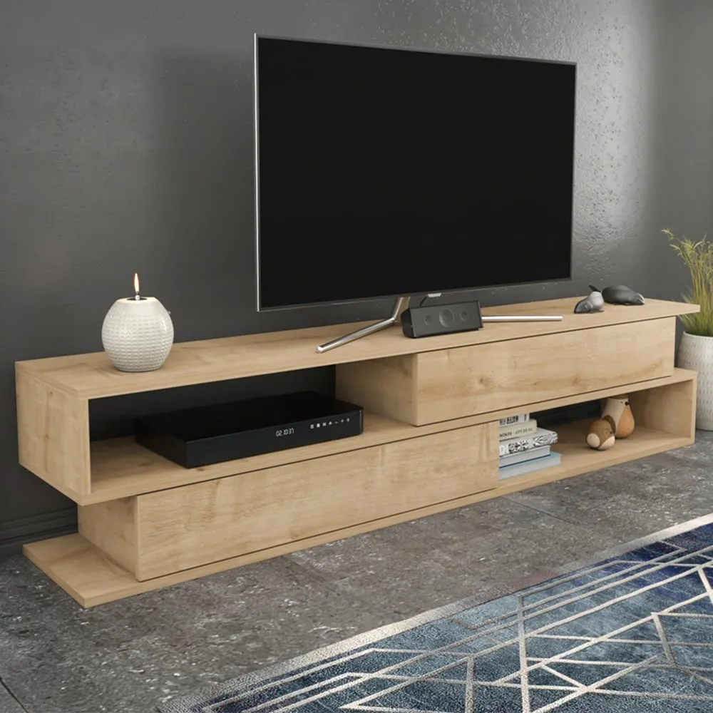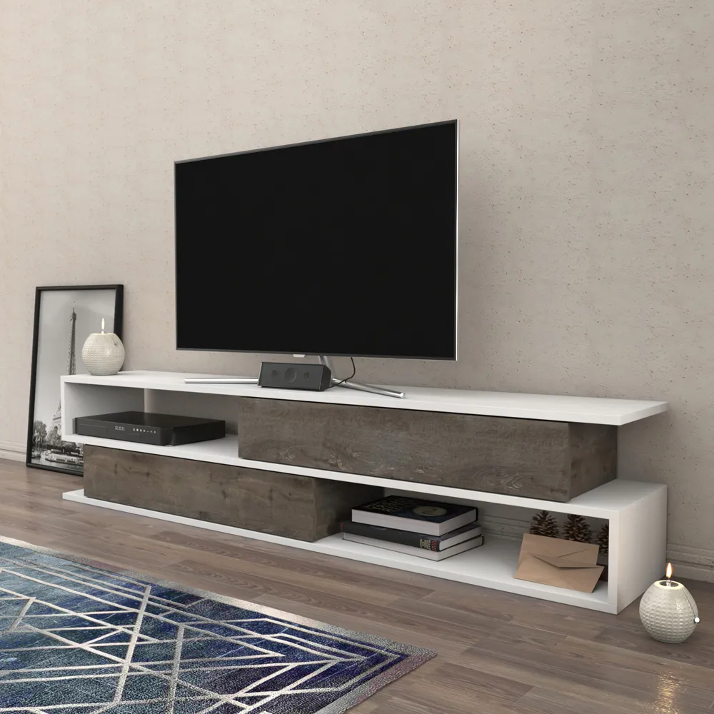 Cortez 160cm wide TV Stand and media console for TVs up to 72inch is charming and geometric design. With its innovative design and geometric style, Cortez is a unique product that your guests cannot take their eyes off. The cabinet is characterised by a combination of closed and open areas, meets your storage needs with two open compartments and two closed compartments for arranging DVD players, game consoles, media libraries, accessories, decorative elements and much more. With the help of the illustrated assembly instructions included in the scope of delivery, the structure is very nice and clear. The media stand is made of 18mm thick quality melamine coated particle board and banded with first-class PVC edge banding tape. It is manufactured using eco-friendly and health-friendly TSE certified materials. The product will be delivered to the customer in the original package as disassembled. It is designed to be assembled by the customer easily using simple household tools like a power drill. Assembly instruction and installation hardware are included in the package. For fast and error-free installation, product parts are numbered with stickers in accordance with the assembly guide.
