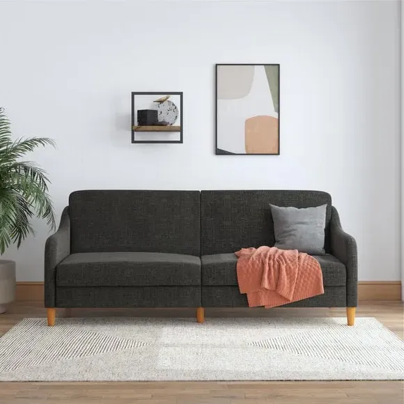 * Linen upholstered sofa bed* Elegant wing shaped arms and round wood legs* Independently encased coils and foam seating* Multi-position back* Push and pull converts from sofa, to lounger, to sleeper This sofa bed is the perfect place to unwind after a long day and offers space for you to relax or for guests to sleep, a must-have for those impromptu get togethers with friends and family. The multi-position back makes it easy to recline when you just want to chill out or prop yourself up, while the push/pull mechanism provides easy conversion from sofa/lounger to sleeper mode as needed.