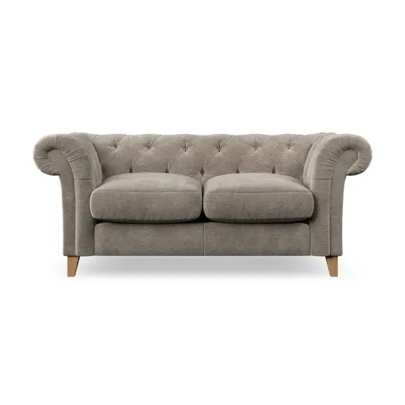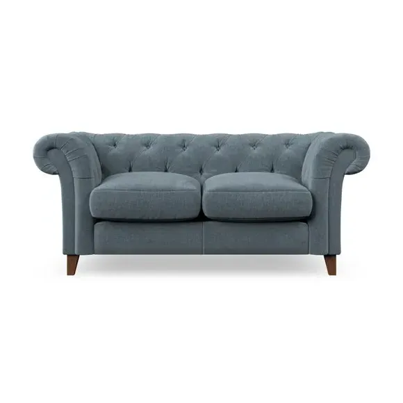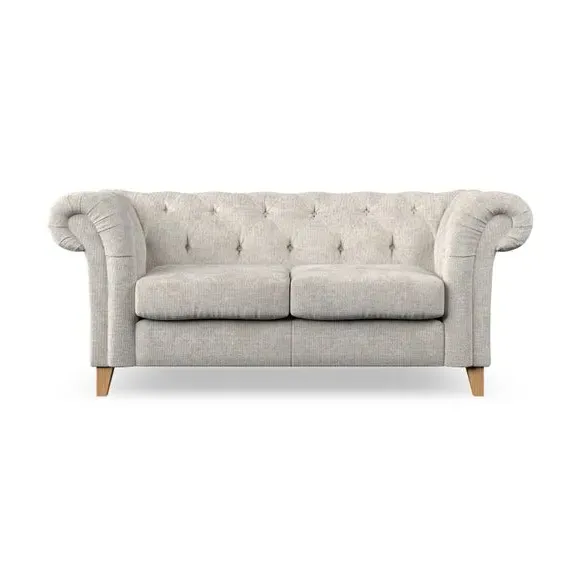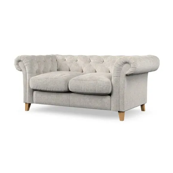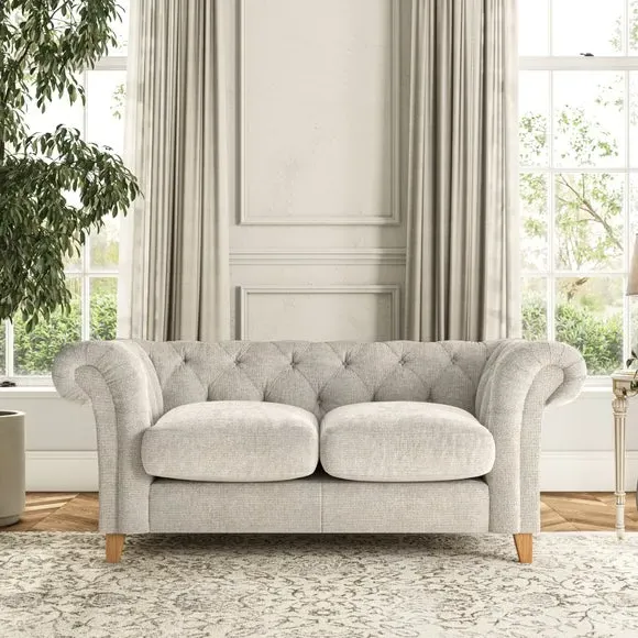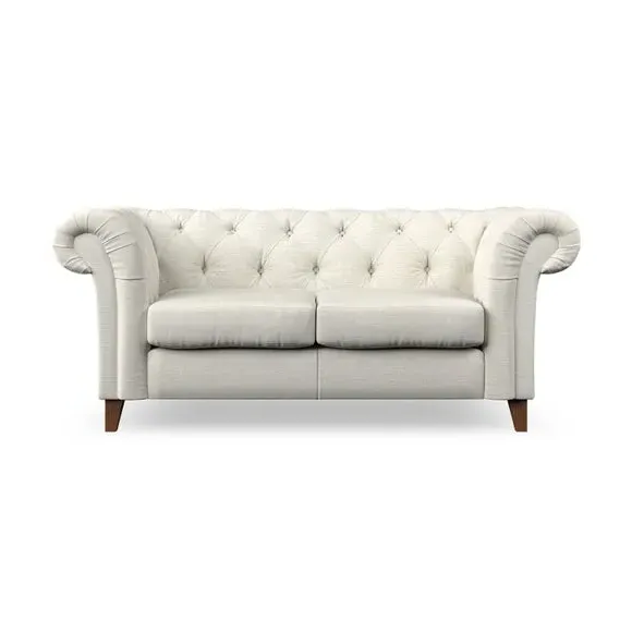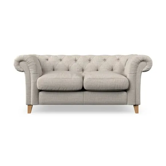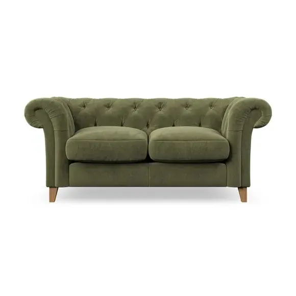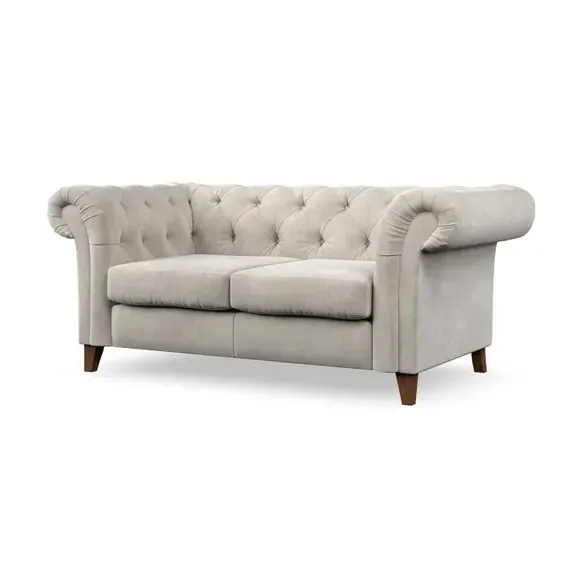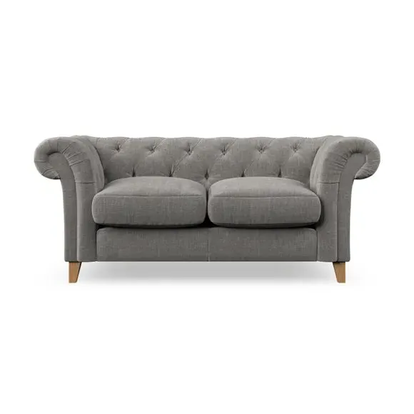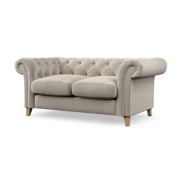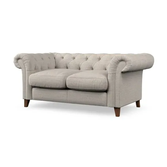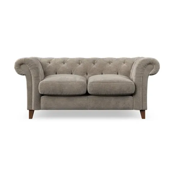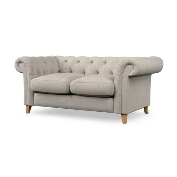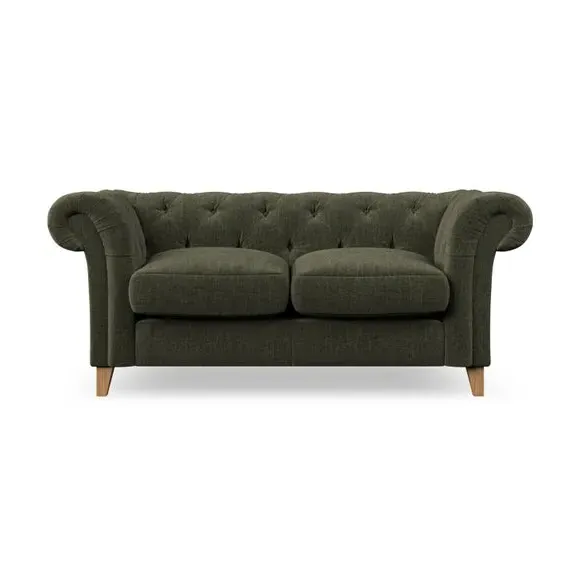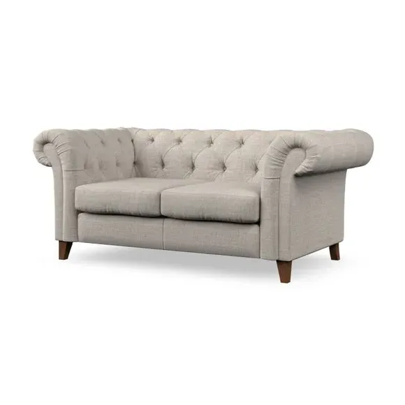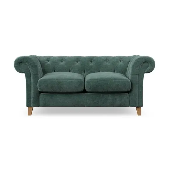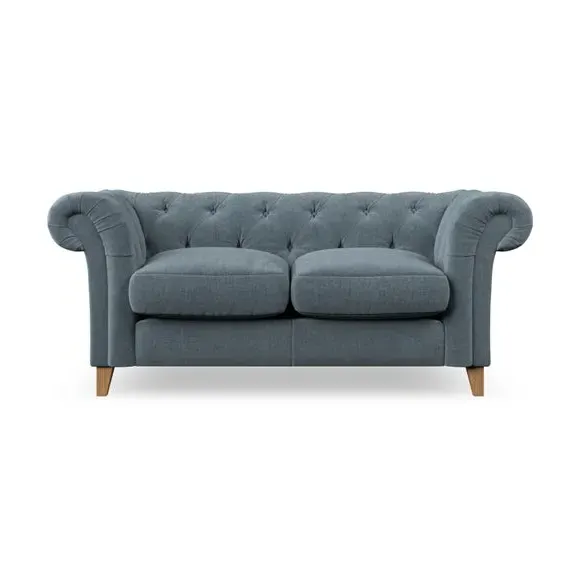 * Chesterfield style* Scroll arms* Serpentine seat springs* Choose your support, fabric and leg colour This sofa's traditional Chesterfield design, complete with generously scrolled arms and deep buttoning, brings an air of timeless elegance to your home. Built with longevity in mind, the sofa features serpentine seat springs for lasting comfort and a Superloop sprung back for excellent support. You can choose between a supportive foam seat for low-maintenance care or a more relaxed 'Qualofill Blue' fibre seat, crafted from 100% recycled polyester, including post-consumer and ocean plastics. The self-sewn seat cushions offer a more contemporary feel, while the hardwood legs, available in two finishes, provide a customisable and stylish touch, and are easy to fit. Made to order, the Pimlico Large 2 Seater Sofa can be tailored to your exact preferences, offering a wide selection of colours, fabrics, foot types, and fillings for a truly personalised and comfortable piece.