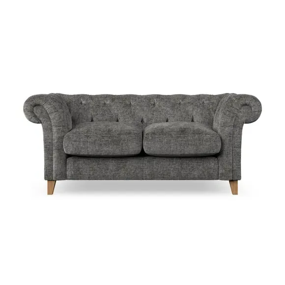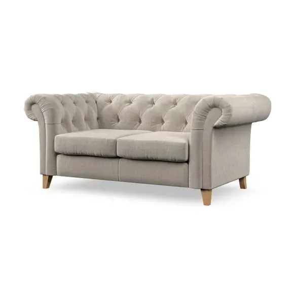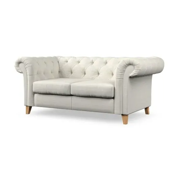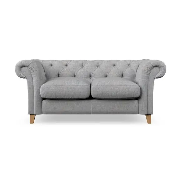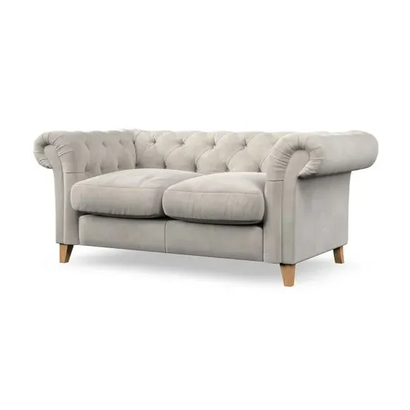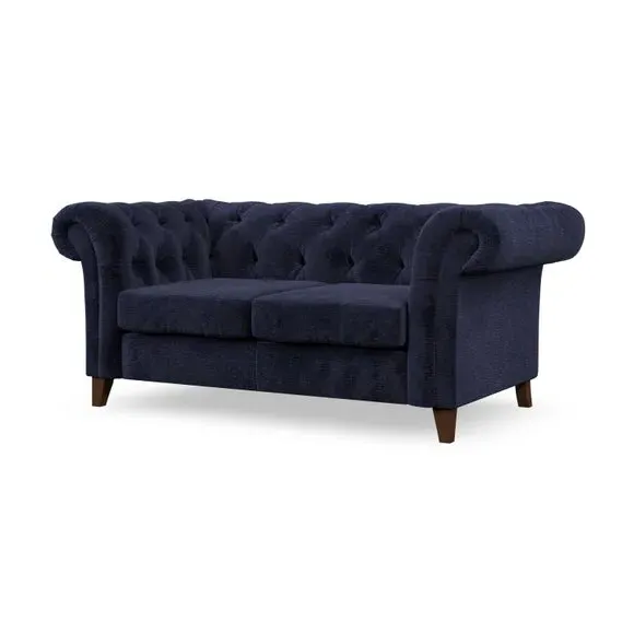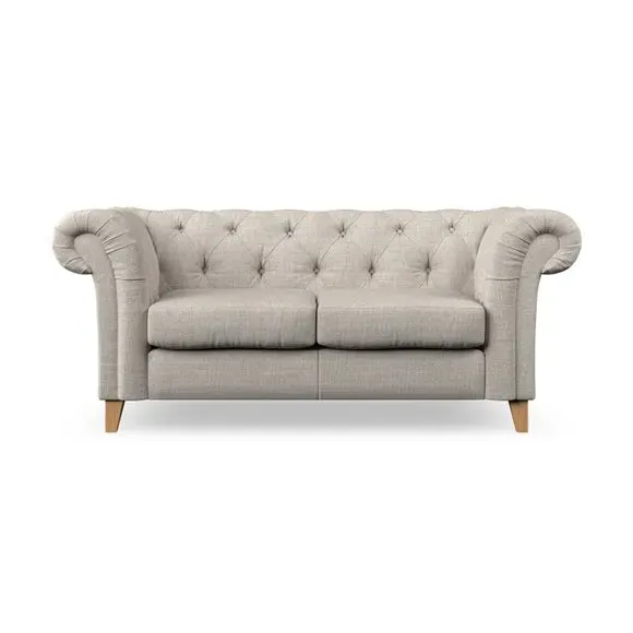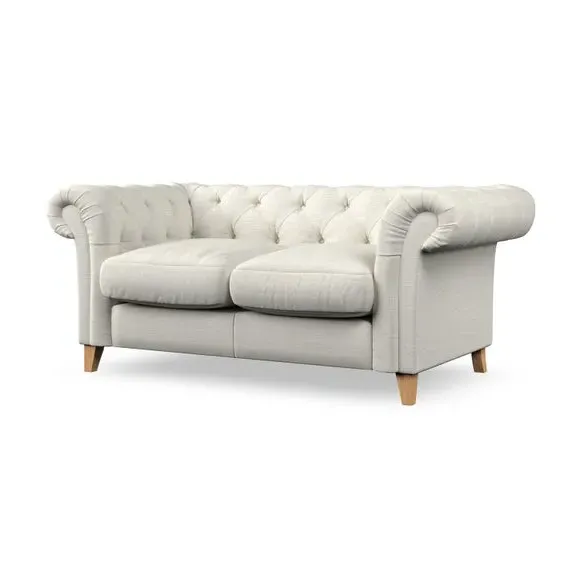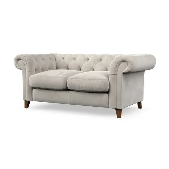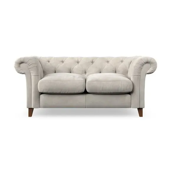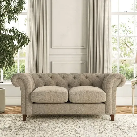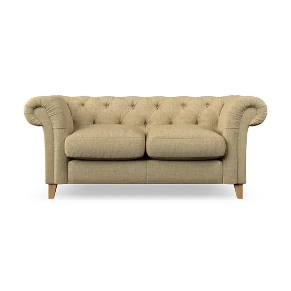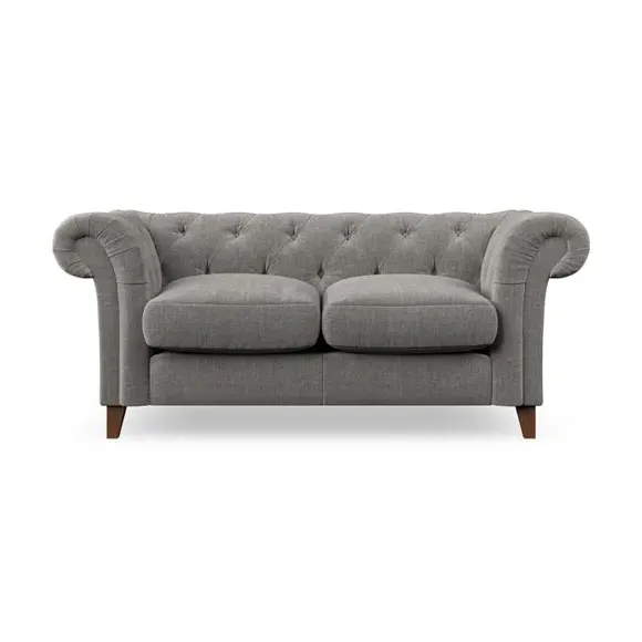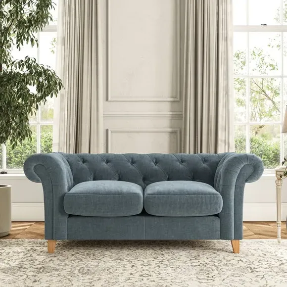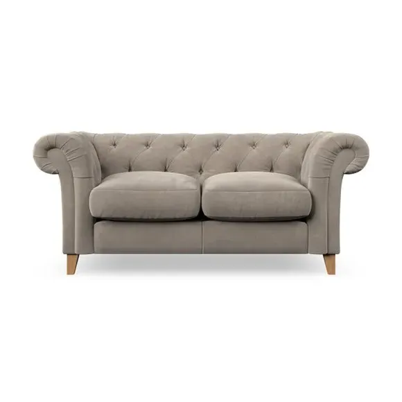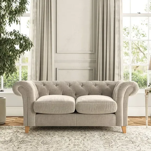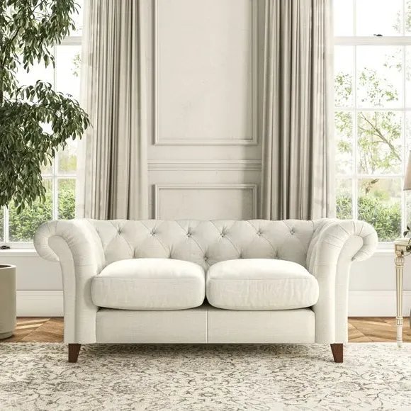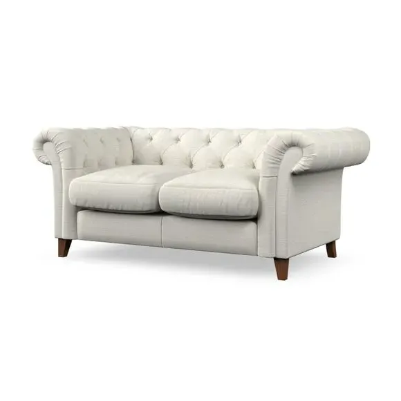 * Chesterfield style* Scroll arms* Serpentine seat springs* Choose your support, fabric and leg colour This sofa's traditional Chesterfield design, complete with generously scrolled arms and deep buttoning, brings an air of timeless elegance to your home. Built with longevity in mind, the sofa features serpentine seat springs for lasting comfort and a Superloop sprung back for excellent support. You can choose between a supportive foam seat for low-maintenance care or a more relaxed 'Qualofill Blue' fibre seat, crafted from 100% recycled polyester, including post-consumer and ocean plastics. The self-sewn seat cushions offer a more contemporary feel, while the hardwood legs, available in two finishes, provide a customisable and stylish touch, and are easy to fit. Made to order, the Pimlico Large 2 Seater Sofa can be tailored to your exact preferences, offering a wide selection of colours, fabrics, foot types, and fillings for a truly personalised and comfortable piece.