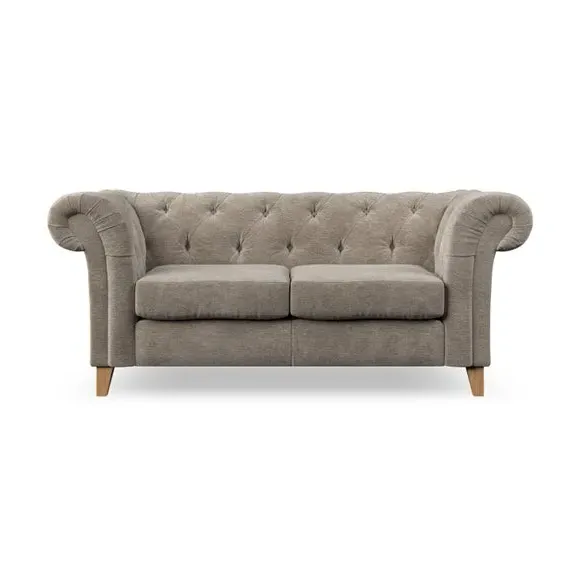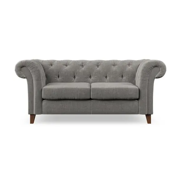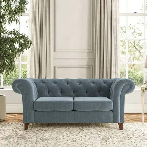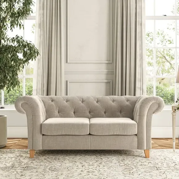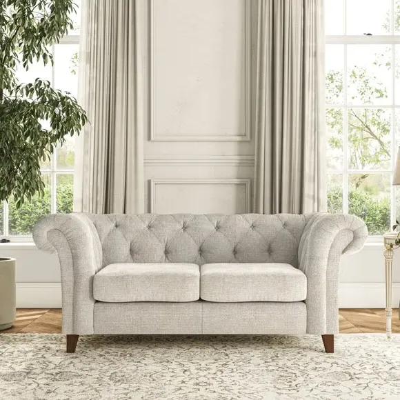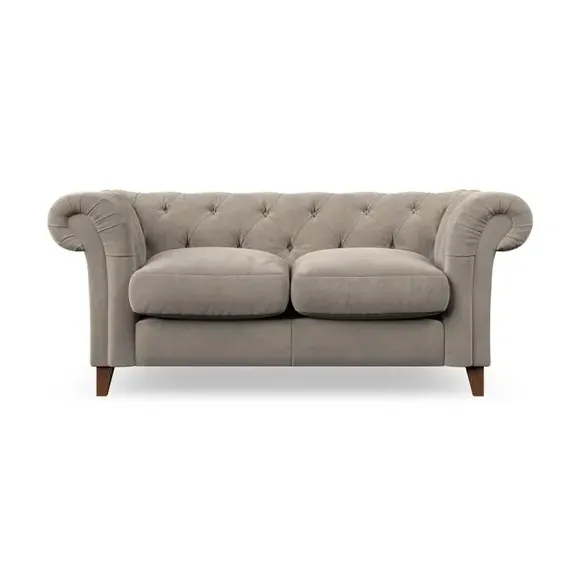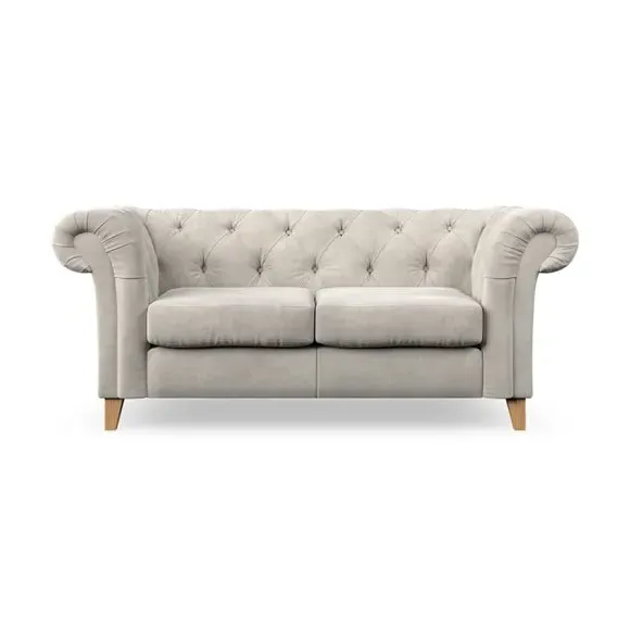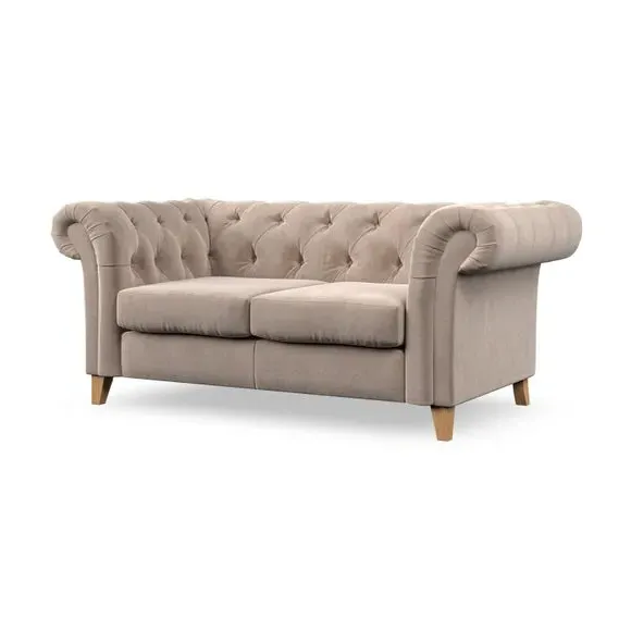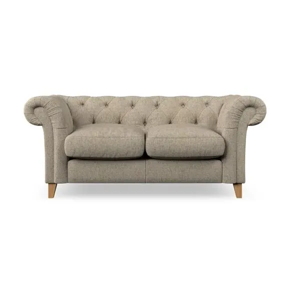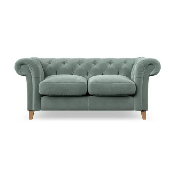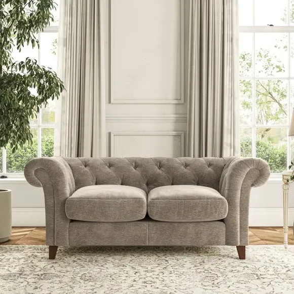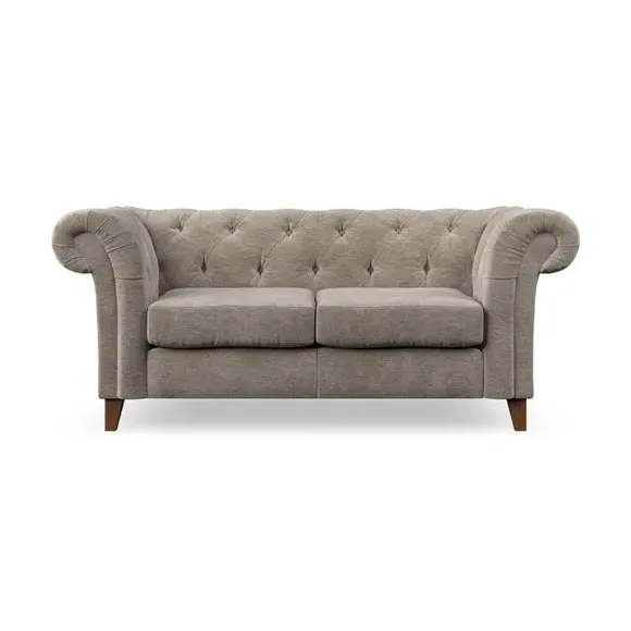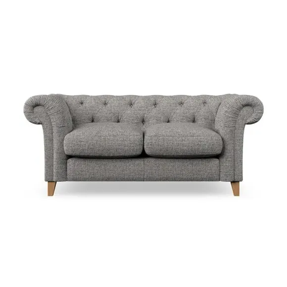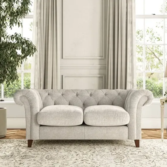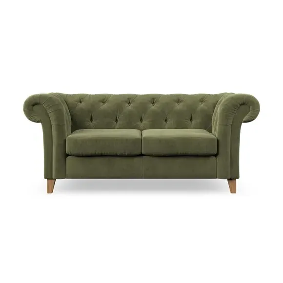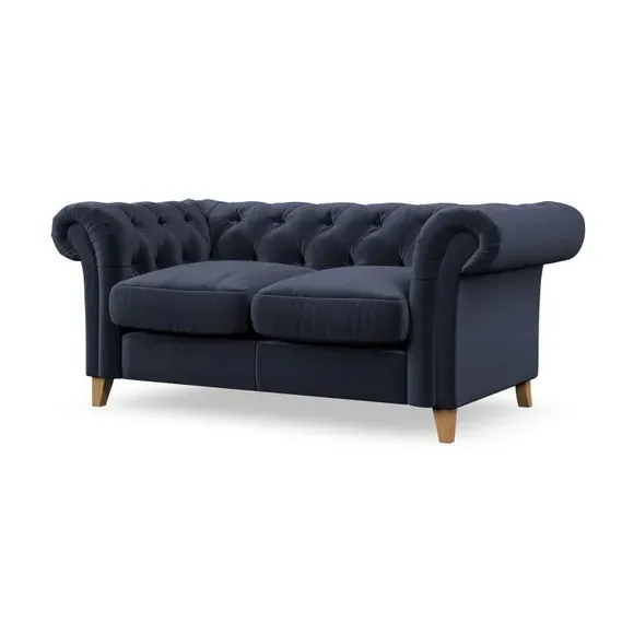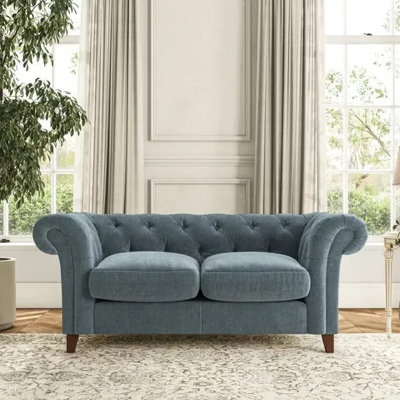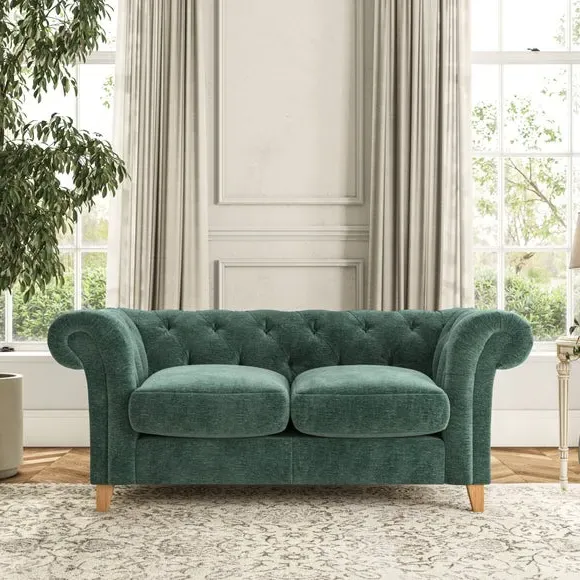 * Chesterfield style* Scroll arms* Serpentine seat springs* Choose your support, fabric and leg colour This sofa's traditional Chesterfield design, complete with generously scrolled arms and deep buttoning, brings an air of timeless elegance to your home. Built with longevity in mind, the sofa features serpentine seat springs for lasting comfort and a Superloop sprung back for excellent support. You can choose between a supportive foam seat for low-maintenance care or a more relaxed 'Qualofill Blue' fibre seat, crafted from 100% recycled polyester, including post-consumer and ocean plastics. The self-sewn seat cushions offer a more contemporary feel, while the hardwood legs, available in two finishes, provide a customisable and stylish touch, and are easy to fit. Made to order, the Pimlico Large 2 Seater Sofa can be tailored to your exact preferences, offering a wide selection of colours, fabrics, foot types, and fillings for a truly personalised and comfortable piece.