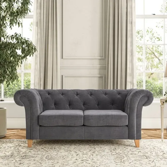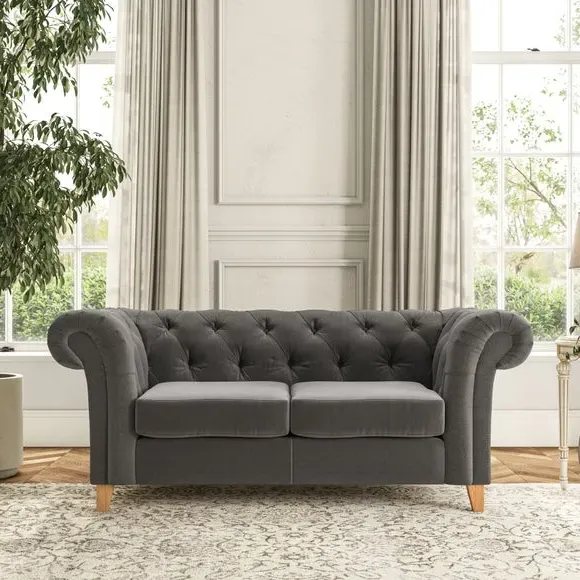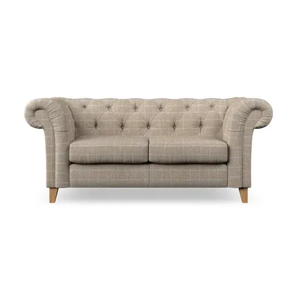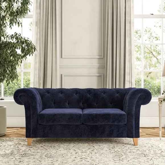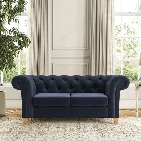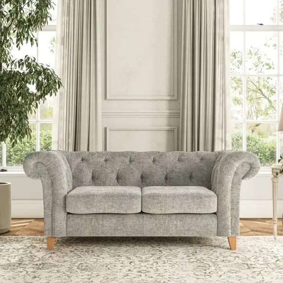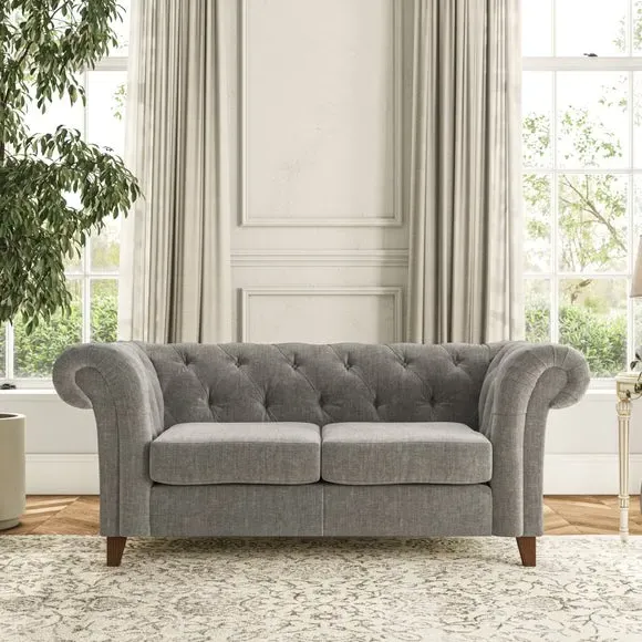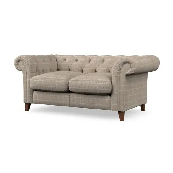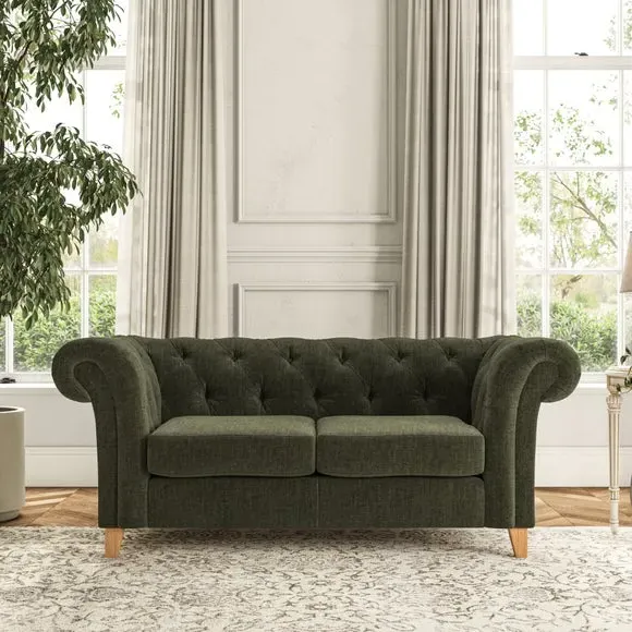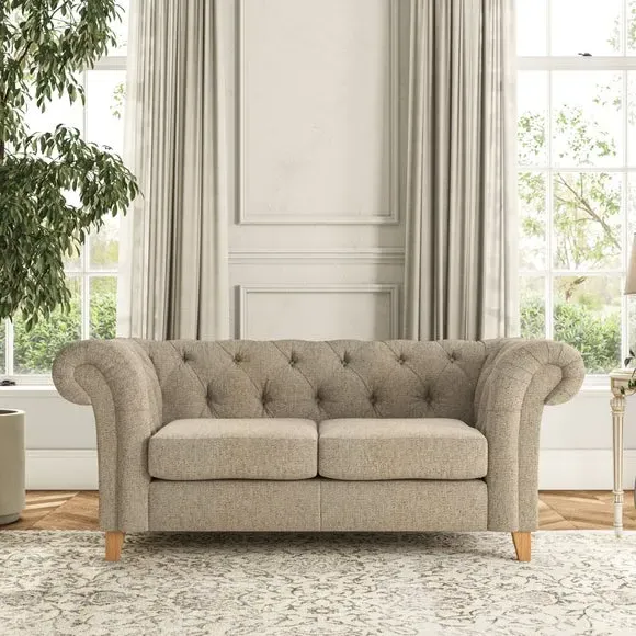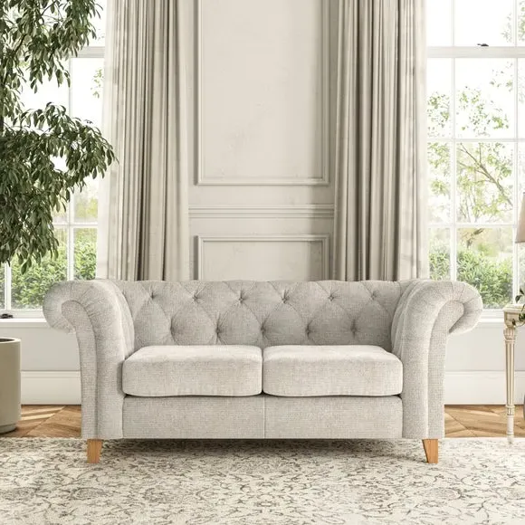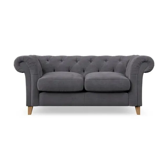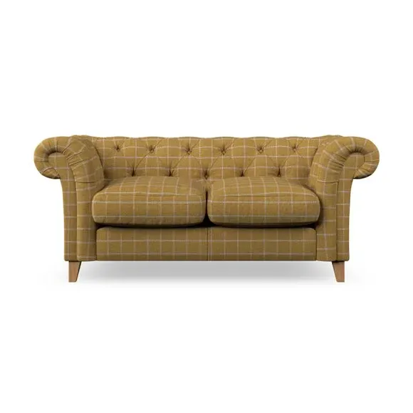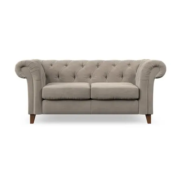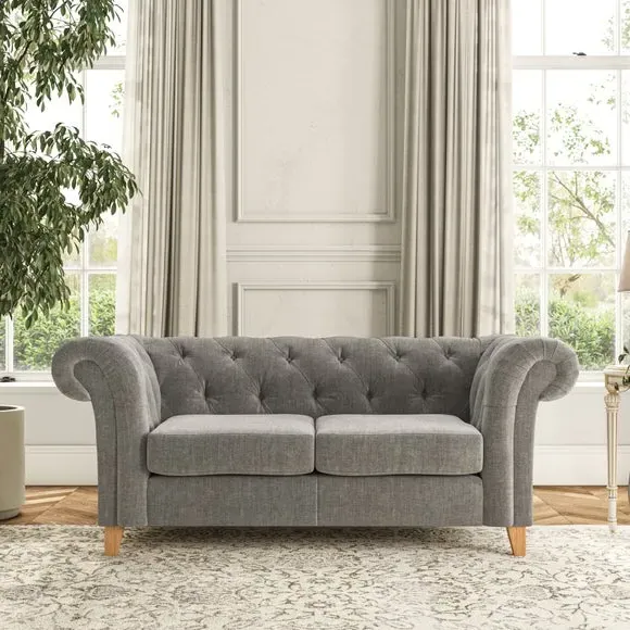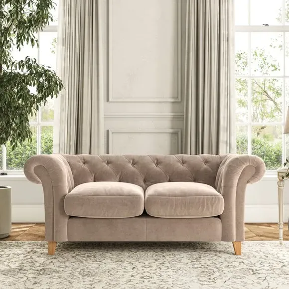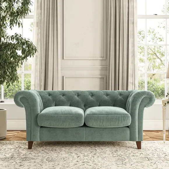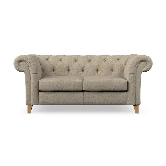 * Chesterfield style* Scroll arms* Serpentine seat springs* Choose your support, fabric and leg colour This sofa's traditional Chesterfield design, complete with generously scrolled arms and deep buttoning, brings an air of timeless elegance to your home. Built with longevity in mind, the sofa features serpentine seat springs for lasting comfort and a Superloop sprung back for excellent support. You can choose between a supportive foam seat for low-maintenance care or a more relaxed 'Qualofill Blue' fibre seat, crafted from 100% recycled polyester, including post-consumer and ocean plastics. The self-sewn seat cushions offer a more contemporary feel, while the hardwood legs, available in two finishes, provide a customisable and stylish touch, and are easy to fit. Made to order, the Pimlico Large 2 Seater Sofa can be tailored to your exact preferences, offering a wide selection of colours, fabrics, foot types, and fillings for a truly personalised and comfortable piece.