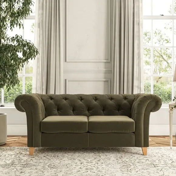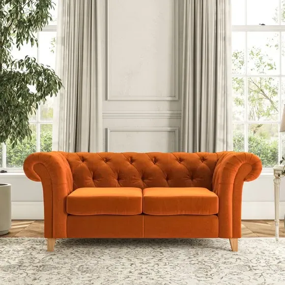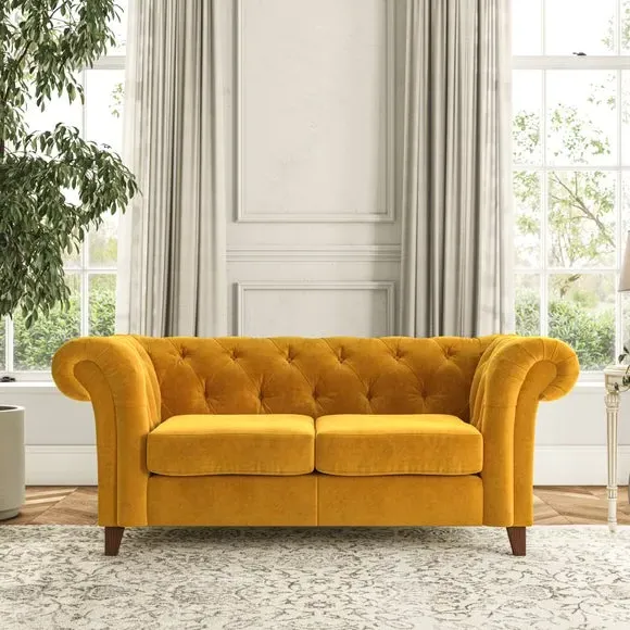 2-Seater Chesterfield Sofa - Amber, Velvet
