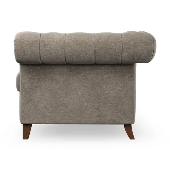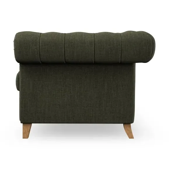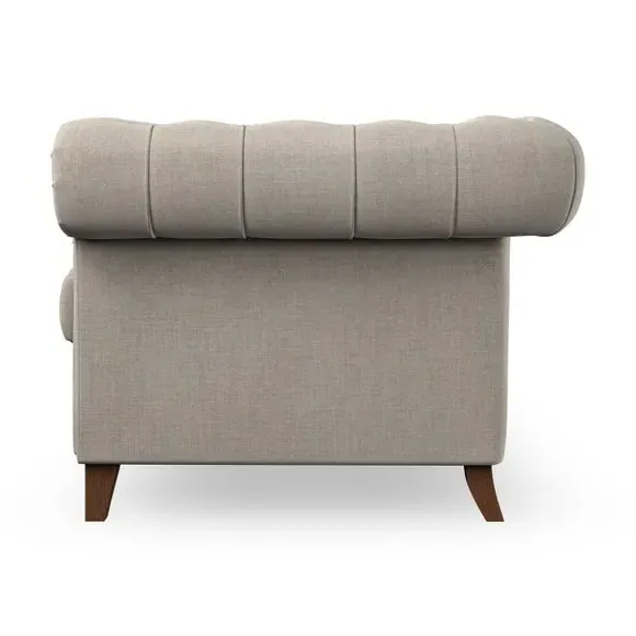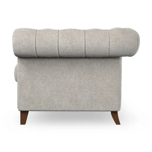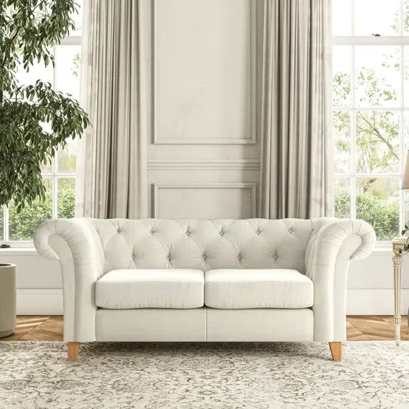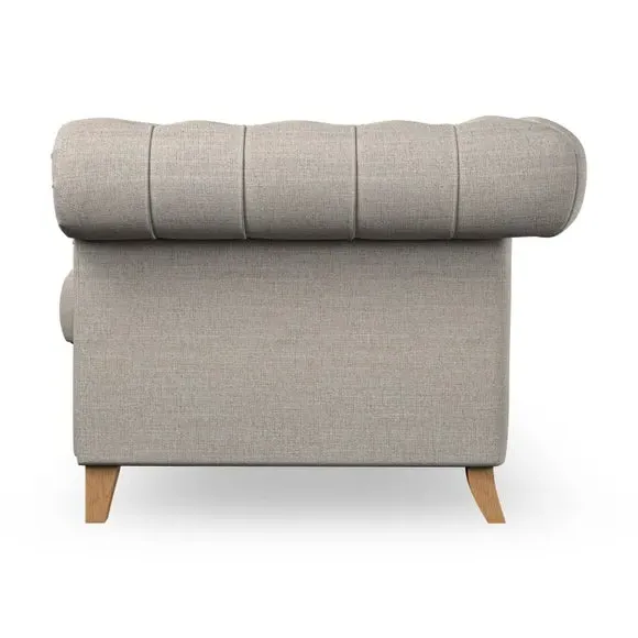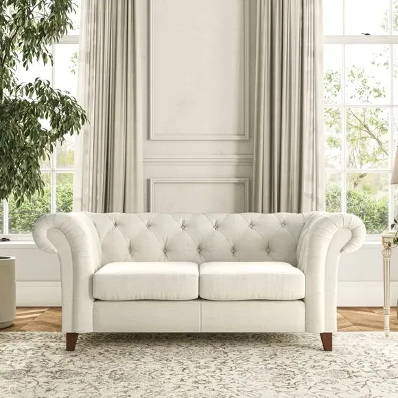 The Chesterfield sofa combines traditional design with its generously scrolled arms and deep buttoning detail. Its serpentine seat springs provide lasting comfort, while the Superloop sprung back ensures excellent support. The self-sewn seat cushions offer a contemporary feel, and the hardwood legs add durability with customisable finishes.