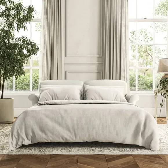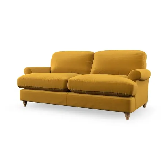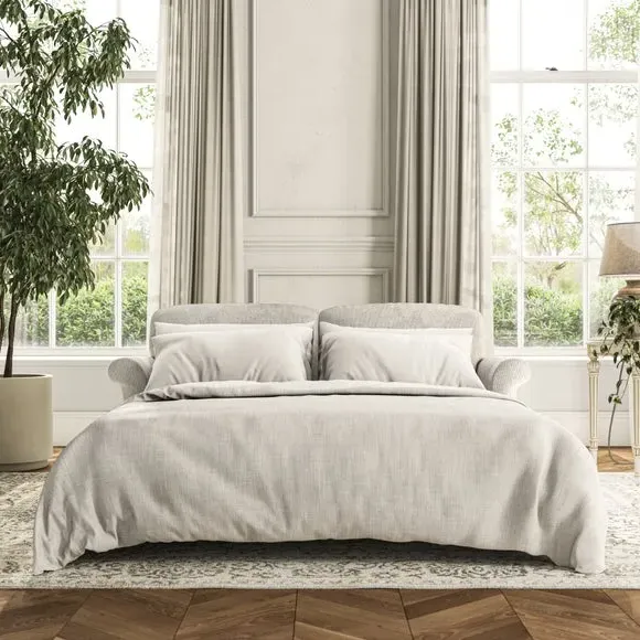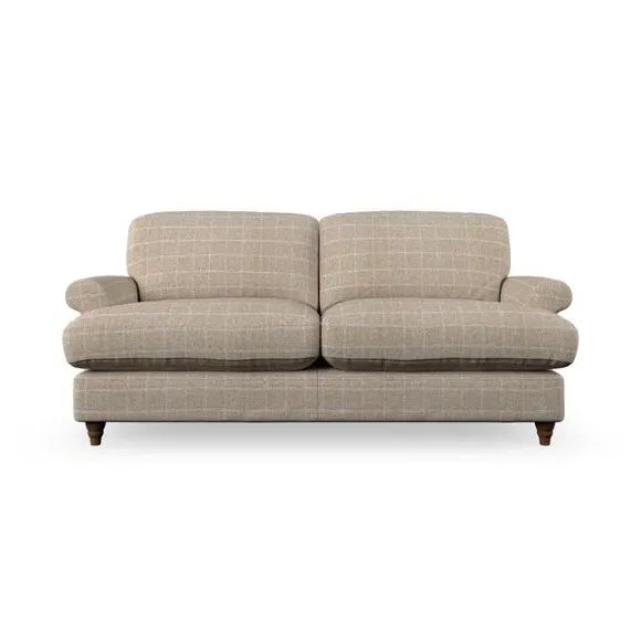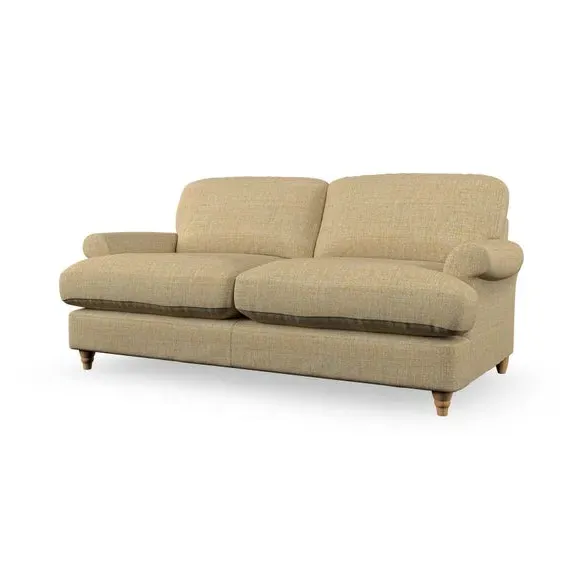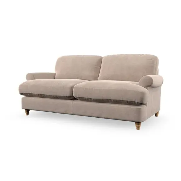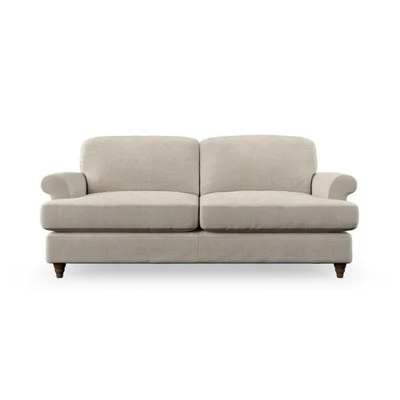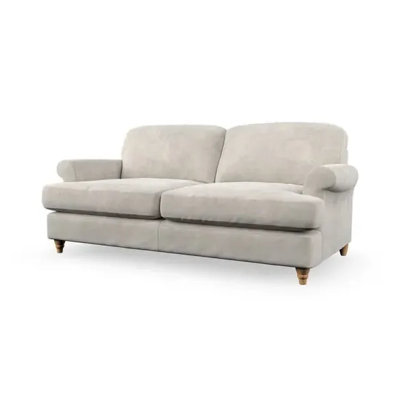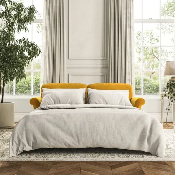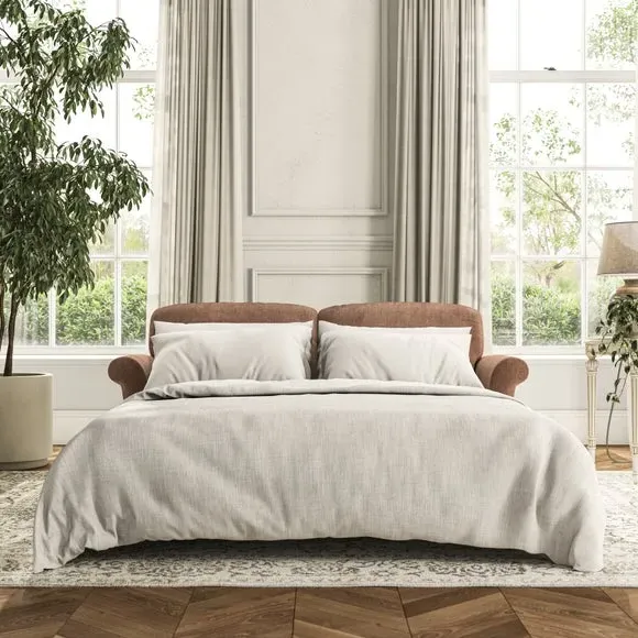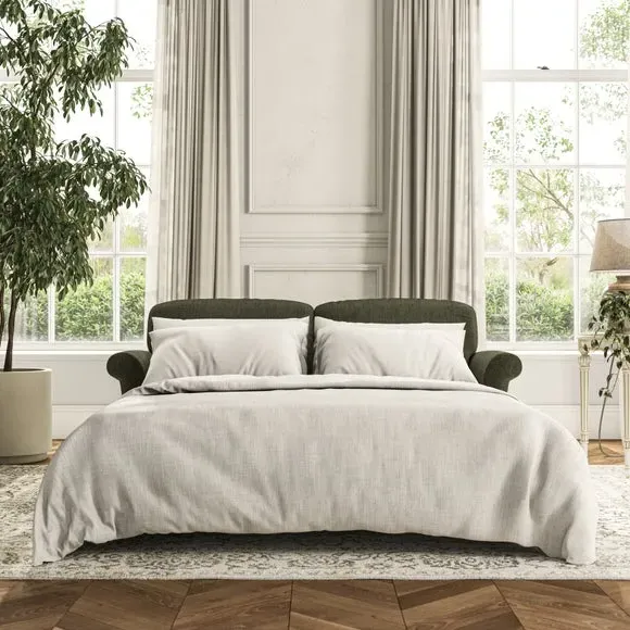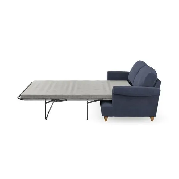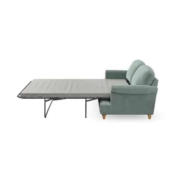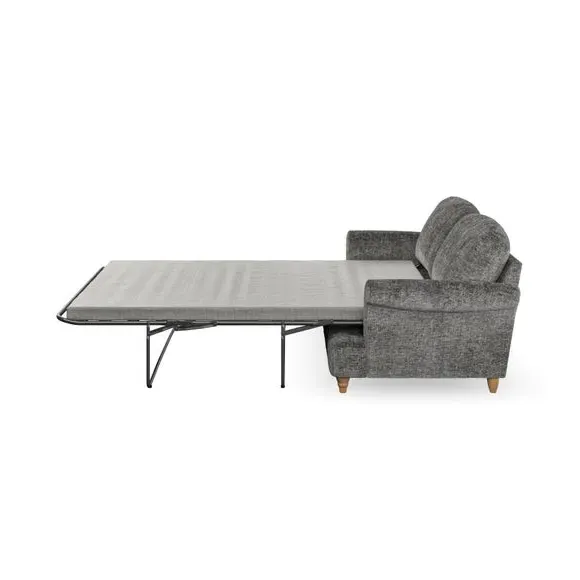 The sofa bed combines classic design with practical functionality, featuring elegant scroll arms and lugged seat cushions. Its serpentine seat springs provide reliable support, while the fibre-filled back cushions offer comfortable seating. The hidden bed mechanism converts easily for guest sleeping, and the customizable fabric options allow personal styling preferences.