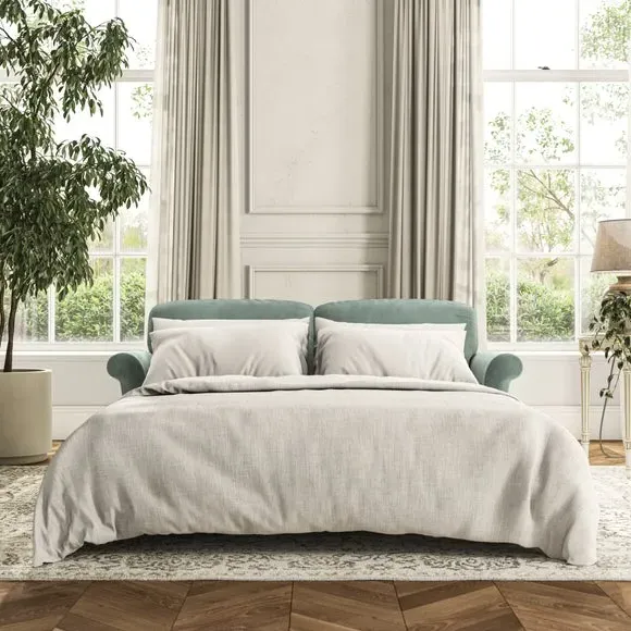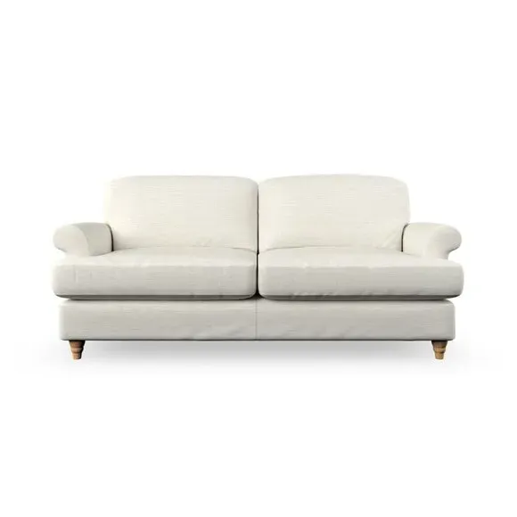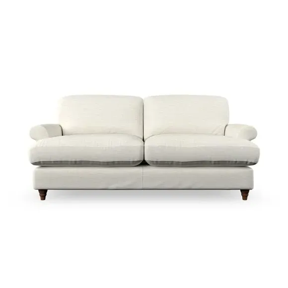 * Elegant, classic design* Scroll Arms* Lugged seat cushion* Serpentine seat springs* Choose your orientation, support, fabric and leg colour The Evie 2 Seater Sofa Bed combines style with practicality, making it a versatile choice for any home. With its elegant slender scroll arms and neat lugged seat cushions, it offers a refined look, while the hidden sofa bed provides a convenient sleeping solution for guests. The fibre-filled back cushions offer supportive comfort for everyday seating, and the sofa bed mechanism is easy to use when needed. Customise it with your preferred fabric, colour, cushion filling, and leg finish.