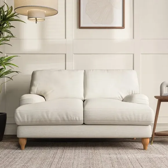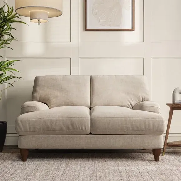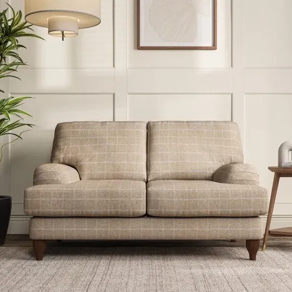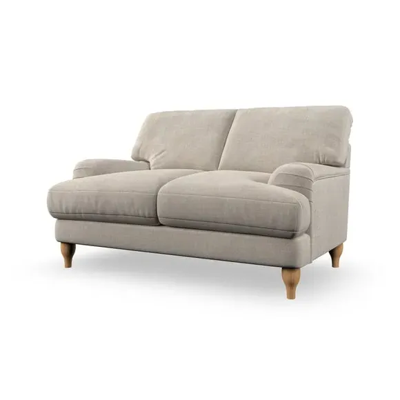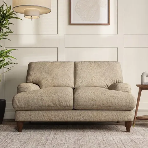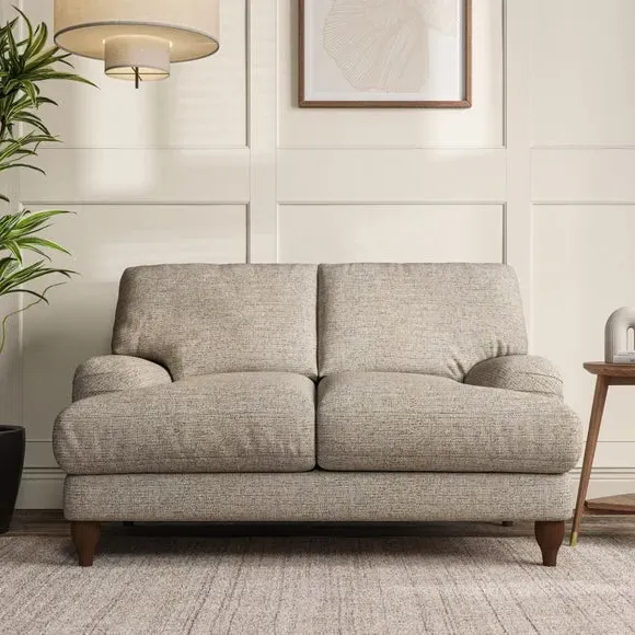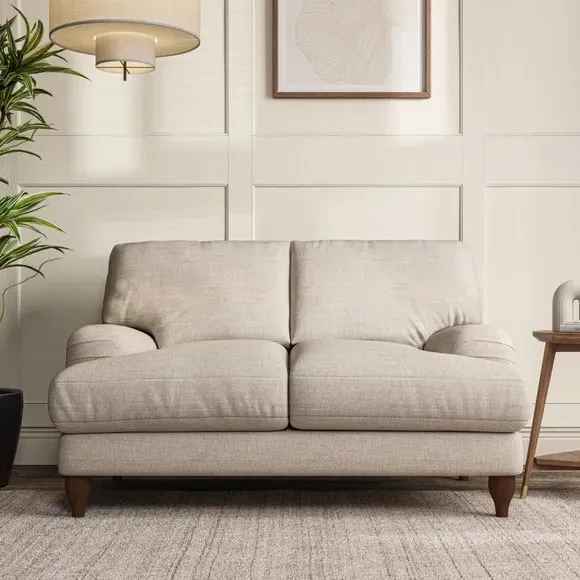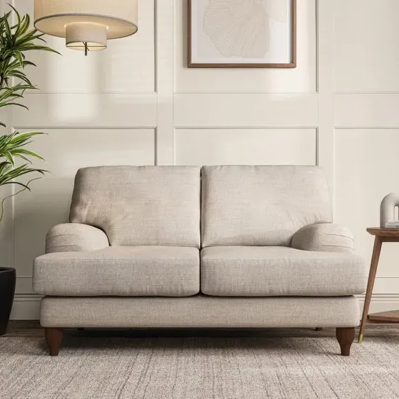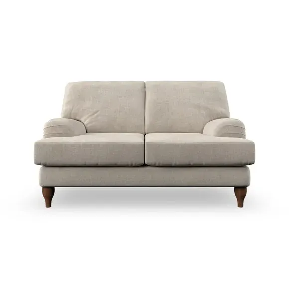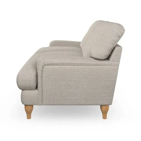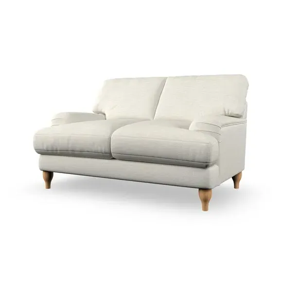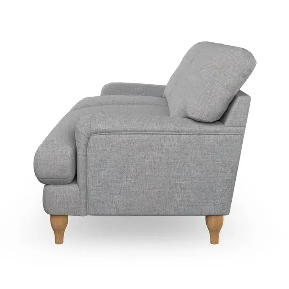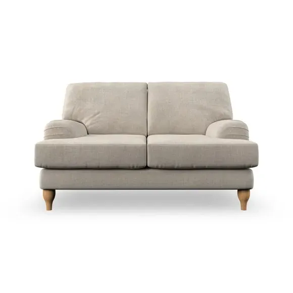 * Classic style* Bandaged Arms* Pleated details* Serpentine seat springs* Choose your support, fabric and leg colour This sofa features bandaged arms with pleat details and a lugged seat, offering a unique and sophisticated look. Built for longevity and comfort, it includes serpentine seat springs and deep fibre-filled back cushions for excellent support. Customise your comfort by choosing between a low-maintenance foam seat or the inviting ‘Qualofill Blue’ fibre seat, made from 100% recycled polyester. The ‘T’ cushion seat and arm design ensure a compact and contemporary feel, complemented by self-sewn seat and back cushions. Available with ‘hour glass’ shaped turned hardwood legs in two finishes, this sofa is both easy to fit and perfect for any stylish living space. Additionally, you can select your preferred fabric and colour to perfectly match your décor.