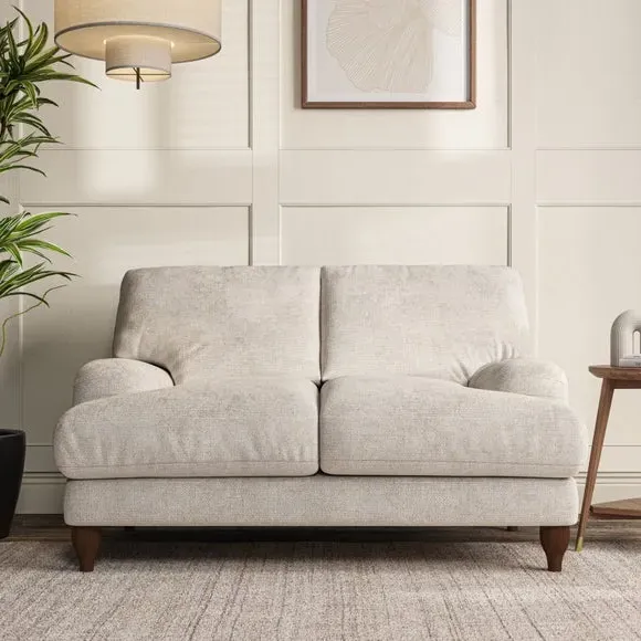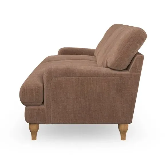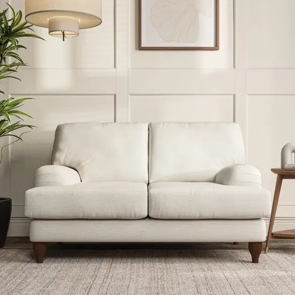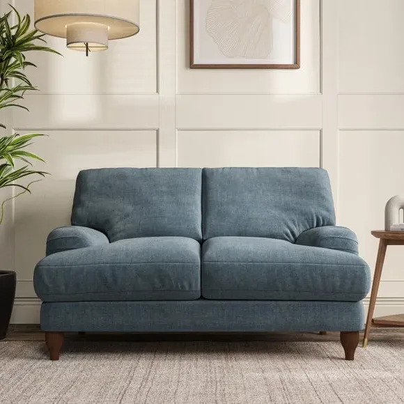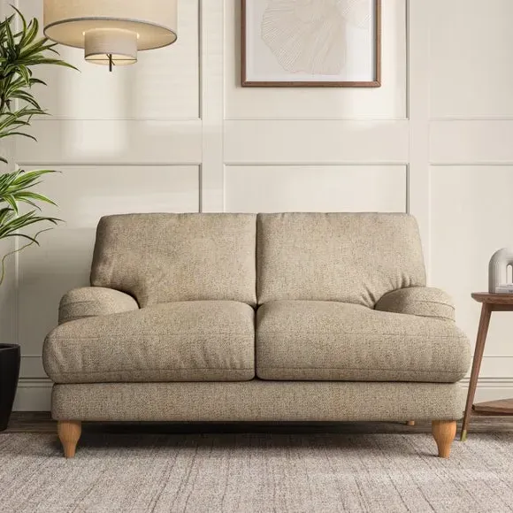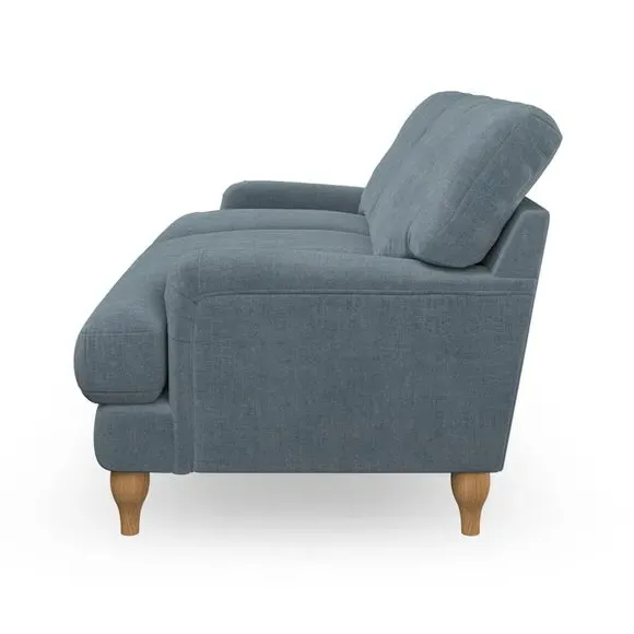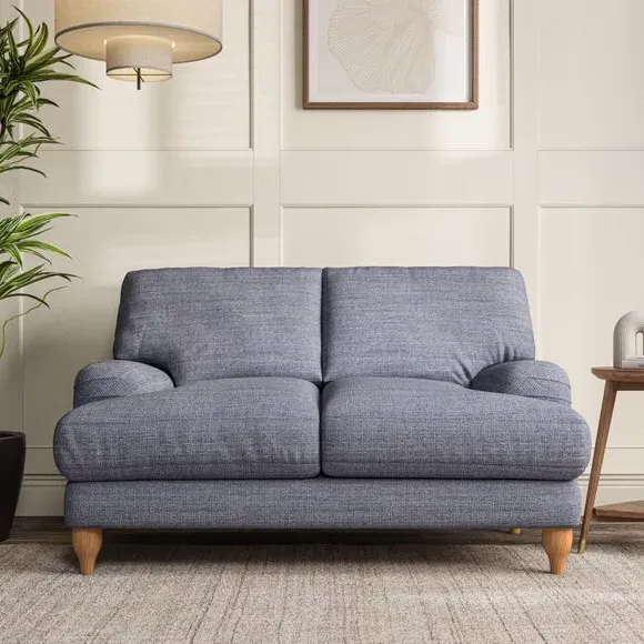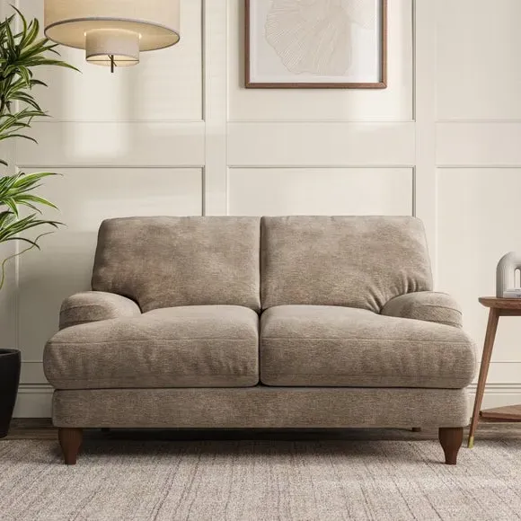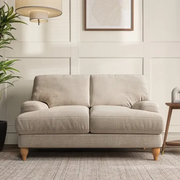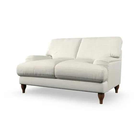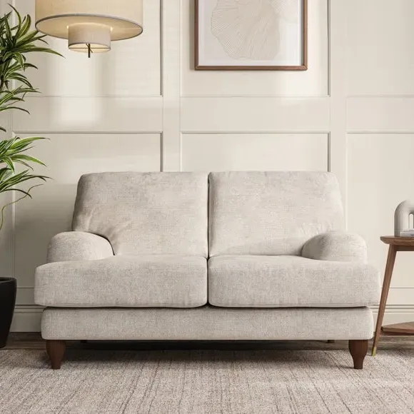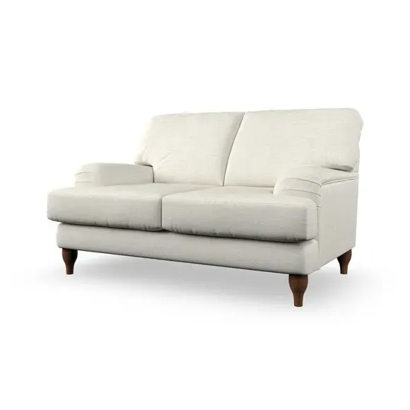 * Classic style* Bandaged Arms* Pleated details* Serpentine seat springs* Choose your support, fabric and leg colour This sofa features bandaged arms with pleat details and a lugged seat, offering a unique and sophisticated look. Built for longevity and comfort, it includes serpentine seat springs and deep fibre-filled back cushions for excellent support. Customise your comfort by choosing between a low-maintenance foam seat or the inviting ‘Qualofill Blue’ fibre seat, made from 100% recycled polyester. The ‘T’ cushion seat and arm design ensure a compact and contemporary feel, complemented by self-sewn seat and back cushions. Available with ‘hour glass’ shaped turned hardwood legs in two finishes, this sofa is both easy to fit and perfect for any stylish living space. Additionally, you can select your preferred fabric and colour to perfectly match your décor.