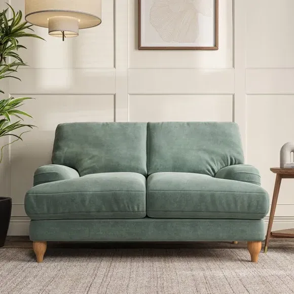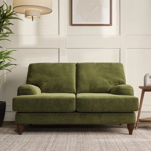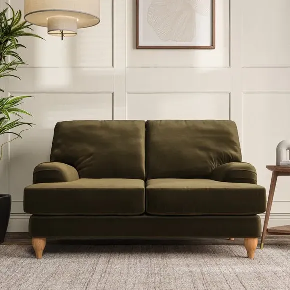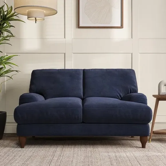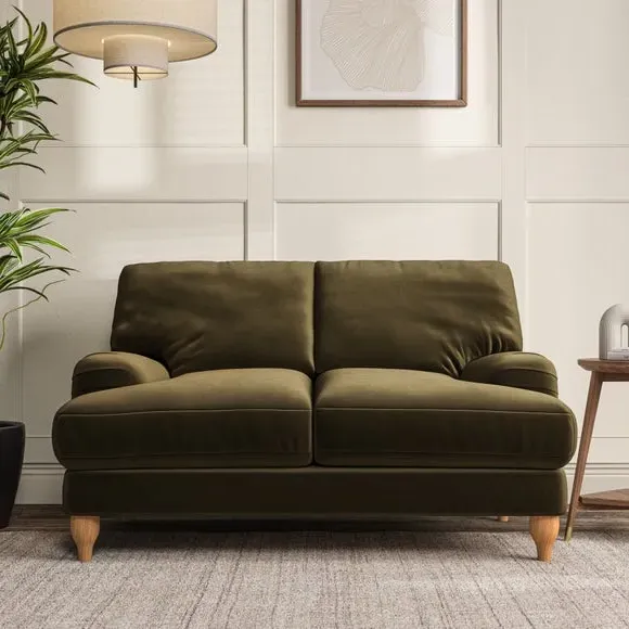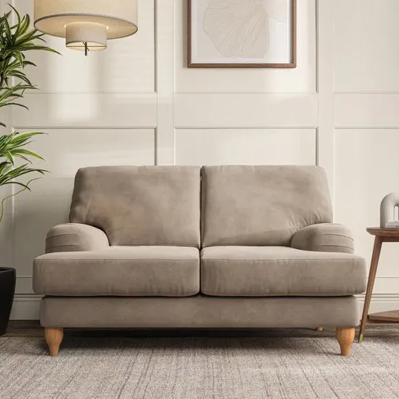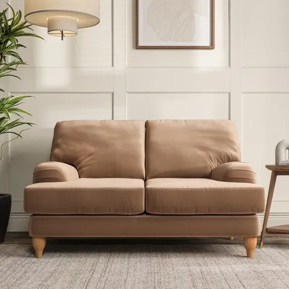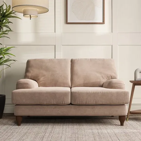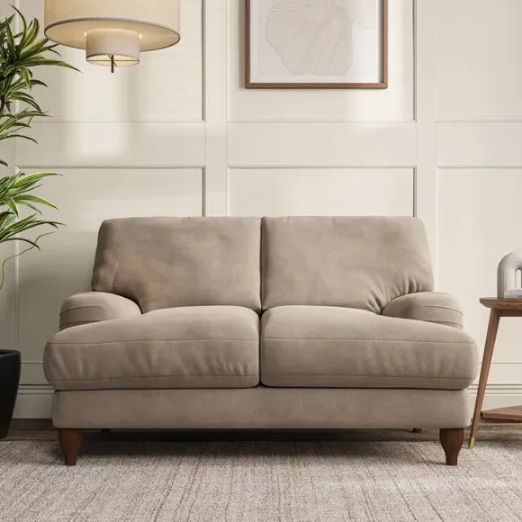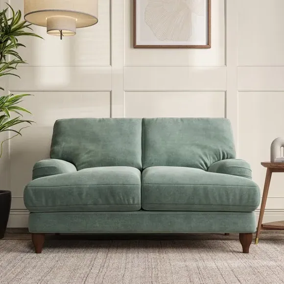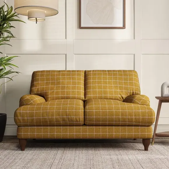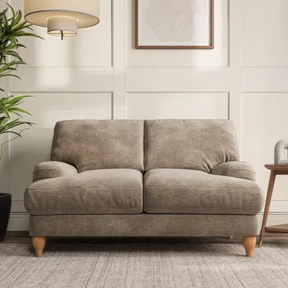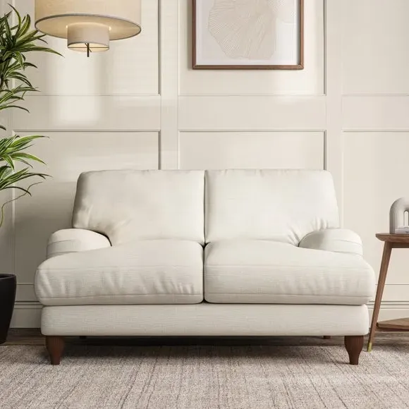 * Classic style* Bandaged Arms* Pleated details* Serpentine seat springs* Choose your support, fabric and leg colour This sofa features bandaged arms with pleat details and a lugged seat, offering a unique and sophisticated look. Built for longevity and comfort, it includes serpentine seat springs and deep fibre-filled back cushions for excellent support. Customise your comfort by choosing between a low-maintenance foam seat or the inviting ‘Qualofill Blue’ fibre seat, made from 100% recycled polyester. The ‘T’ cushion seat and arm design ensure a compact and contemporary feel, complemented by self-sewn seat and back cushions. Available with ‘hour glass’ shaped turned hardwood legs in two finishes, this sofa is both easy to fit and perfect for any stylish living space. Additionally, you can select your preferred fabric and colour to perfectly match your décor.