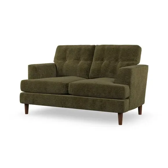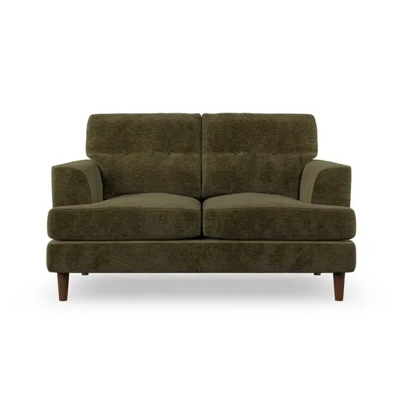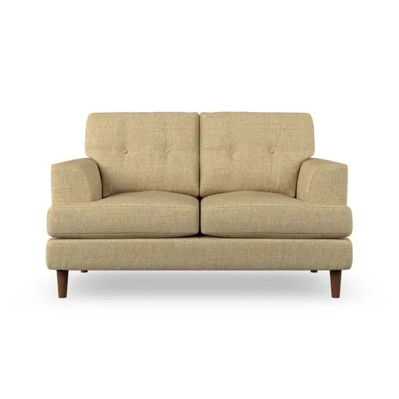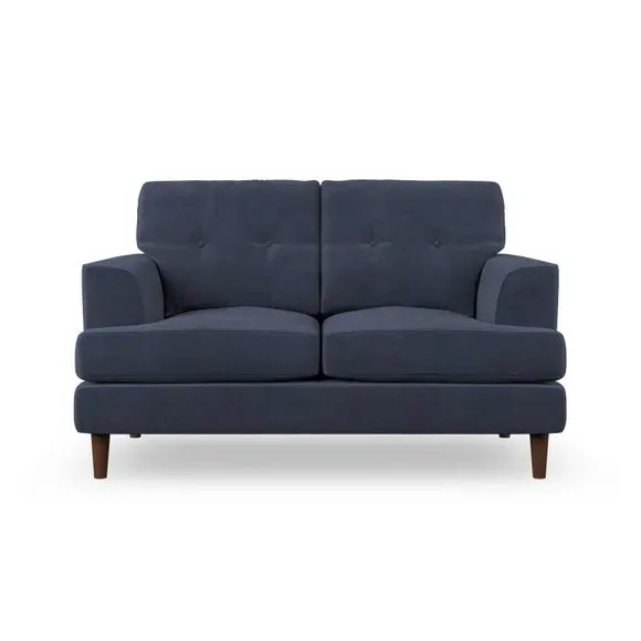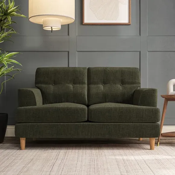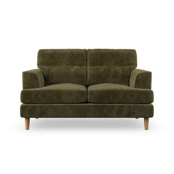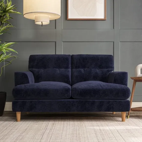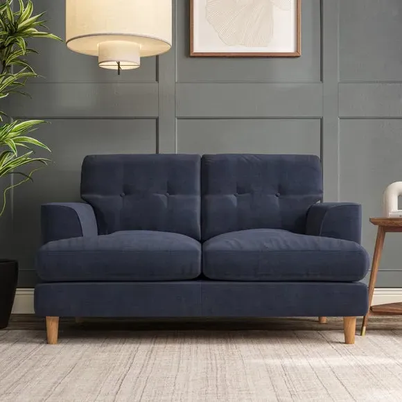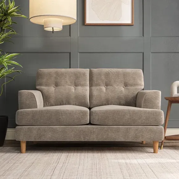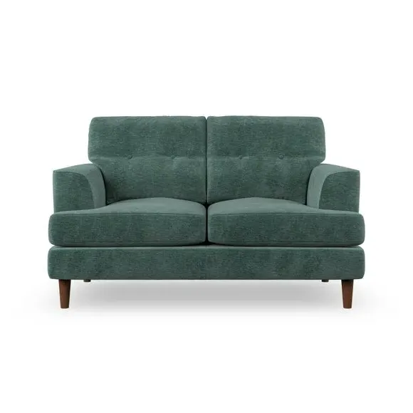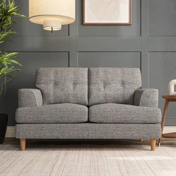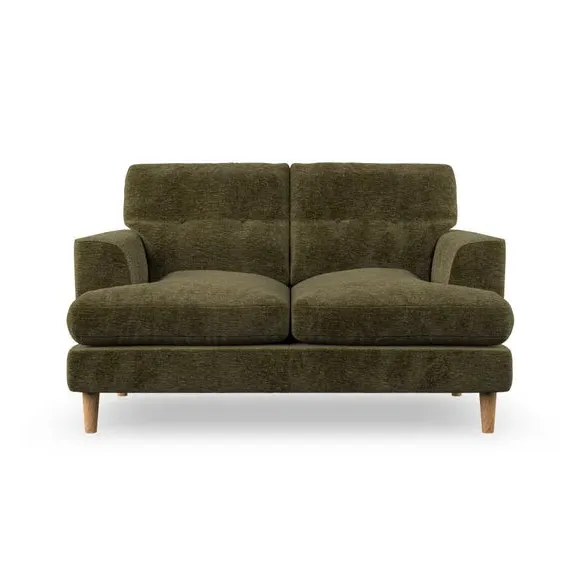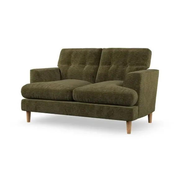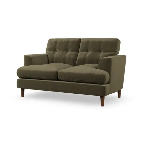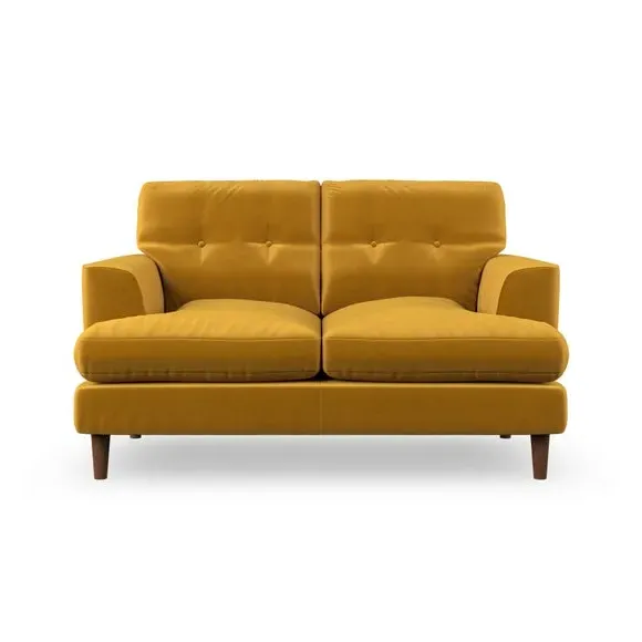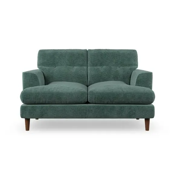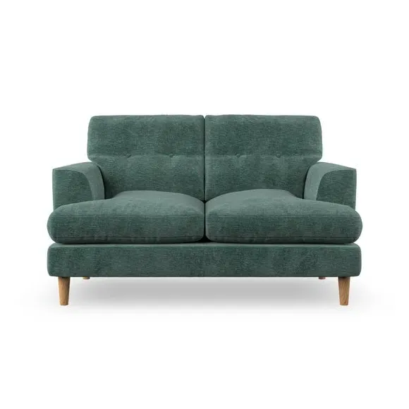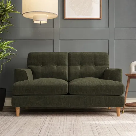 * Scandi inspired design* High legs* Button pull detailing* Choose the cushion filling, leg colour and fabric Compact yet sophisticated, the Cooper 2 Seater Sofa is perfect for smaller spaces or as a complementary piece in larger rooms. Drawing inspiration from Scandinavian furniture design, it features an elegant high-leg frame, clean lines, and generous T-shaped seat cushions. The fibre-filled back cushions, detailed with button pulls, deliver comfort and charm. Customise your sofa with a range of fabric types, leg finishes, and cushion fillings to make it uniquely yours.